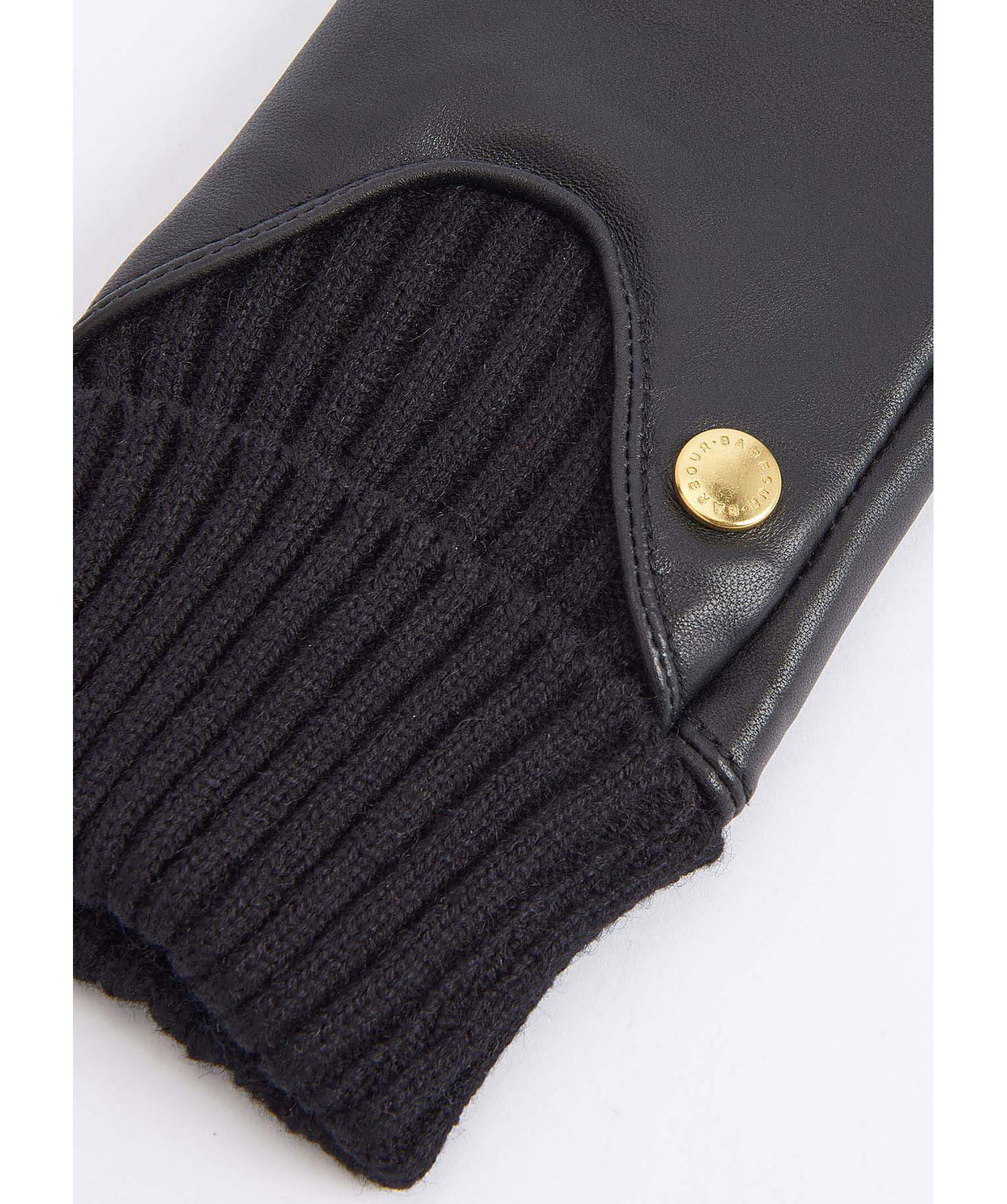 Svarta läderhandskar från Barbour. Handskarna har ribbstickat skaft och guldfärgad logotyp i metall. Tillverkade i läder.