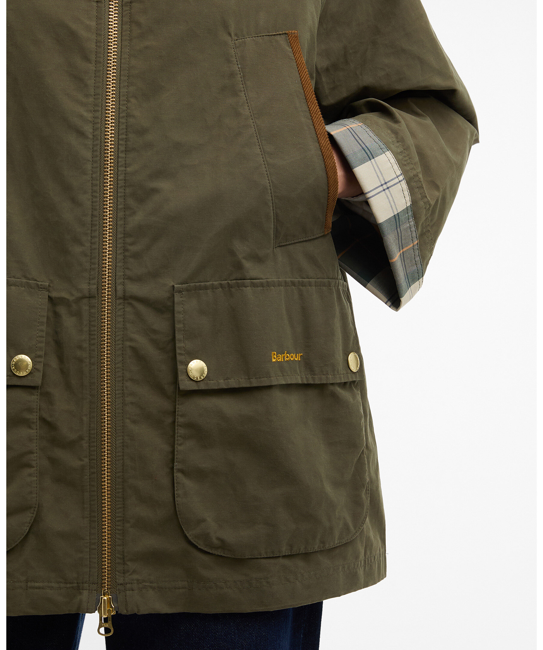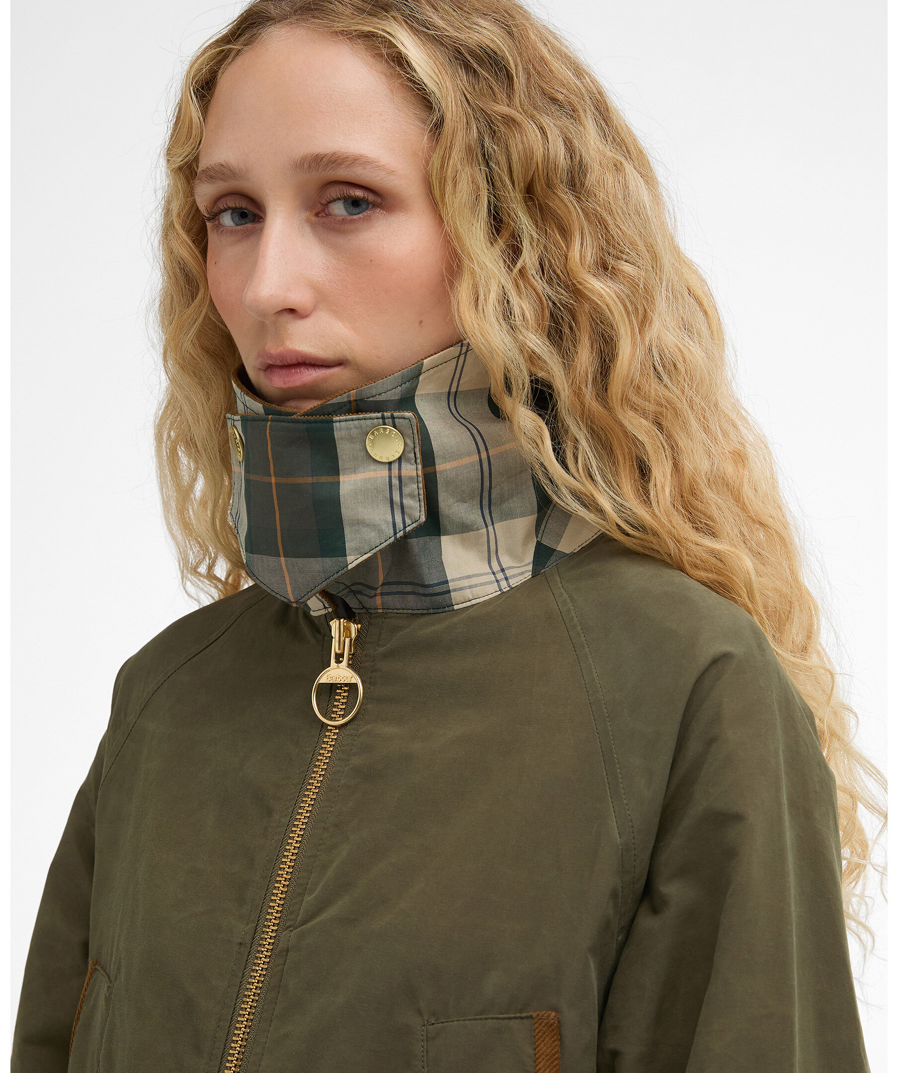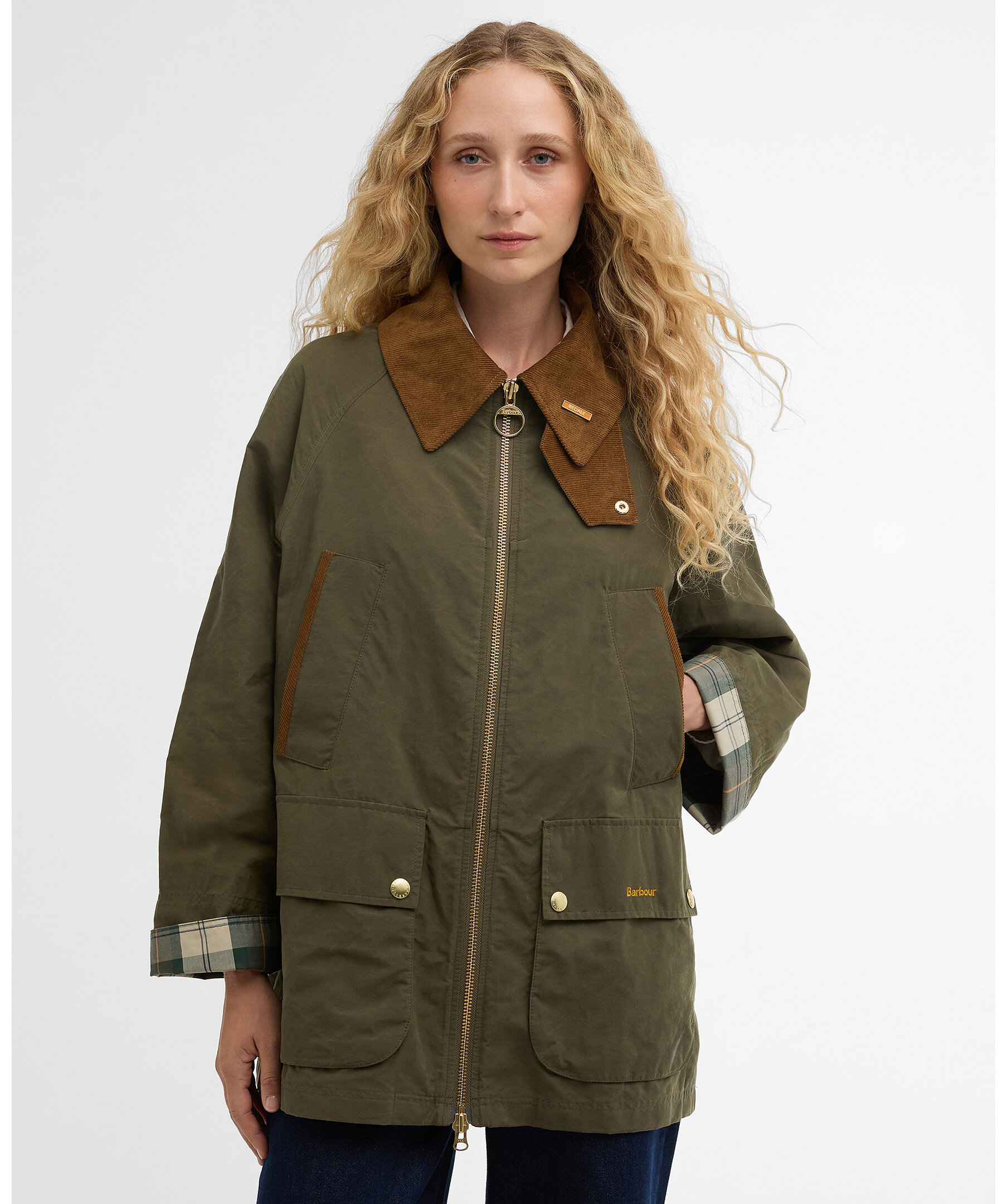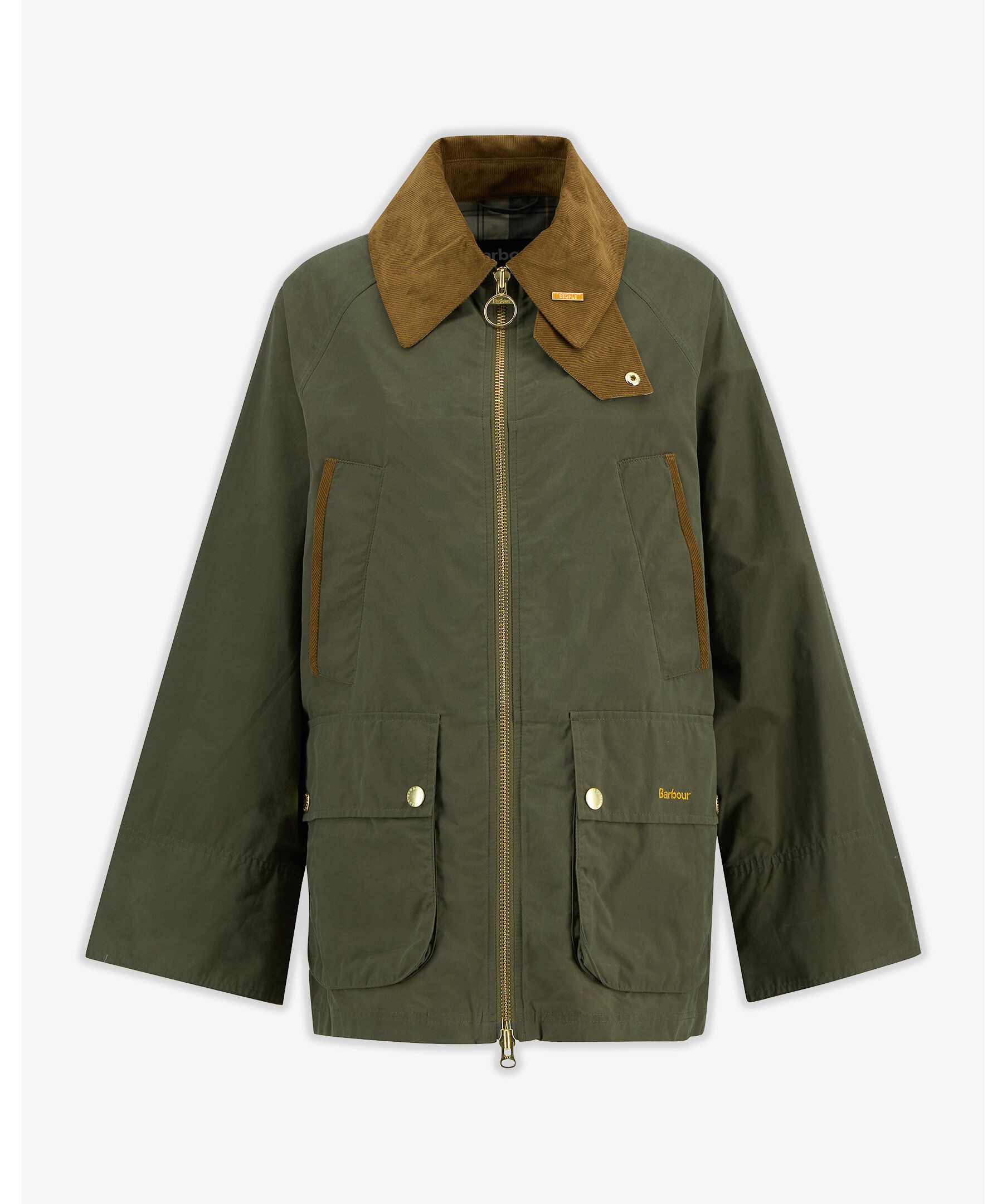 En uppdaterad version av den ikoniska Bedale i relaxed silhouette med vattenavvisande material, cord‑trimade handvärmarfickor och traditionella bälgfickor. Jackan har halvmåne‑cord‑krage och tartanfodrade innermanschetter som ger en klassisk och tidlös detalj till vardags‑ och fritidsstil