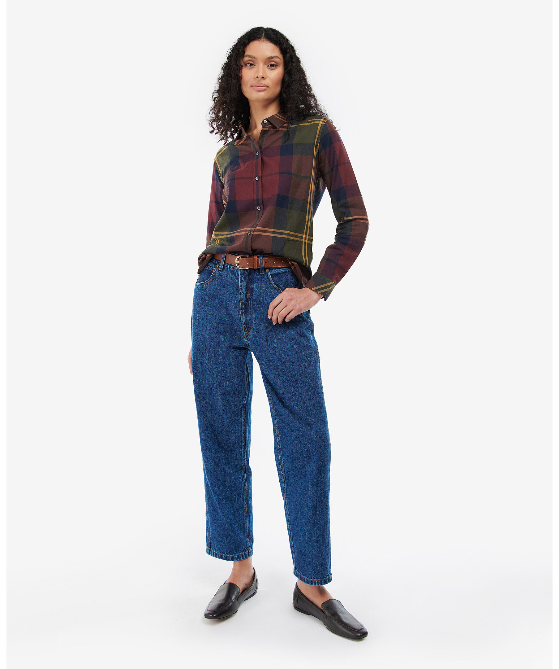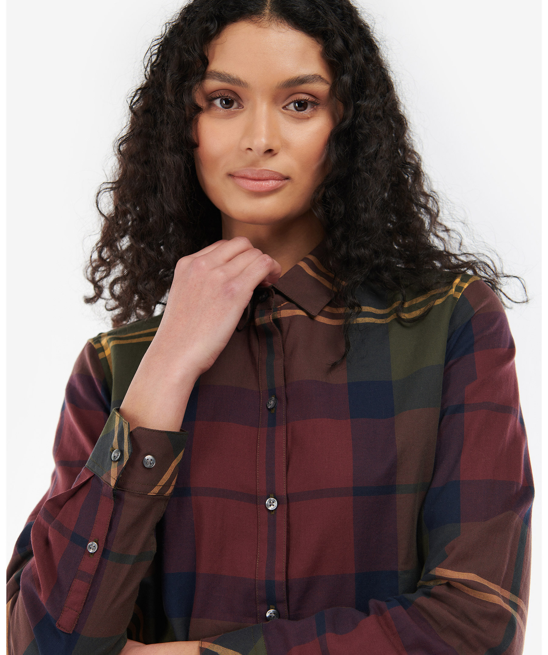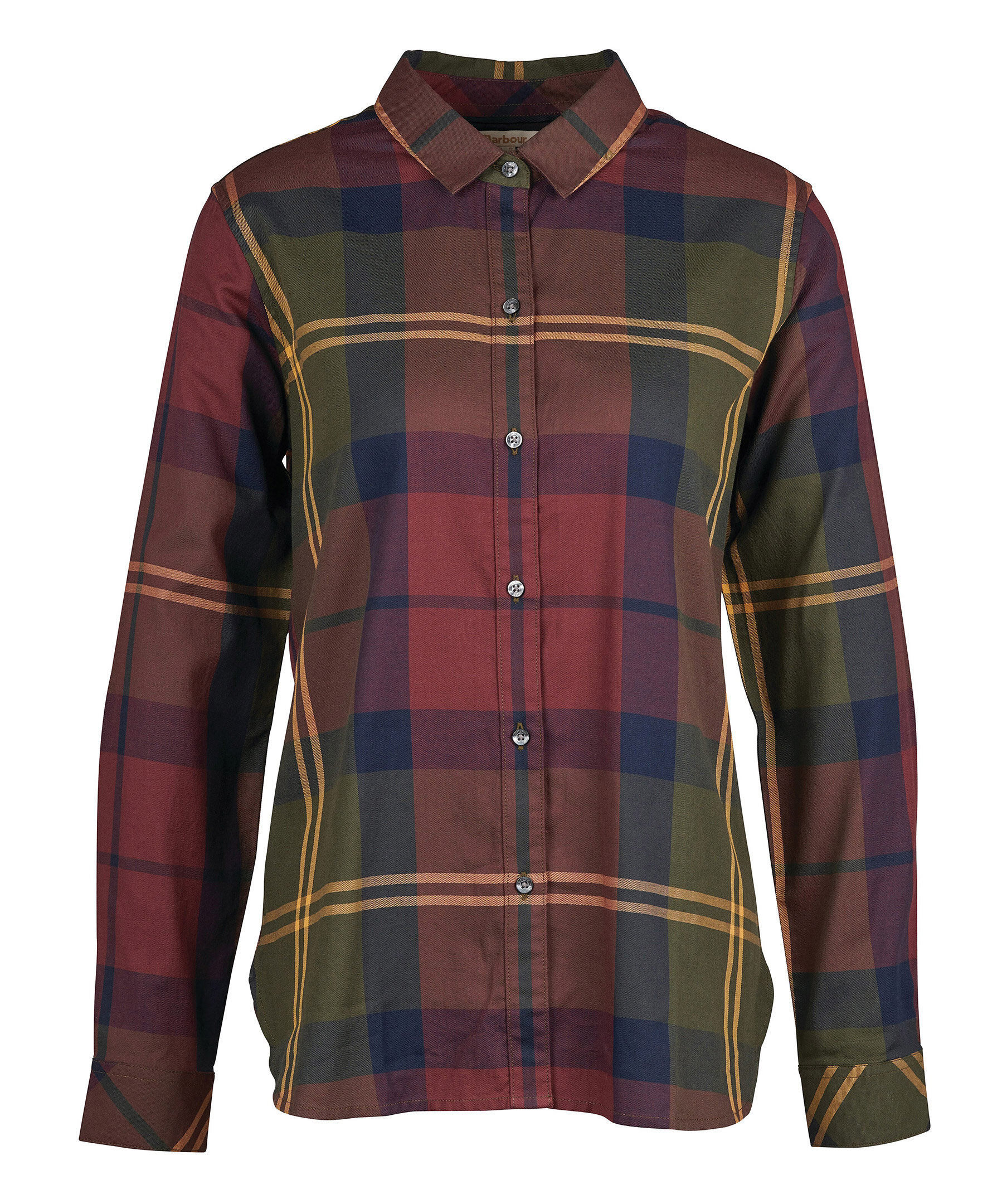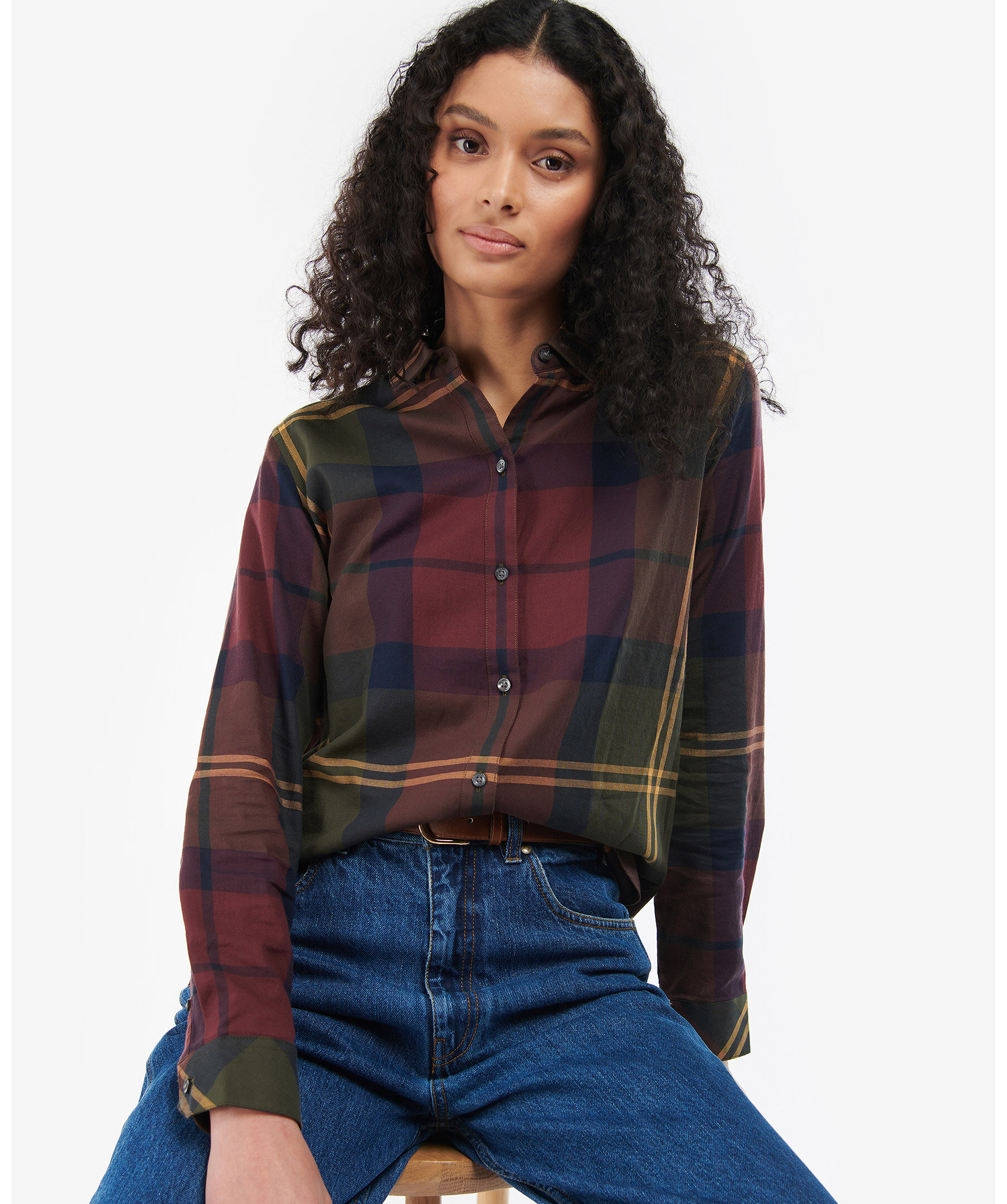 Vinröd, skjorta i avslappad passform med rutigt tartanmönster från Barbour. Detta plagg är tillverkat av 100% bomull och har en avslappnad passform med långa ärmar och en knappar framtill och i ärmslut.