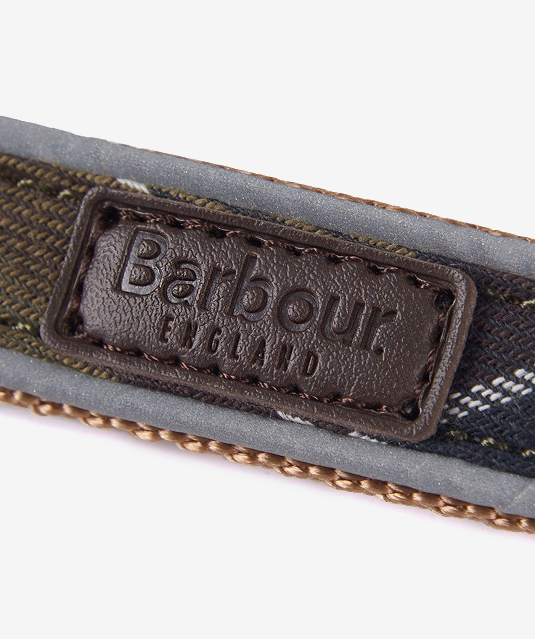 Rutigt hundkoppel med mossgrön bas från Barbour. Reflekterande bindning i kanterna för att hålla din hund säker när dagarna blir kortare. Den har ett öglehandtag och en mässingsklämma för att fästa den på din hunds halsband. Längd 100 cm x bredd 2 cm.