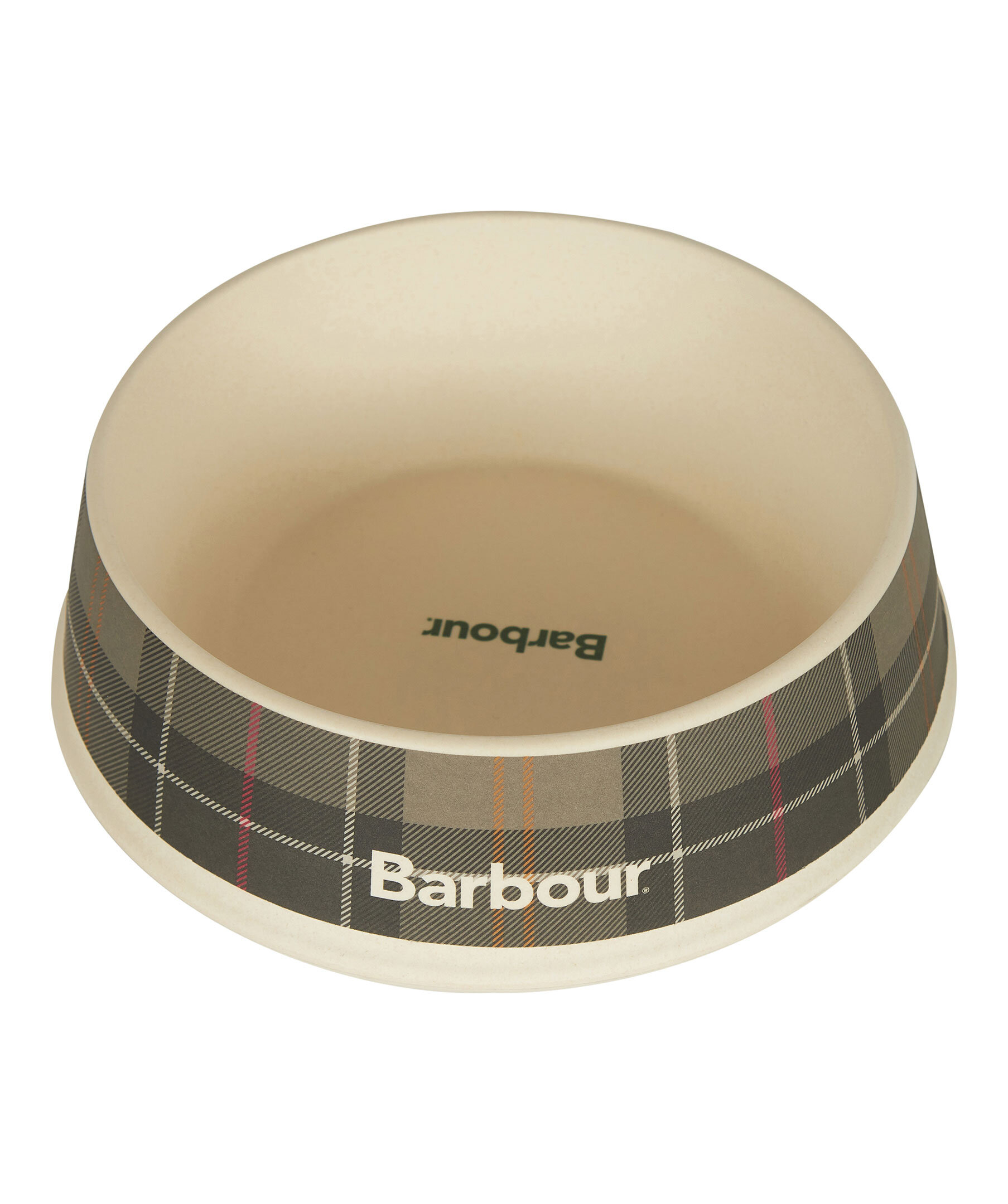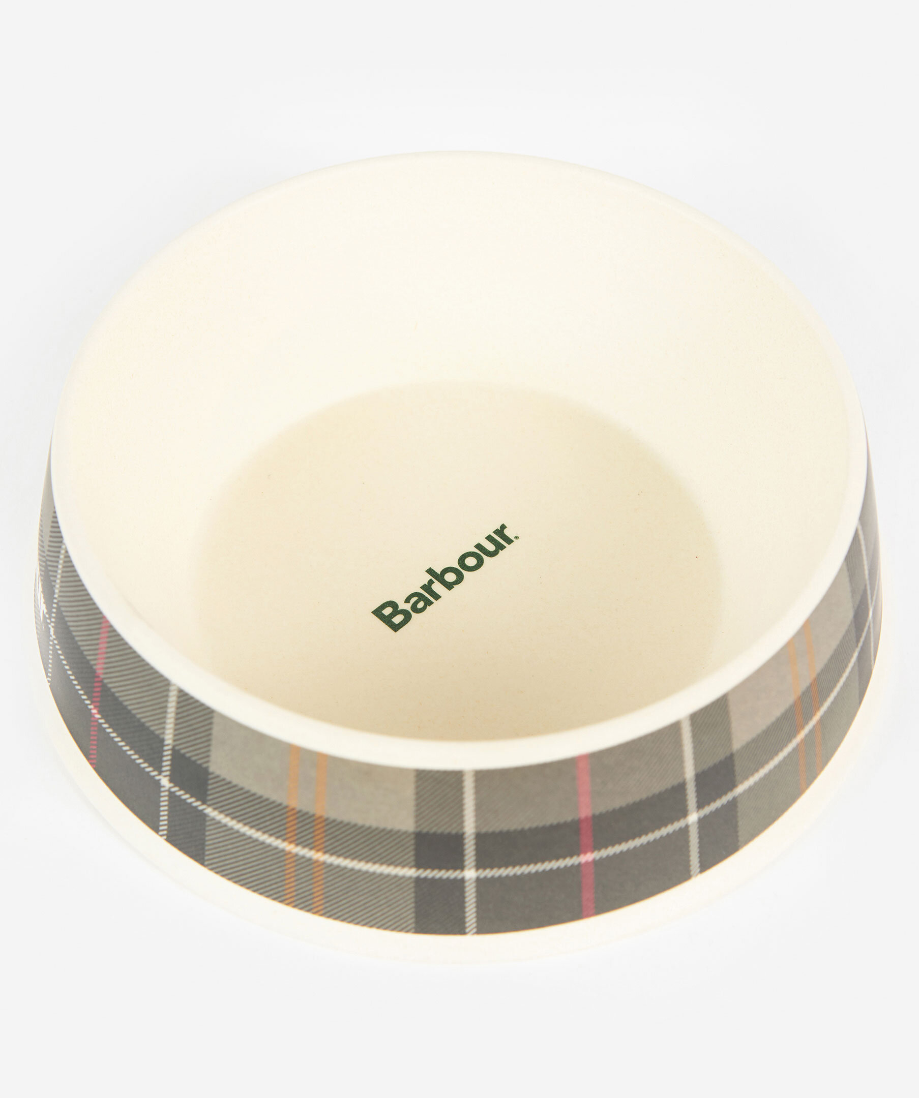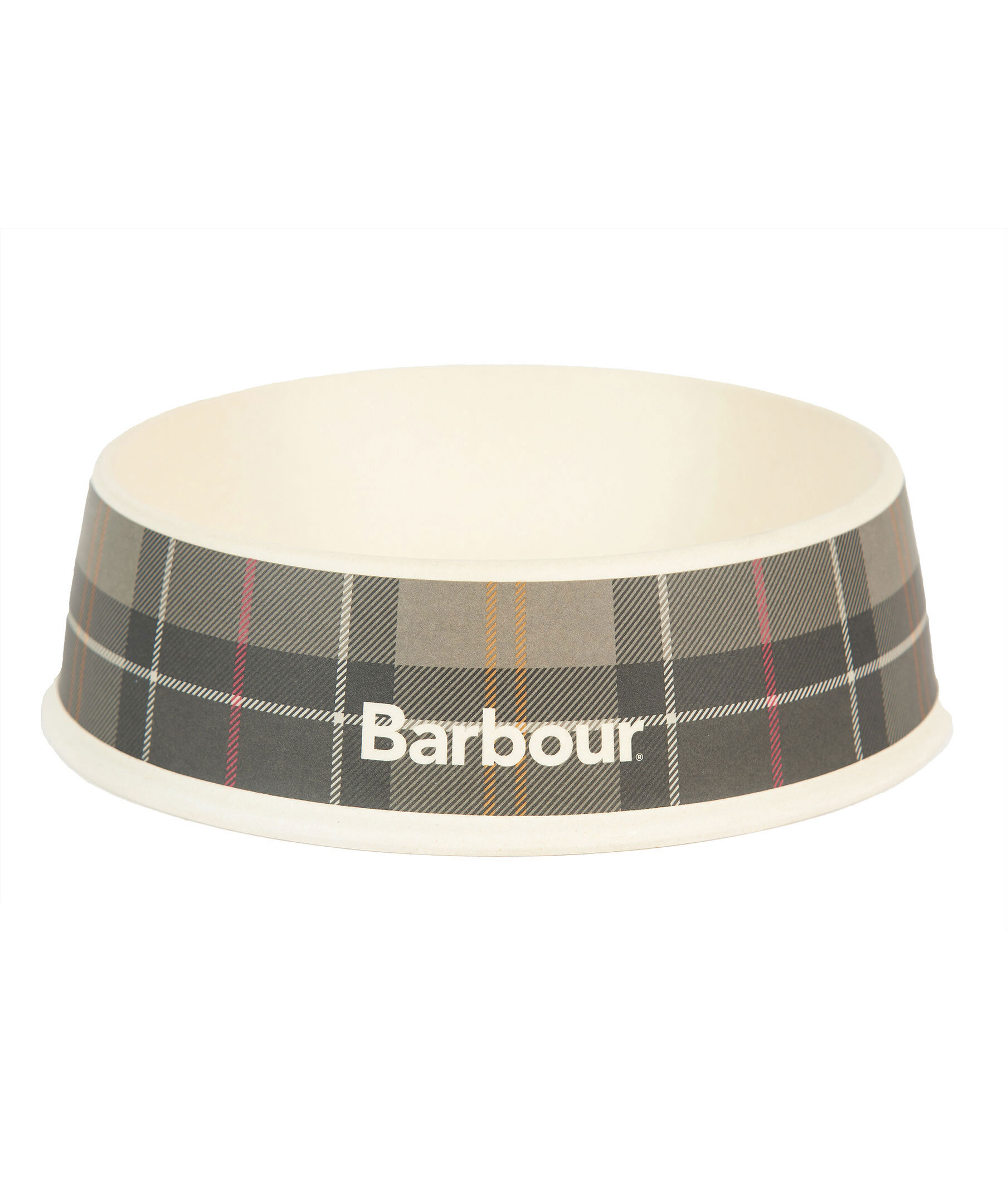 Grön tartan mönstrad hundmatskål från Barbour. Tillverkad i bambu. Diameter 15cm.