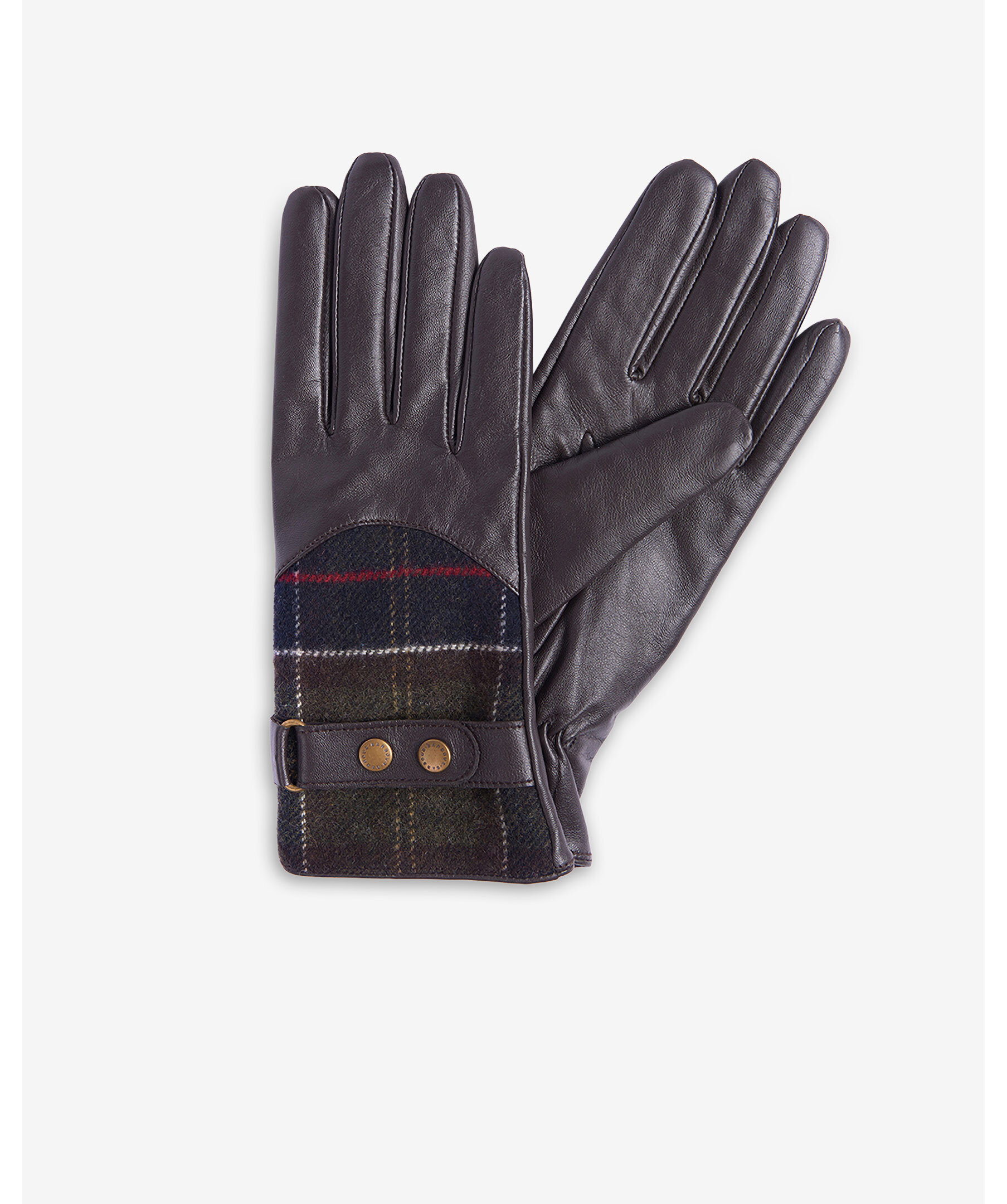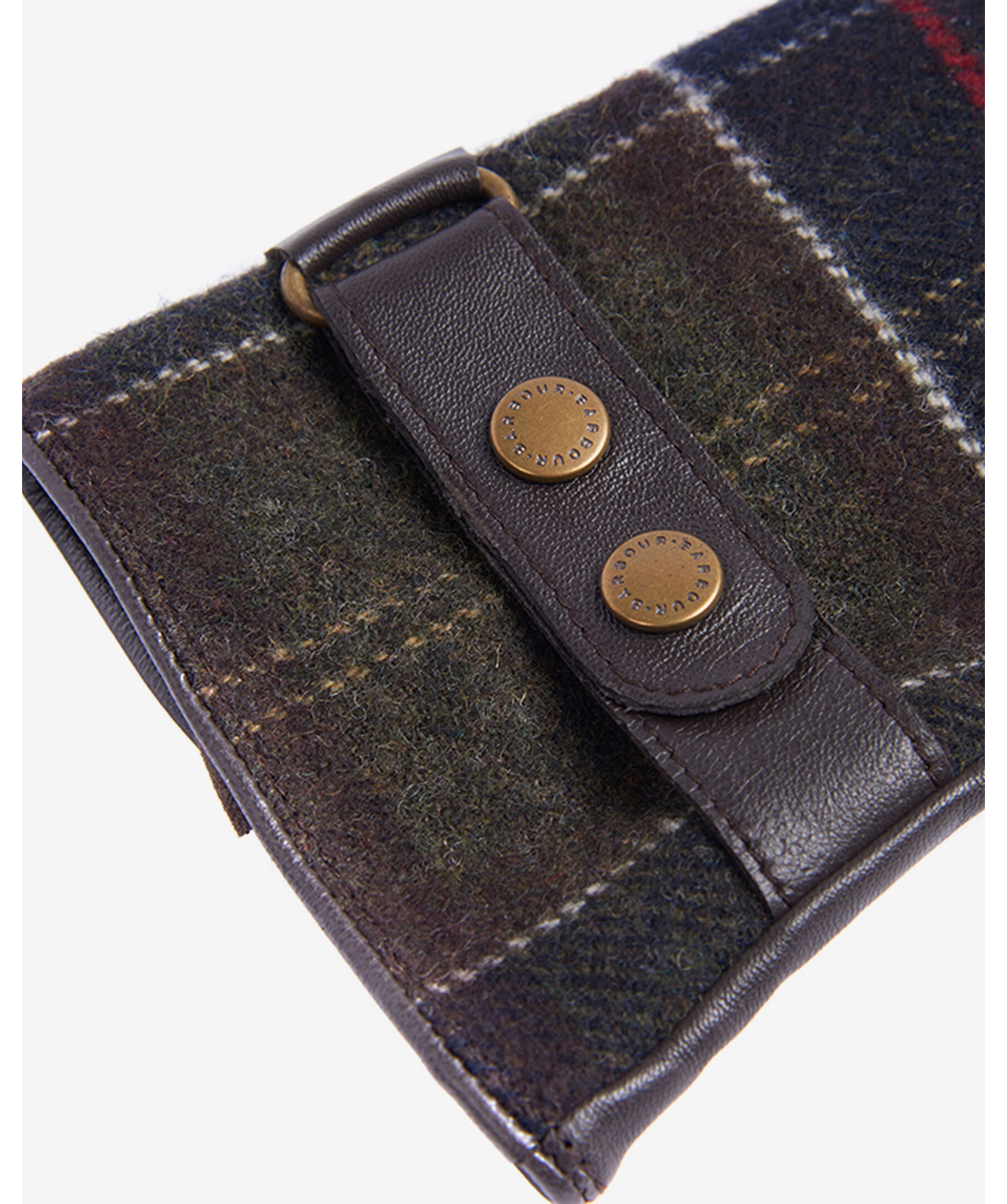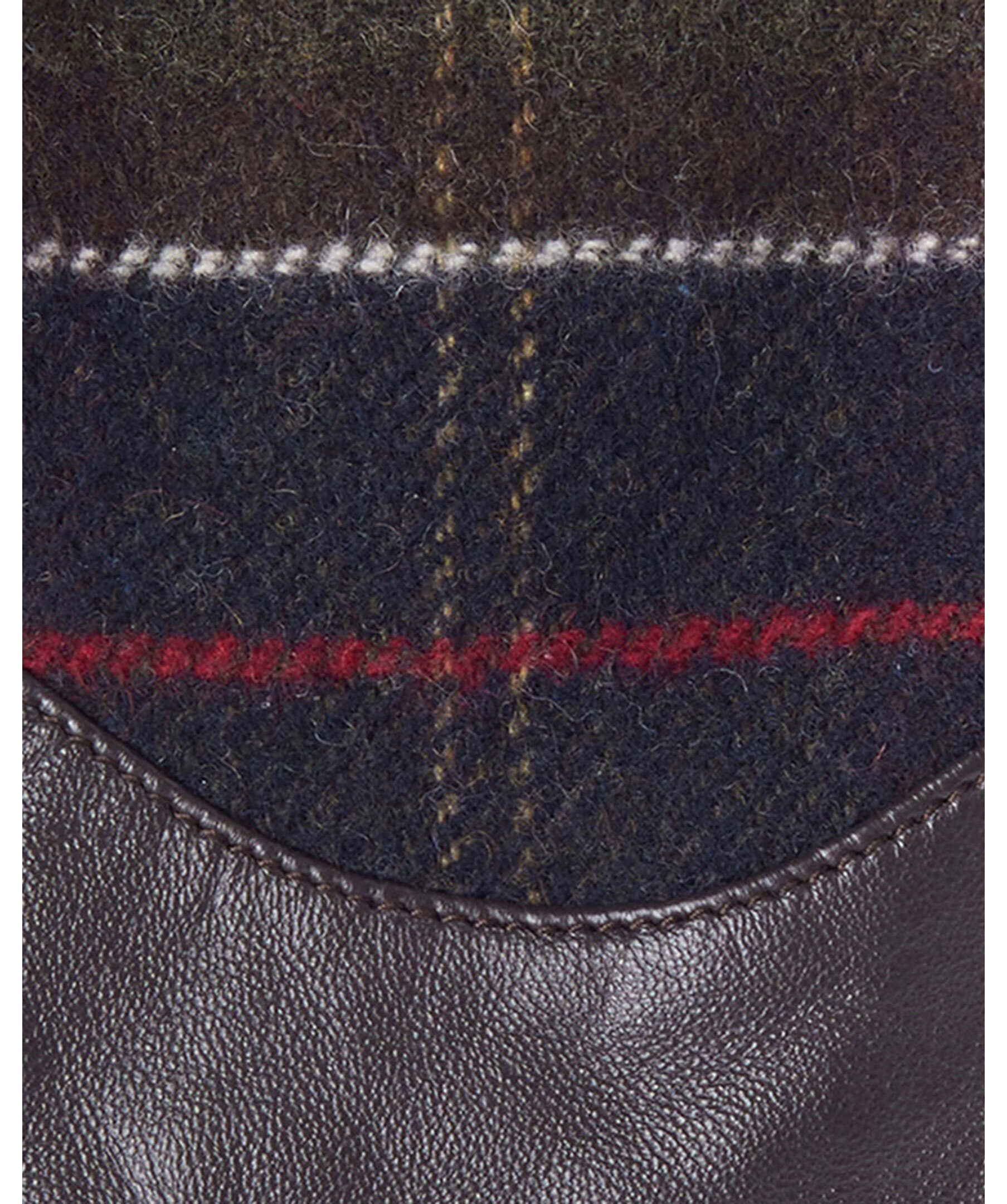 Skinn handskar med trimsida från Barbour. Dekorerade med Barbours klassiska tartanmönster av ull. Utrustade med en läderrem som stängs med ett stilrent Barbour‑branded nitspänne.