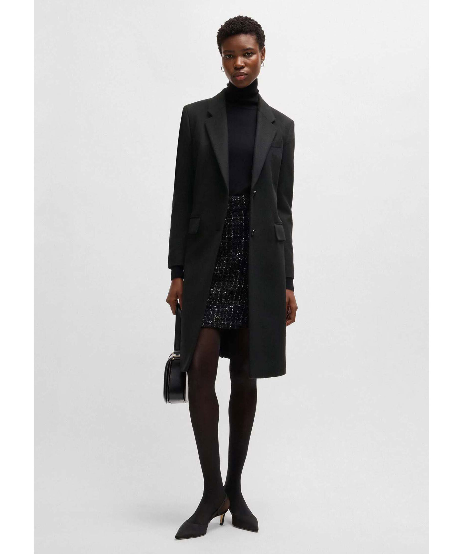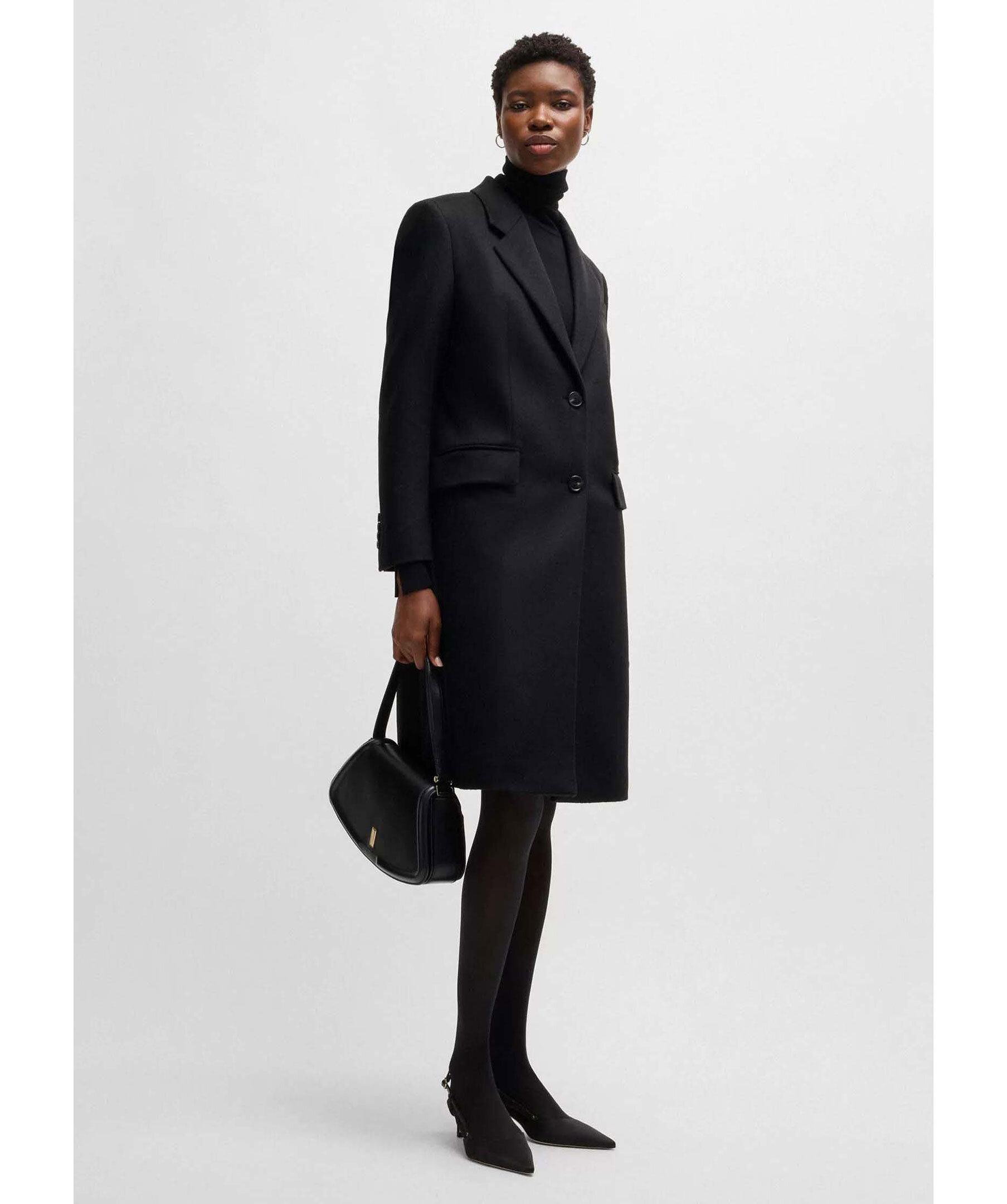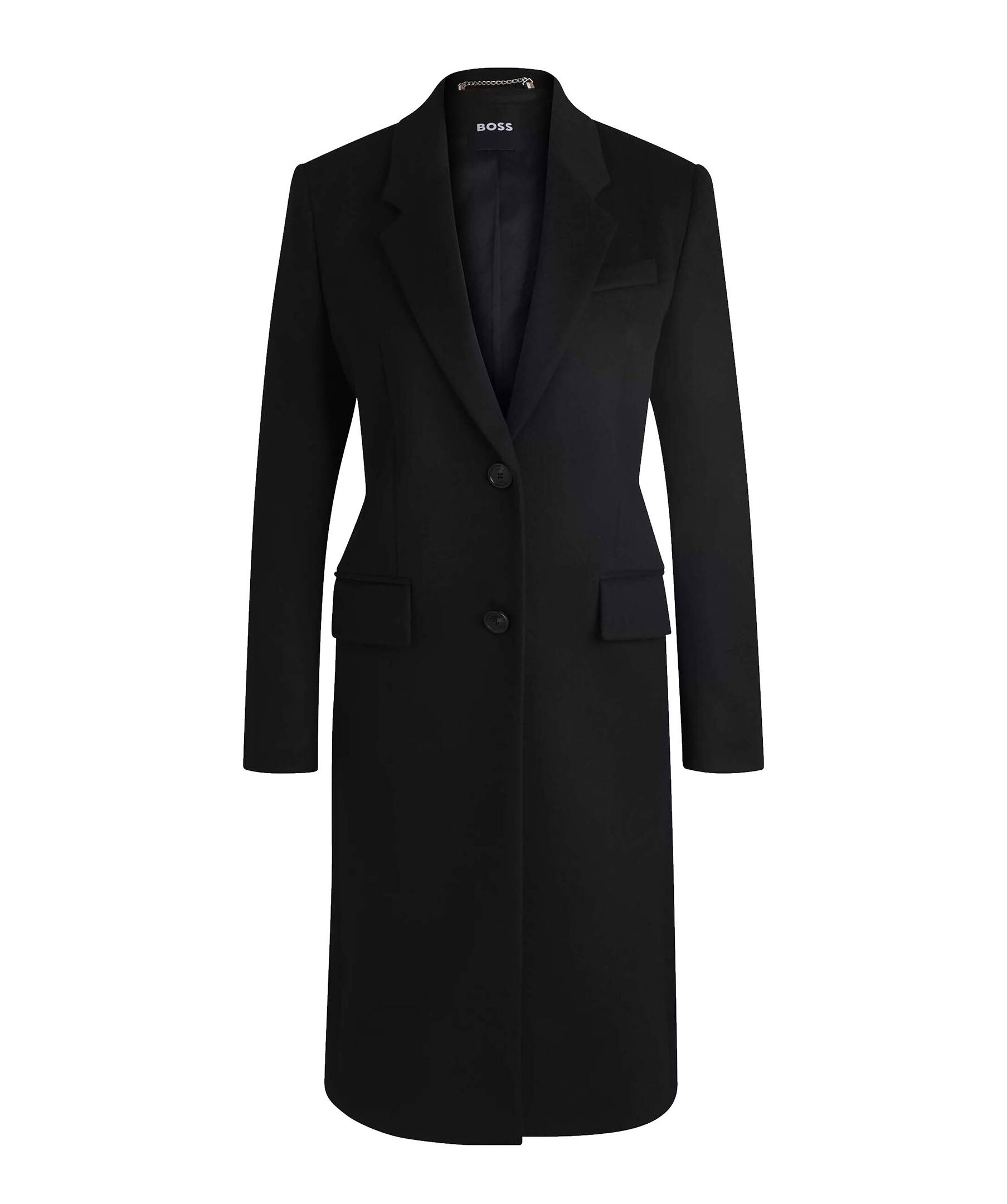Svart kappa från BOSS Black. En vacker helfodrad formell kappa, skuren till en slimmad passform. Två knappar framtill samt två fickor med lock och en welt bröstficka. Ventil på baksidan. Tillverkad jungfru-ull blandat med en touch av lyxig kashmir.