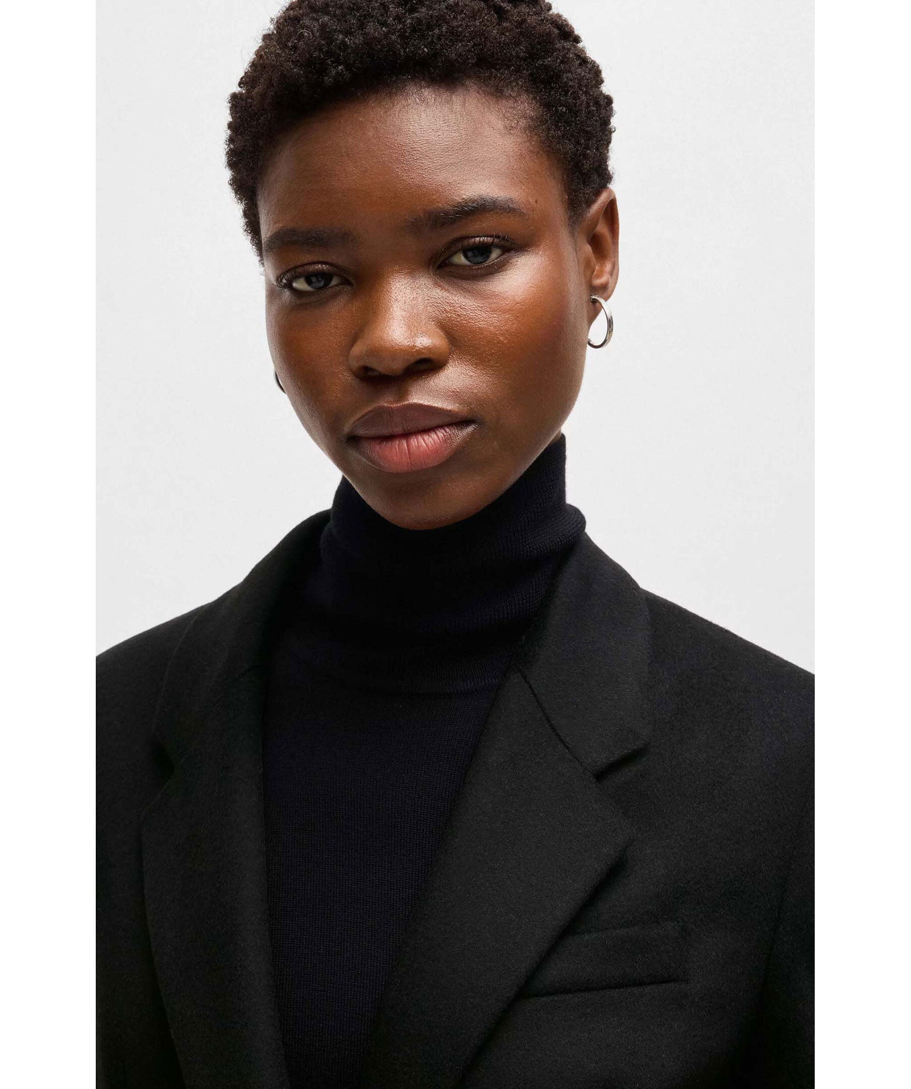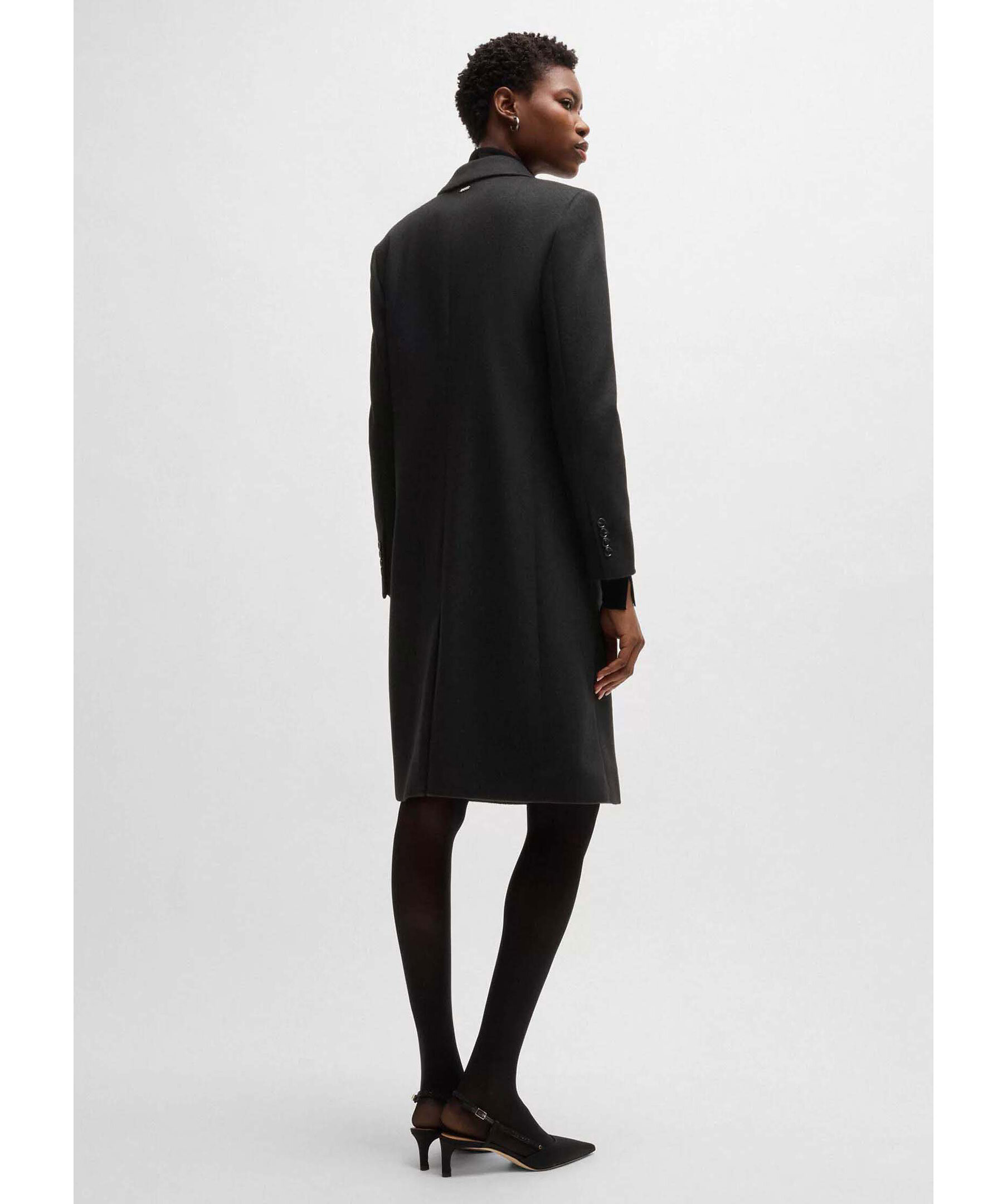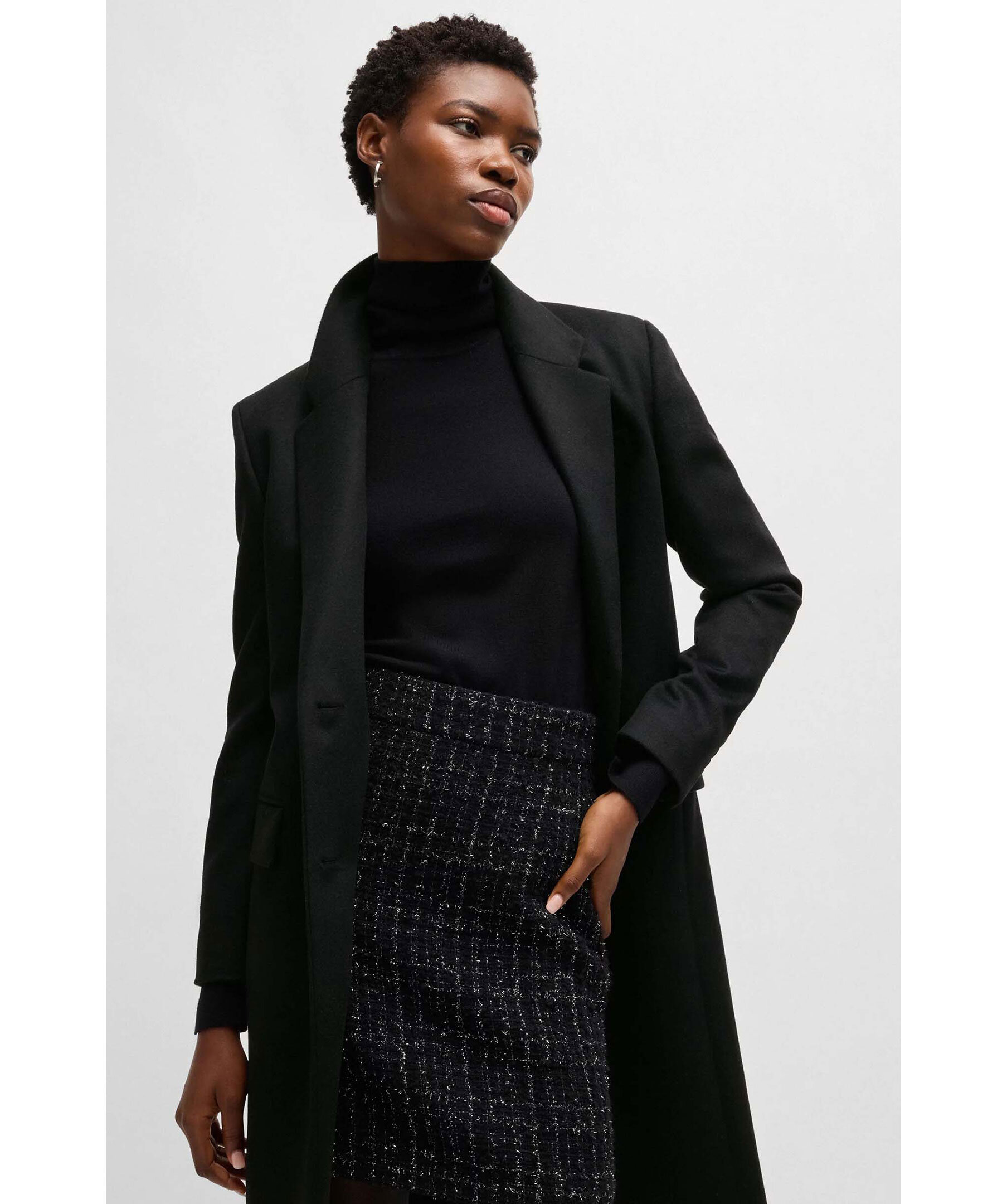Svart kappa från BOSS Black. En vacker helfodrad formell kappa, skuren till en slimmad passform. Två knappar framtill samt två fickor med lock och en welt bröstficka. Ventil på baksidan. Tillverkad jungfru-ull blandat med en touch av lyxig kashmir.