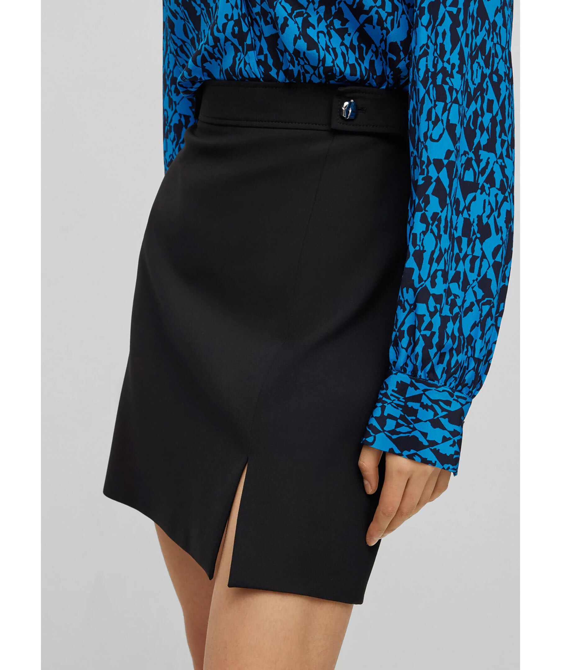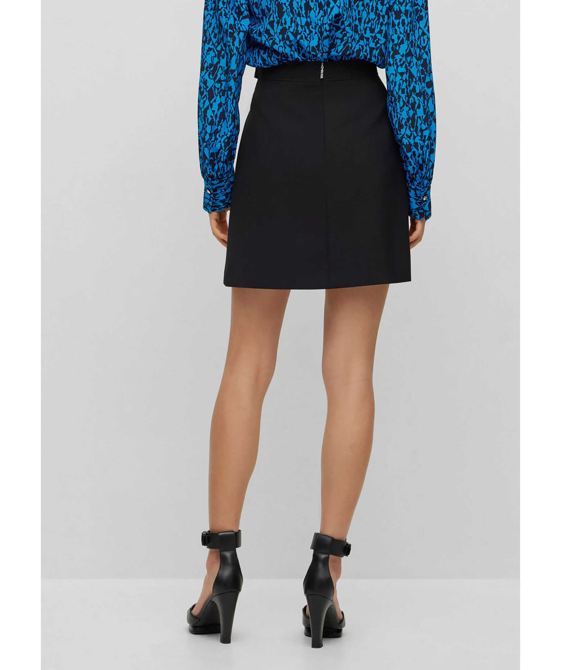 Svart kjol från BOSS Black. A-linje kjol skuren till normal passform i stretchmaterial med hårdvara i midjan från BOSS Womenswear. Dragkedja baktill samt slits framtill.