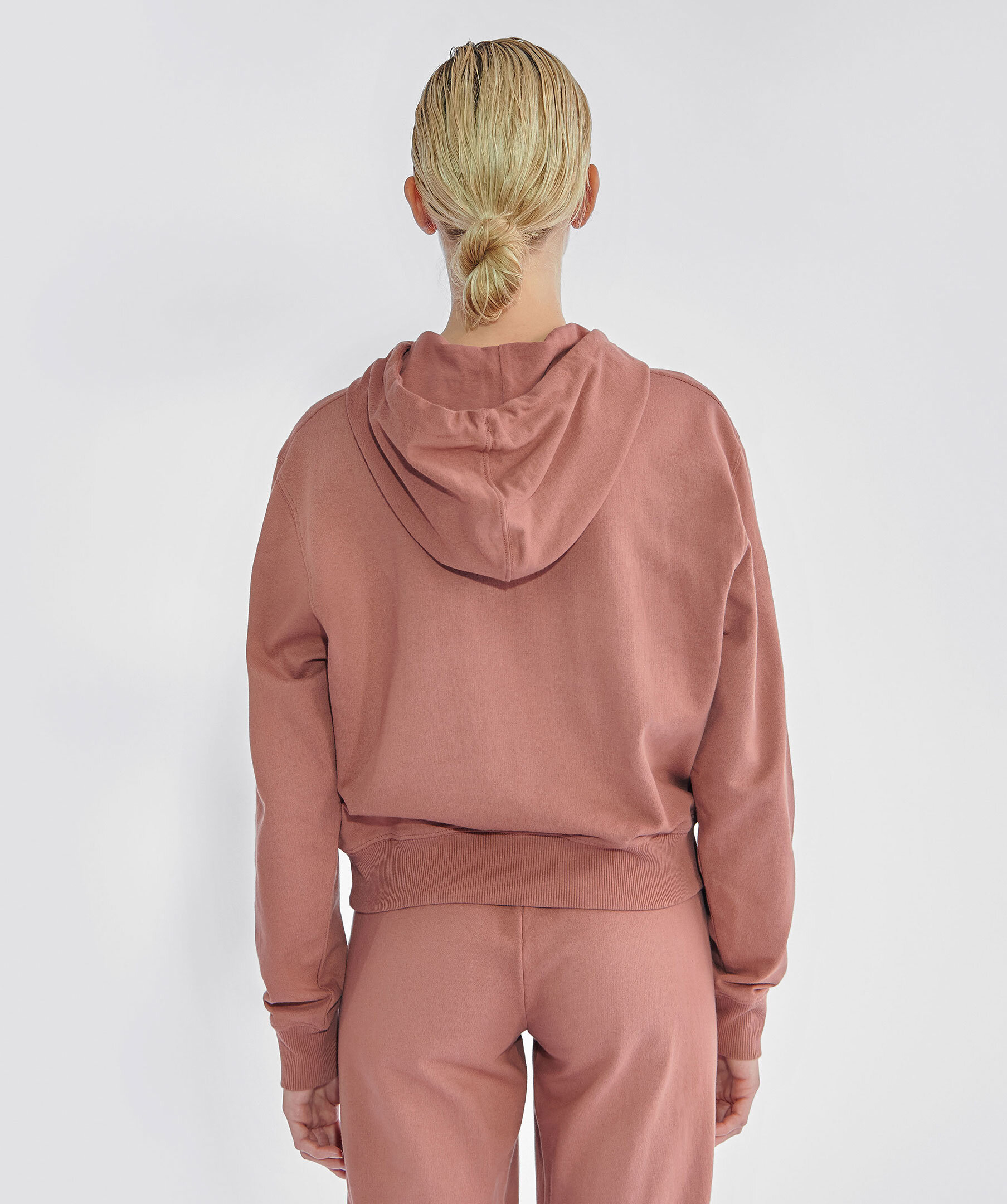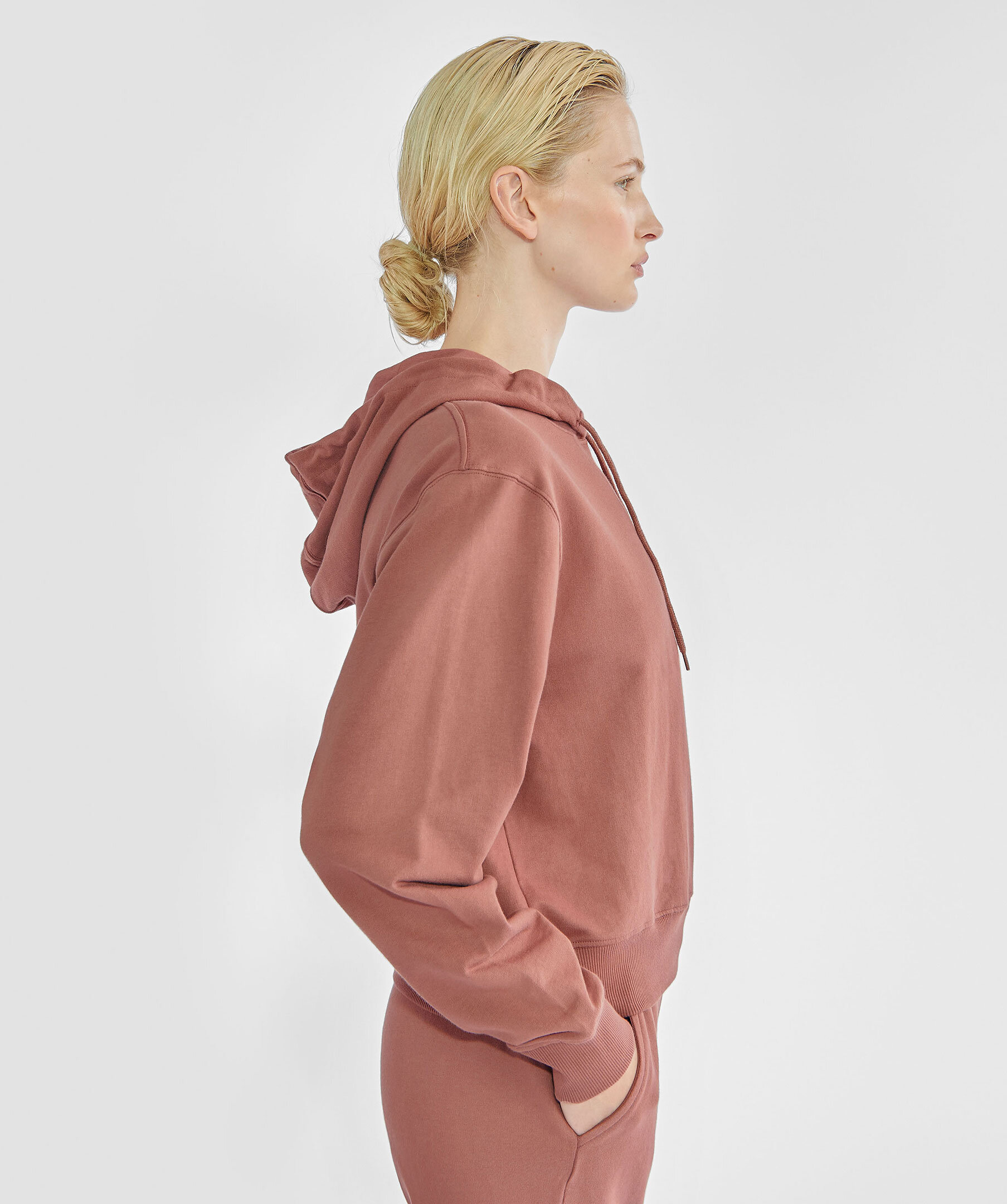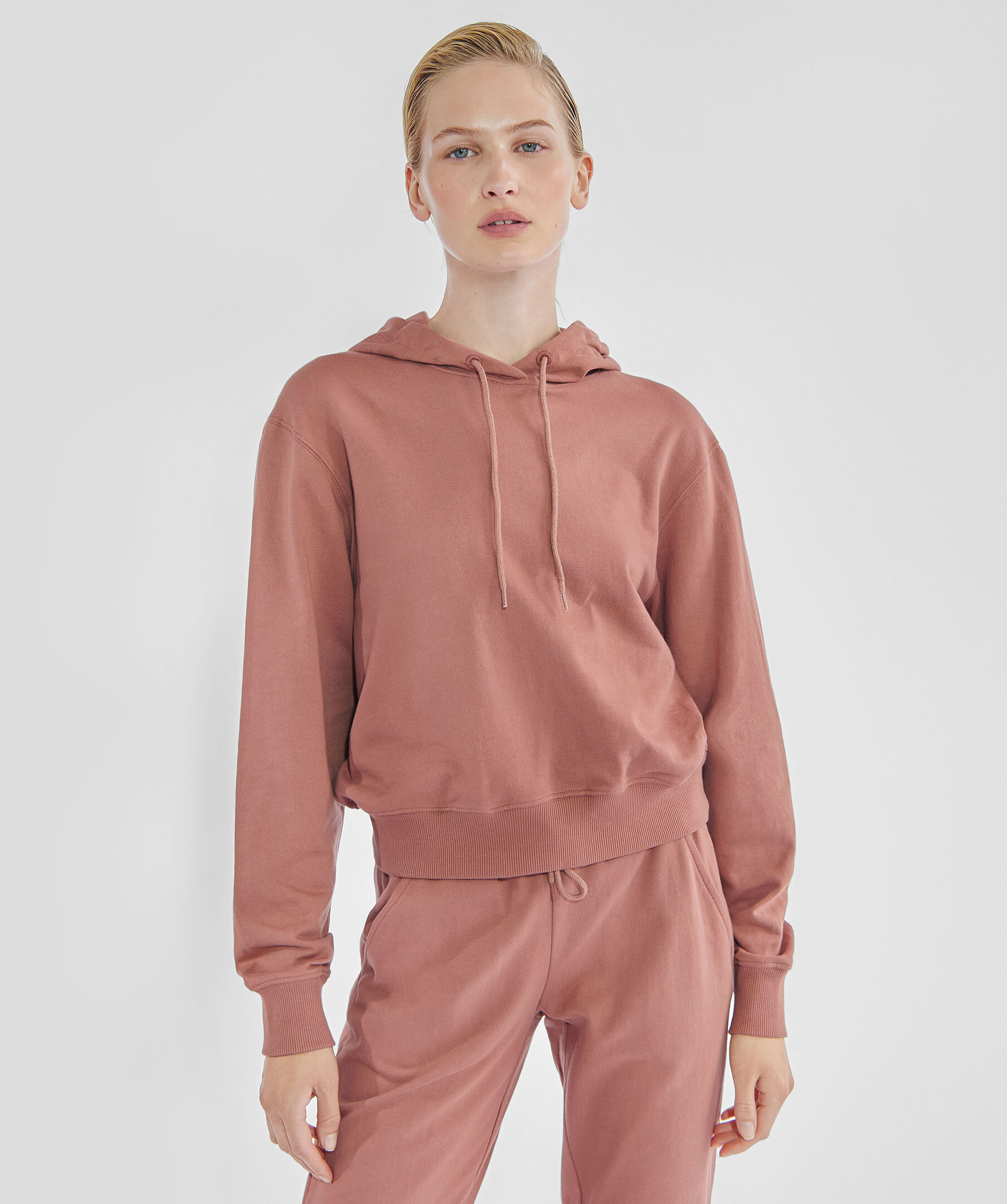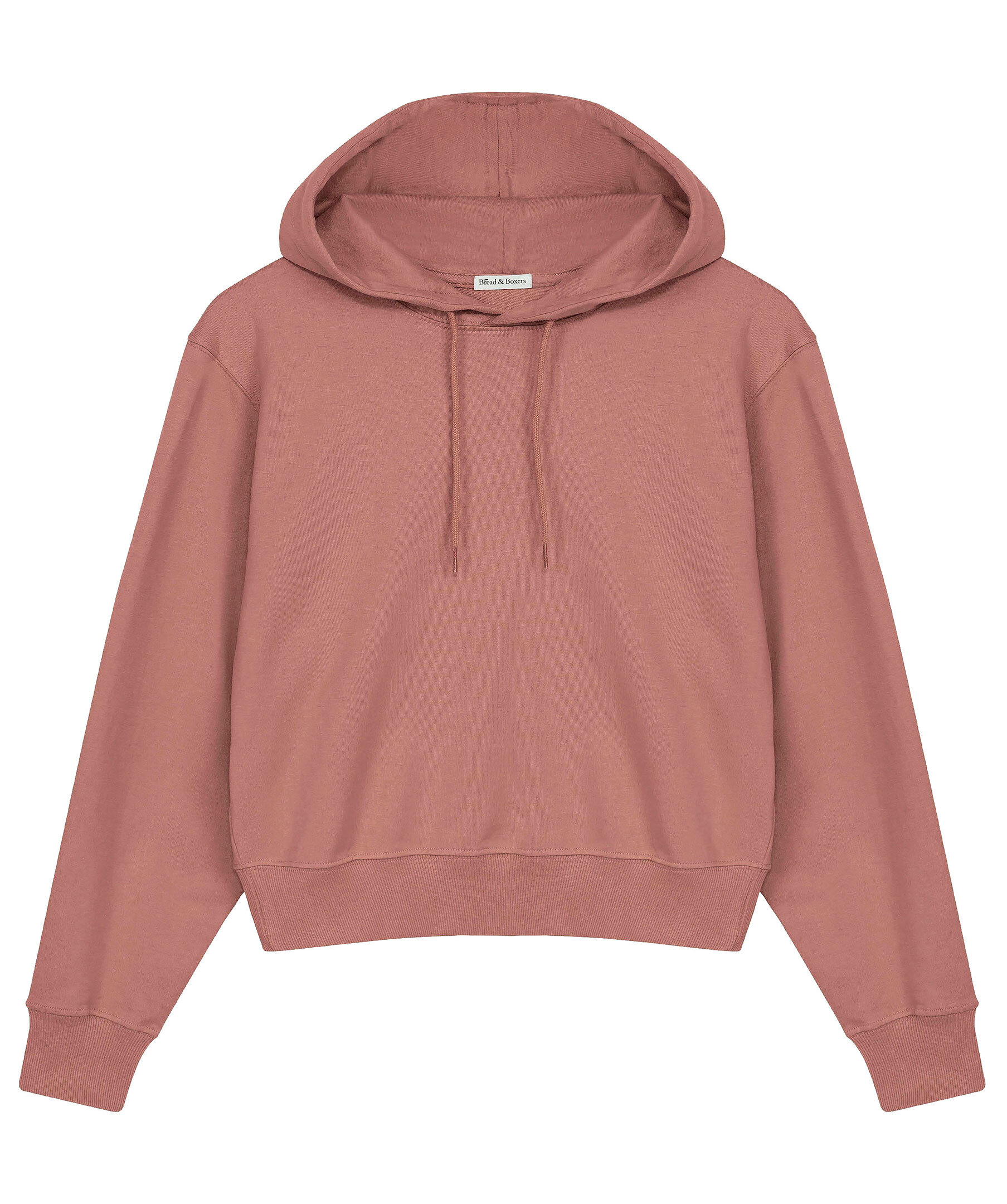 Gammelrosa hoodie från Bread & Boxers. Tillverkad i 100% ekologisk bomull. Kort boxig modell, luva med snören i bomull. Ribbad mudd i midje- och ärmslut.