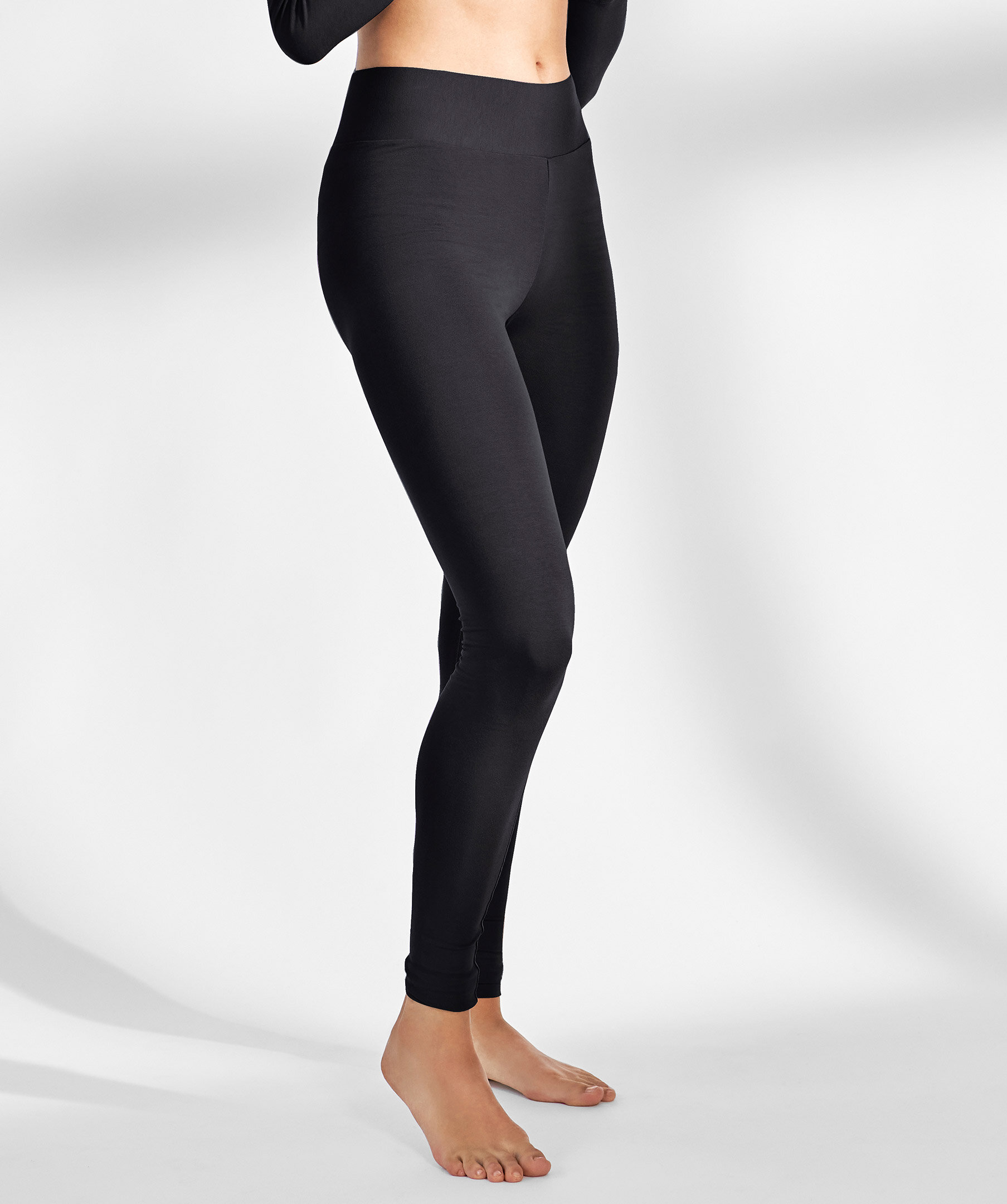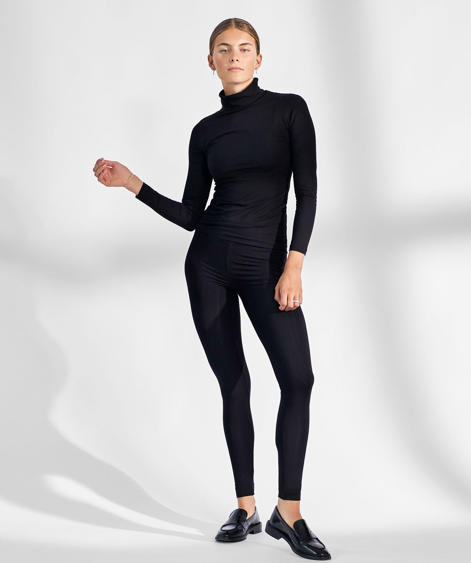 Svarta leggings från Bread & Boxers. De perfekta tightsen för en dag på stan eller för att mysa i hemma. Modellen har en hög midja med ett brett midjeband som ger stadga. Det mjuka materialet med stretch gör tyget följsamt. Styla med Turtleneck i samma kvalité och njut av den mjuka, följsamma känslan. Modellen är 173 cm lång och bär storlek S.