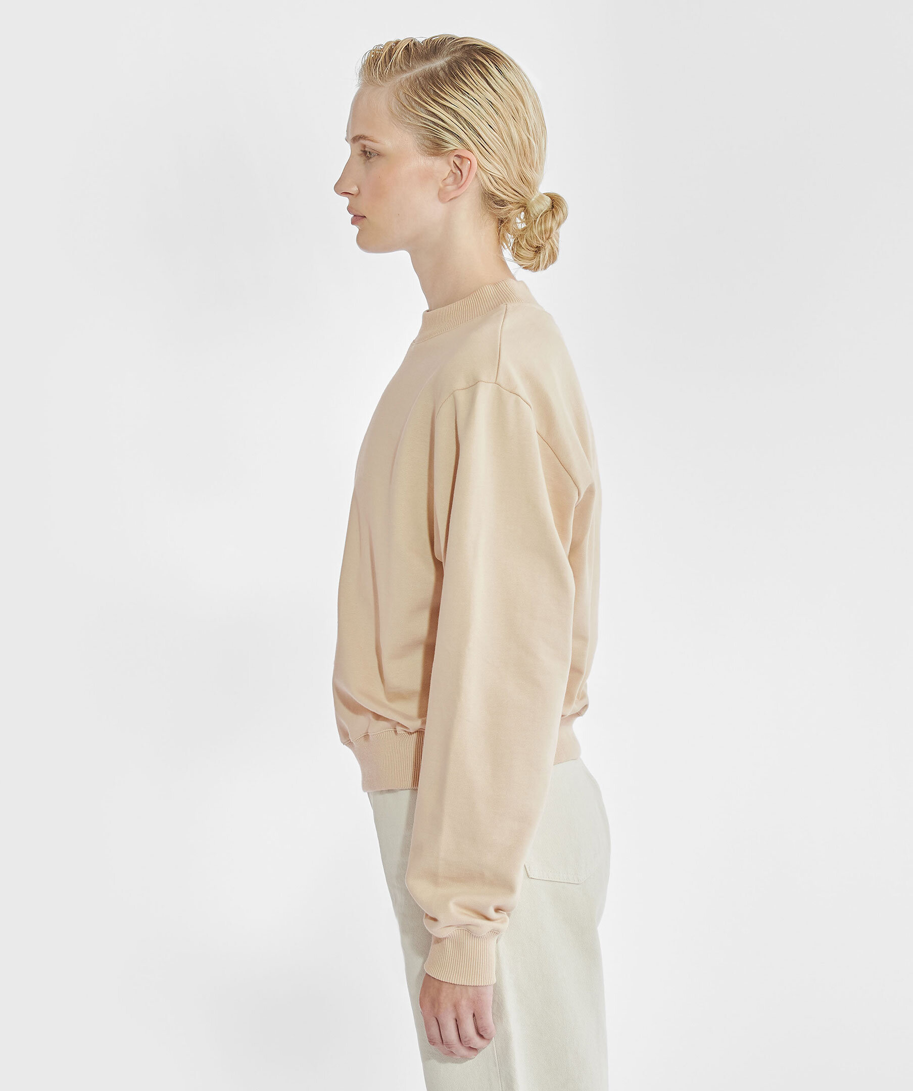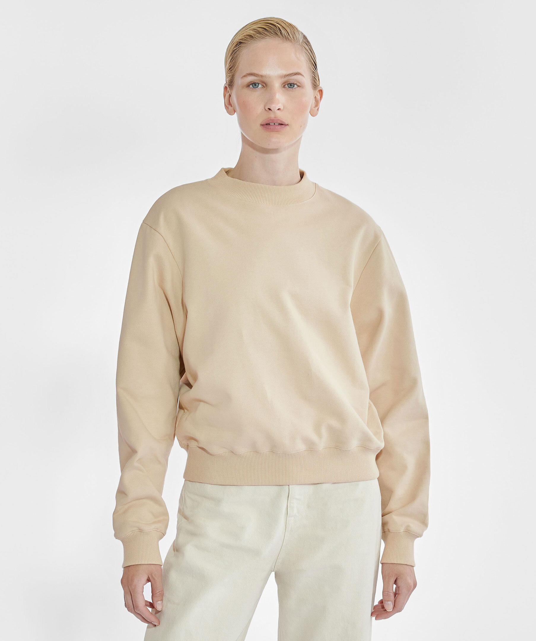 Beige sweatshirt i oversizemodell från Bread & Boxers. Tillverkad i 100% bomull. Ribbad mudd i plaggslut, runt ringning och ärmslut. Rundad halsringning.