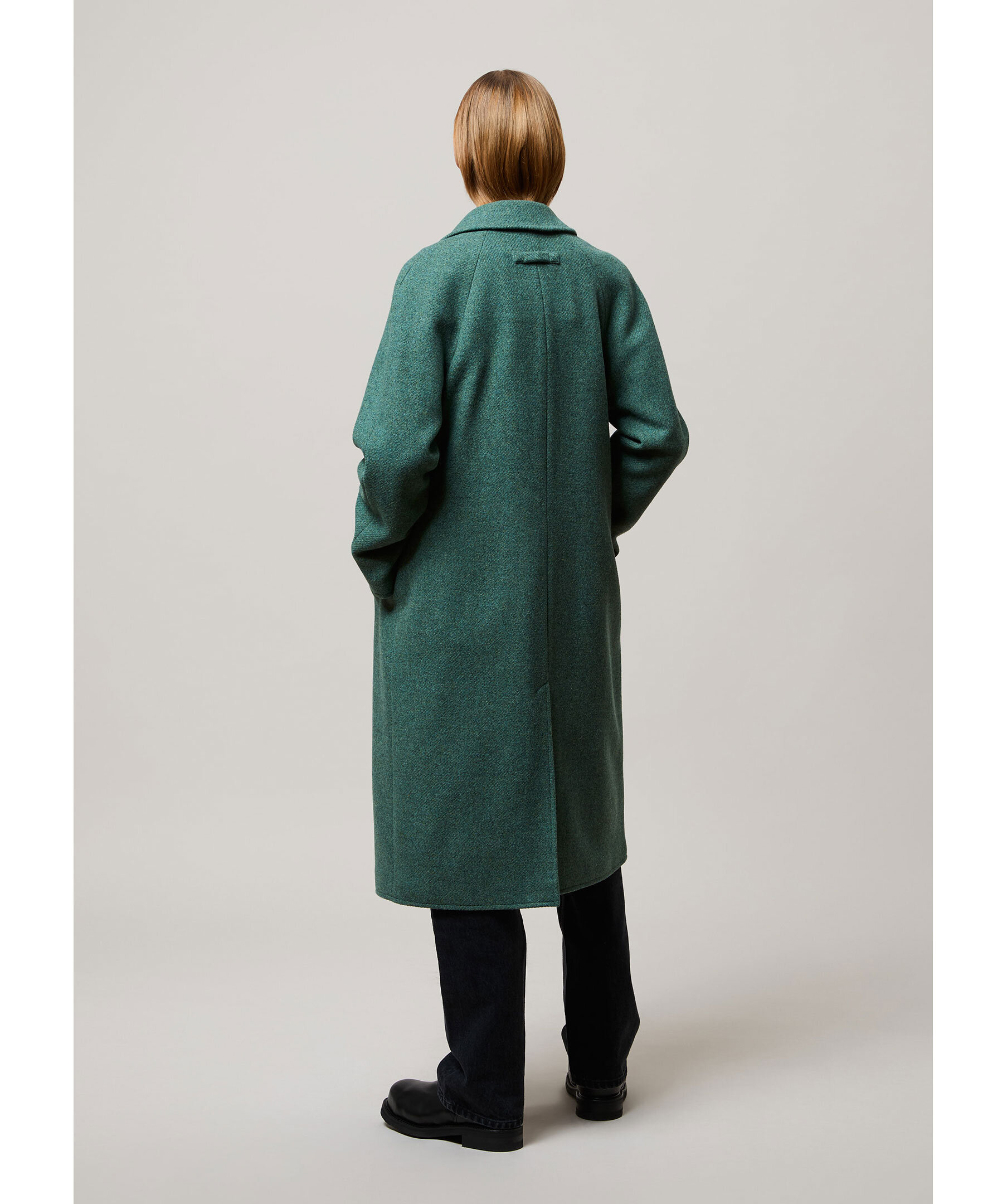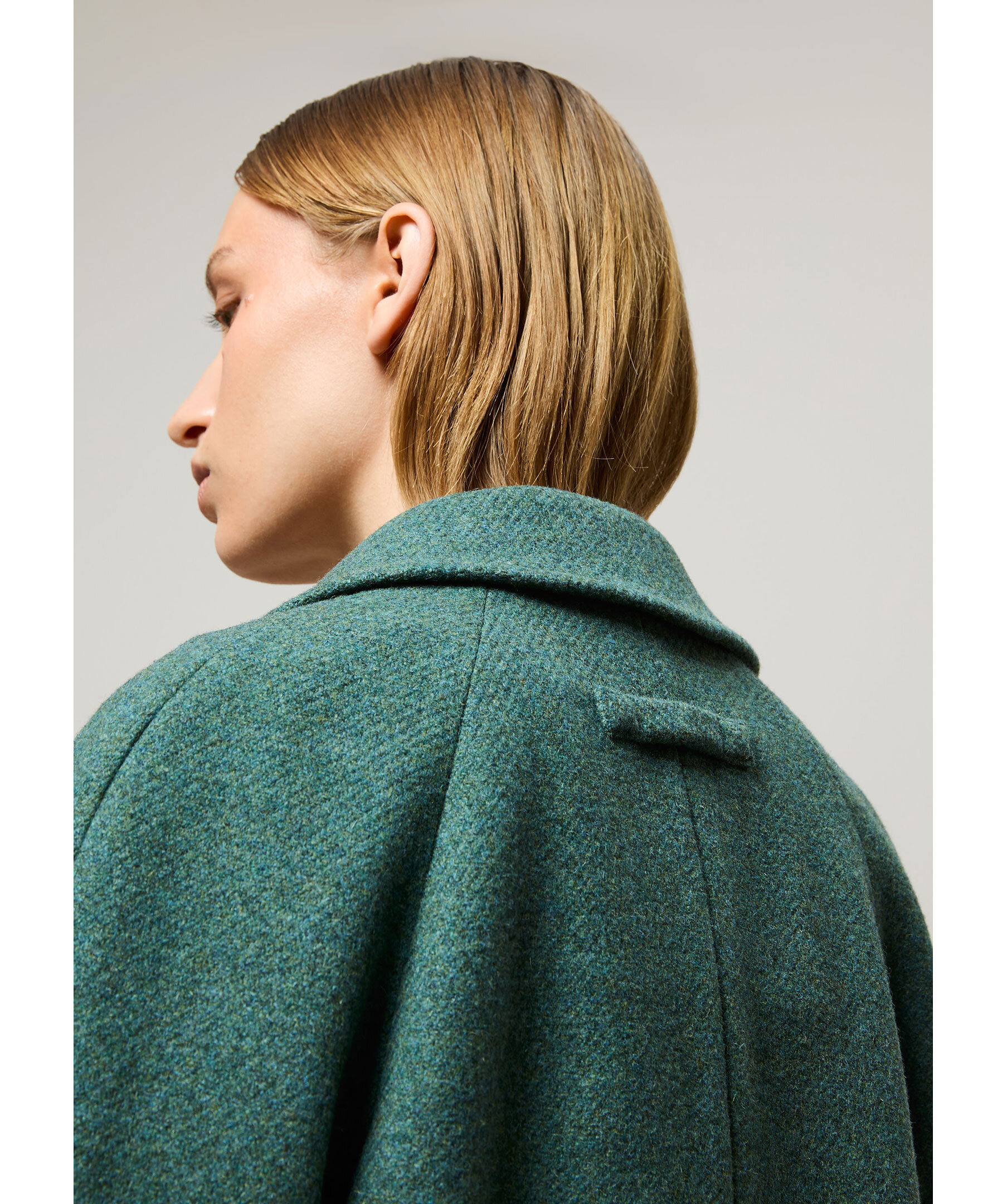 Turkosfärgad ullkappa från Brixtol Textiles. Kappan stängs med två knappar framtill och har två sidfickor samt sprund baktill. Tillverkad i ull med polyester- och viskosfoder.