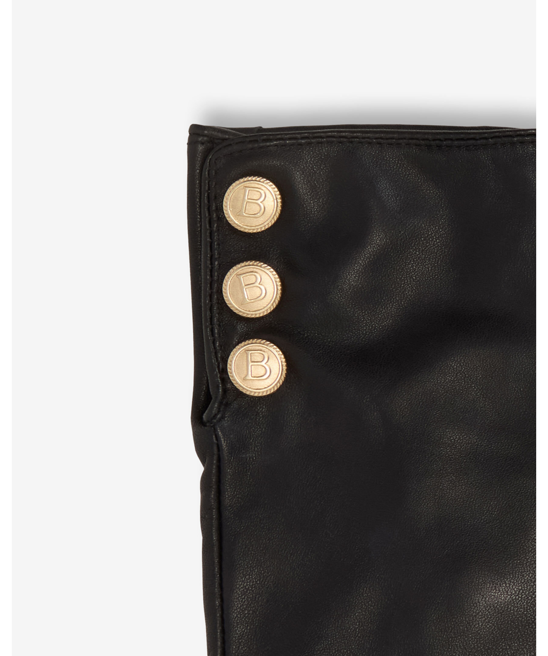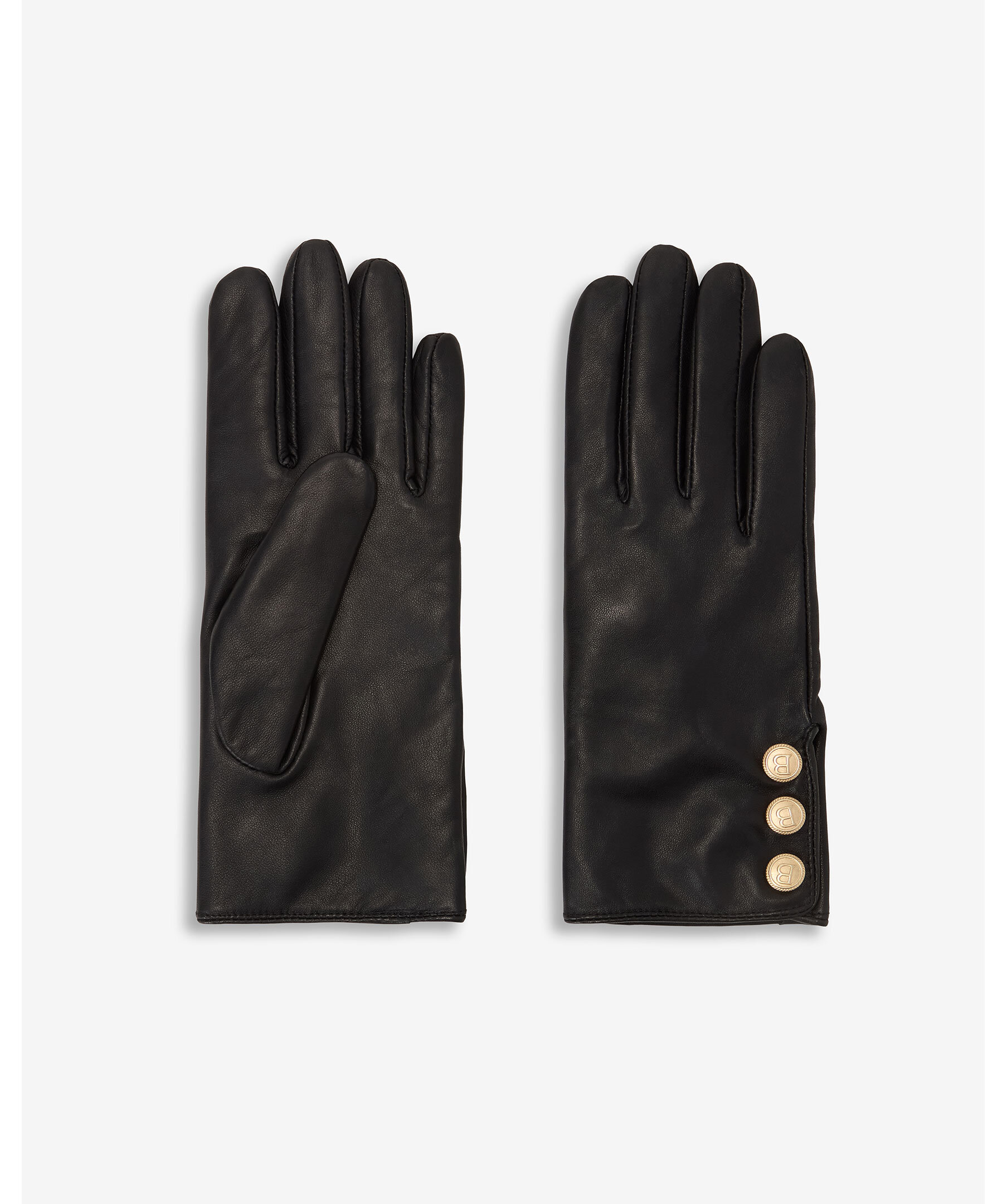 Handskar i skinn med ett mjukt foder och är detaljerade med tre gyllene B-tryckknappar från Busnel.