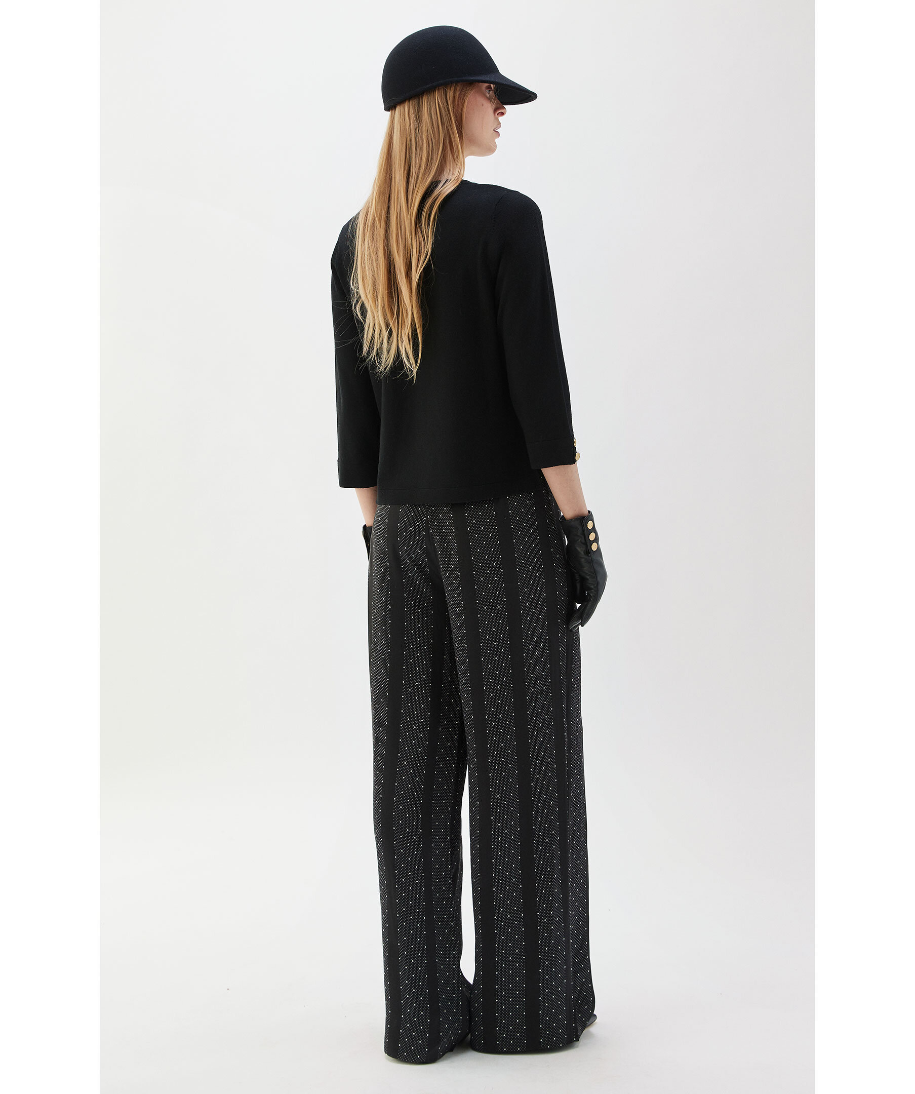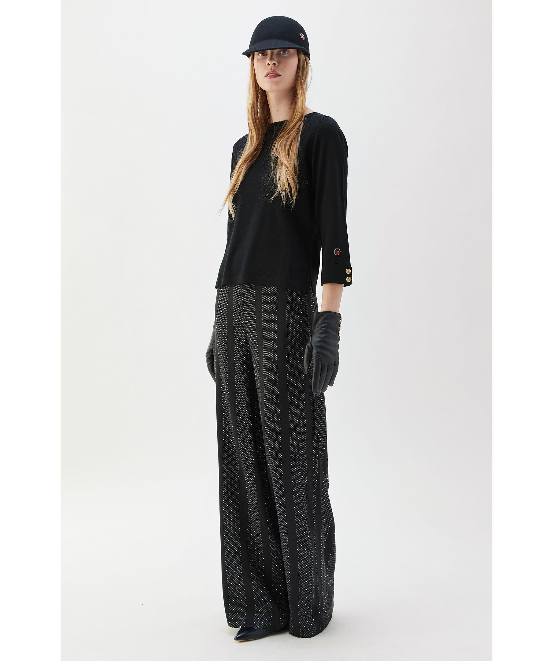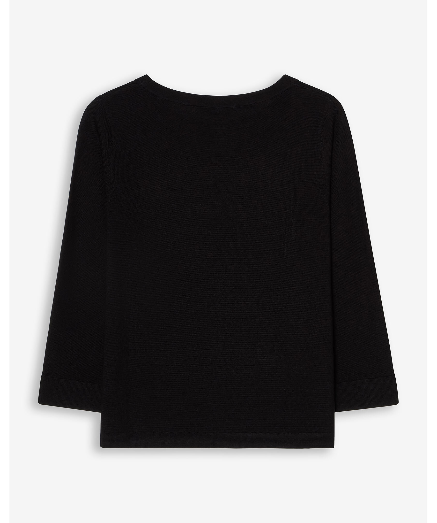 Svart, finstickad topp från Busnel. Toppen har, korta sidoslitsar samt något kortare ärmar som är detaljerade med gyllene B-knappar. tillverkad i en extra fin merinoullkvalitet.