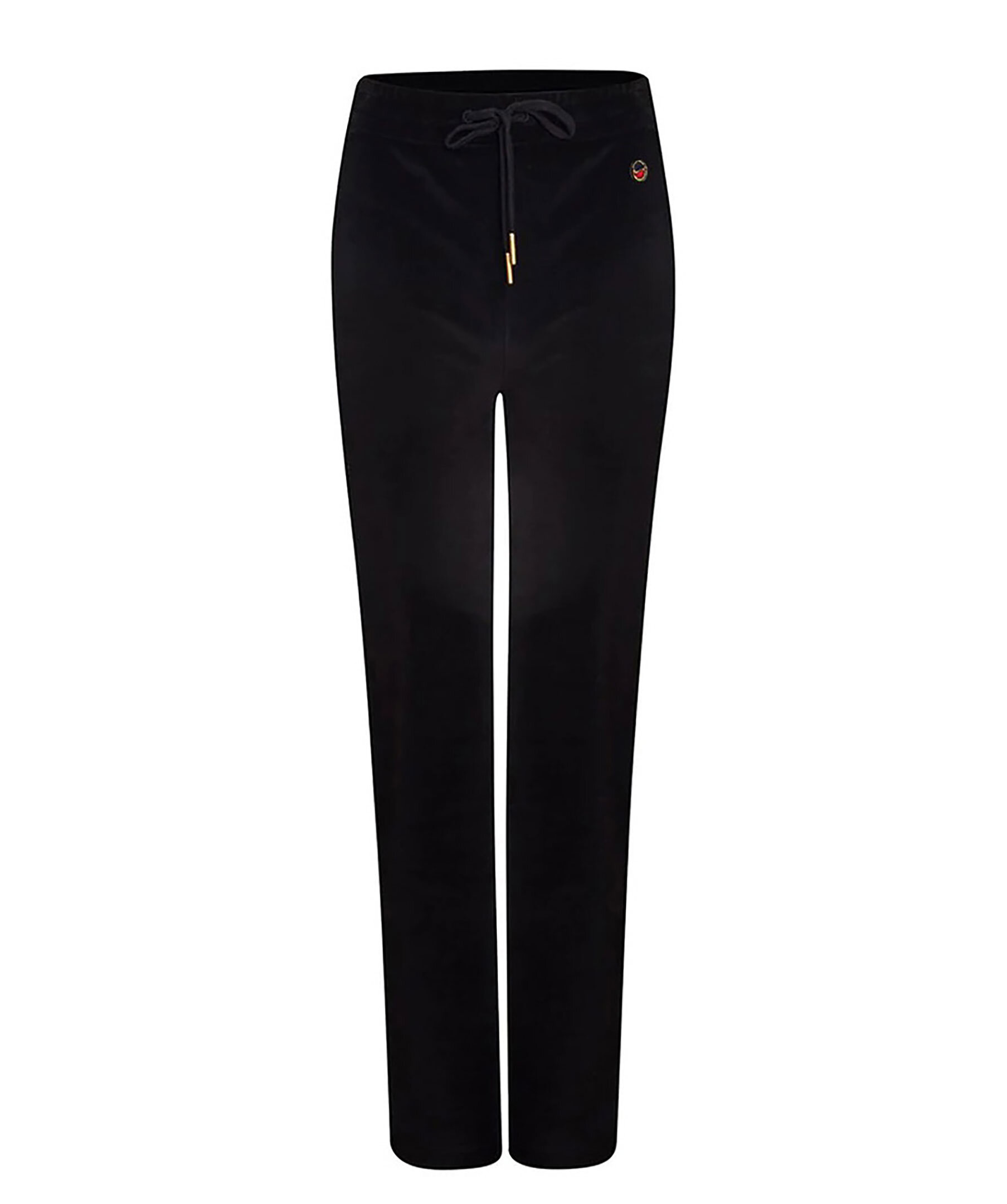 Svarta velourbyxor från Busnel. Elastiskt midjeband, dragsko med guldfärgade avslut och Busnel-logotypen på vänster höft. Bär din med en tonal topp eller med matchande Amanda Hood Jacket för en mysig look. Om du är mellan två storlekar välj en större storlek. Modellen är 176 cm och bär storlek 38.
