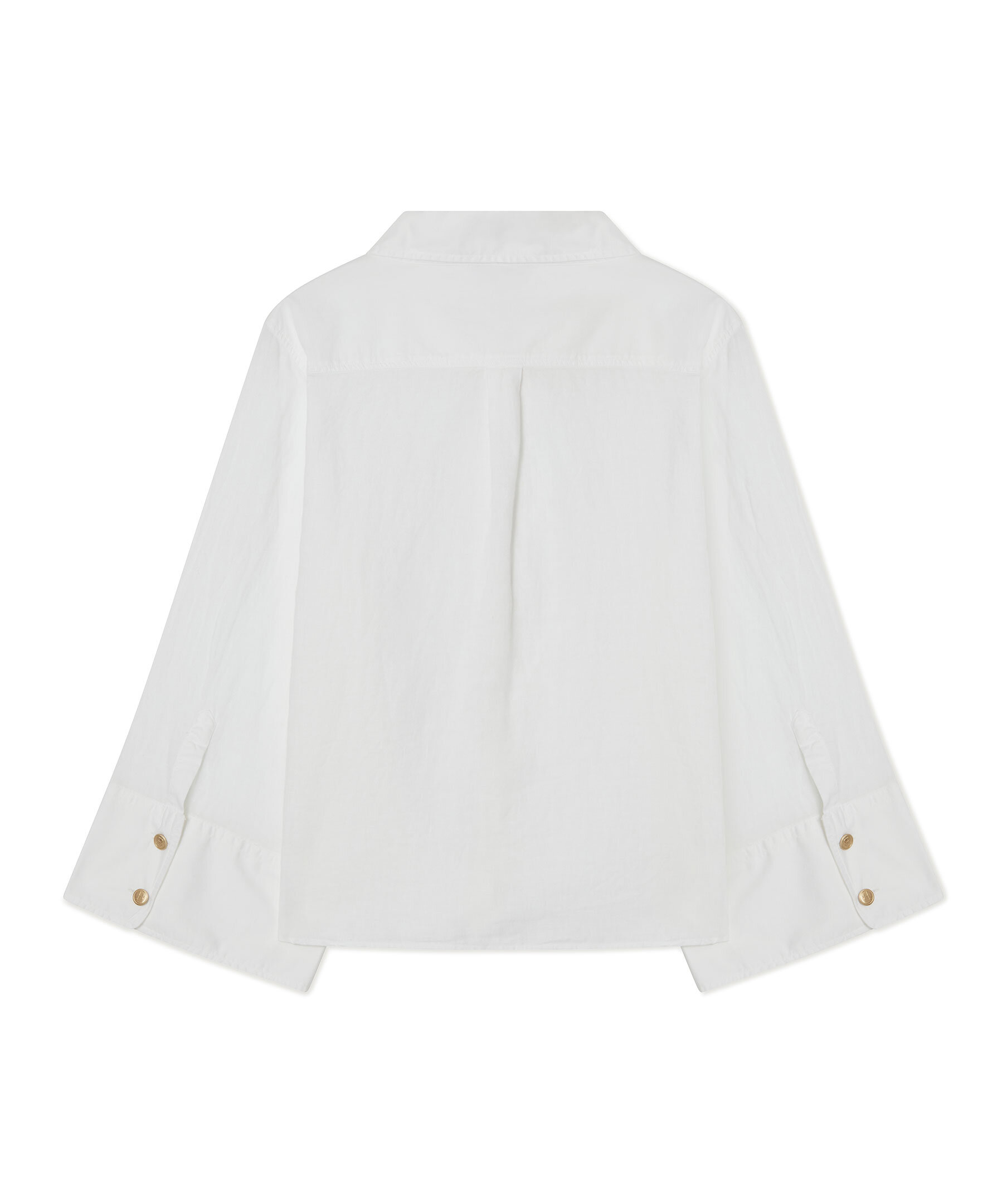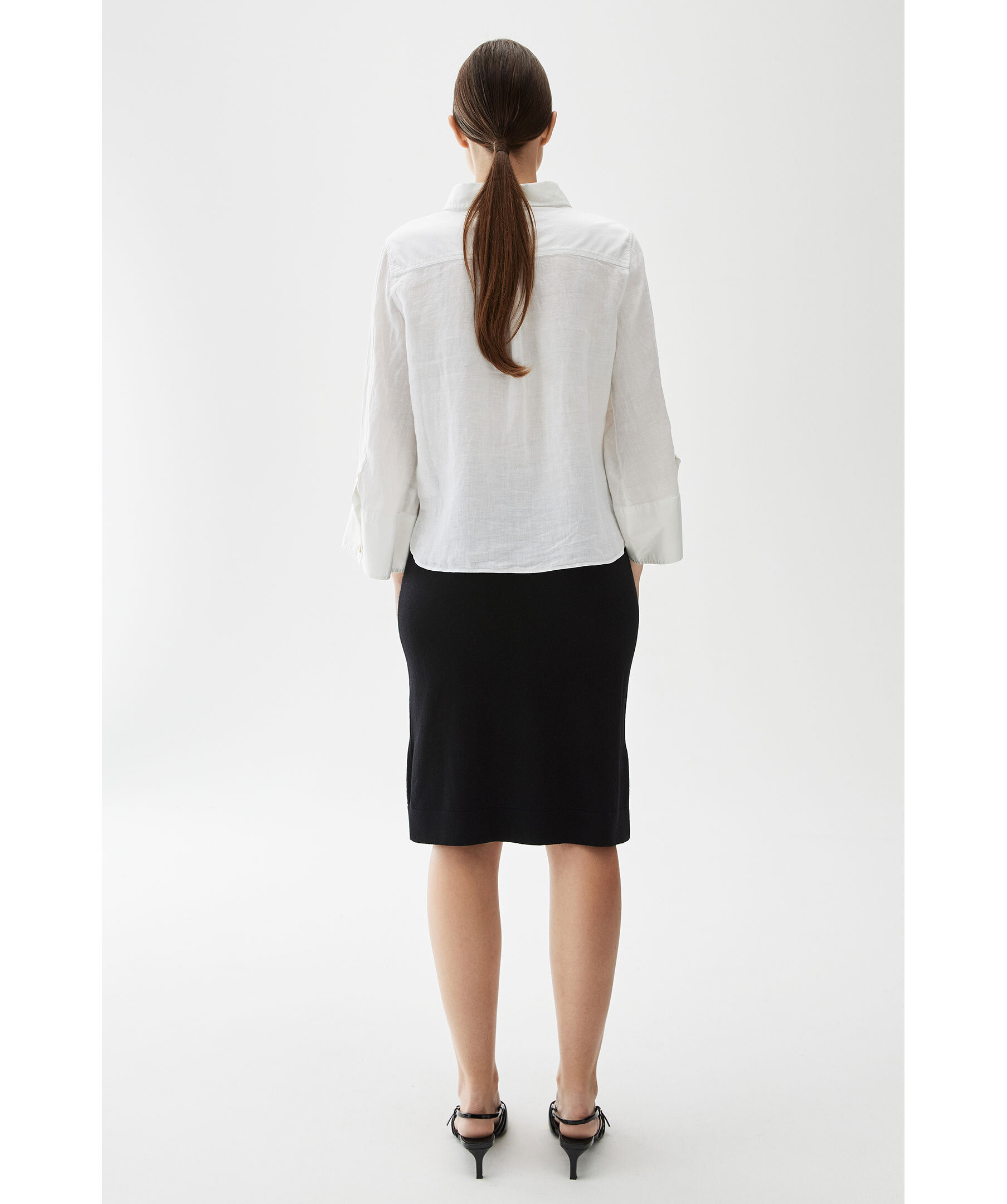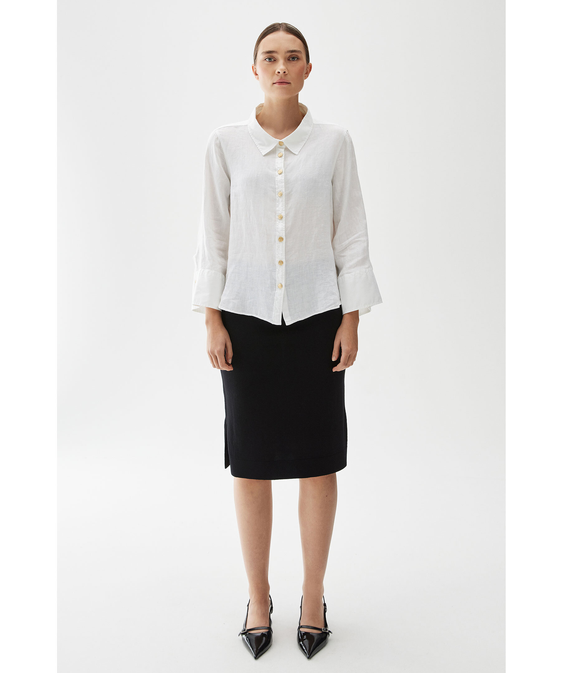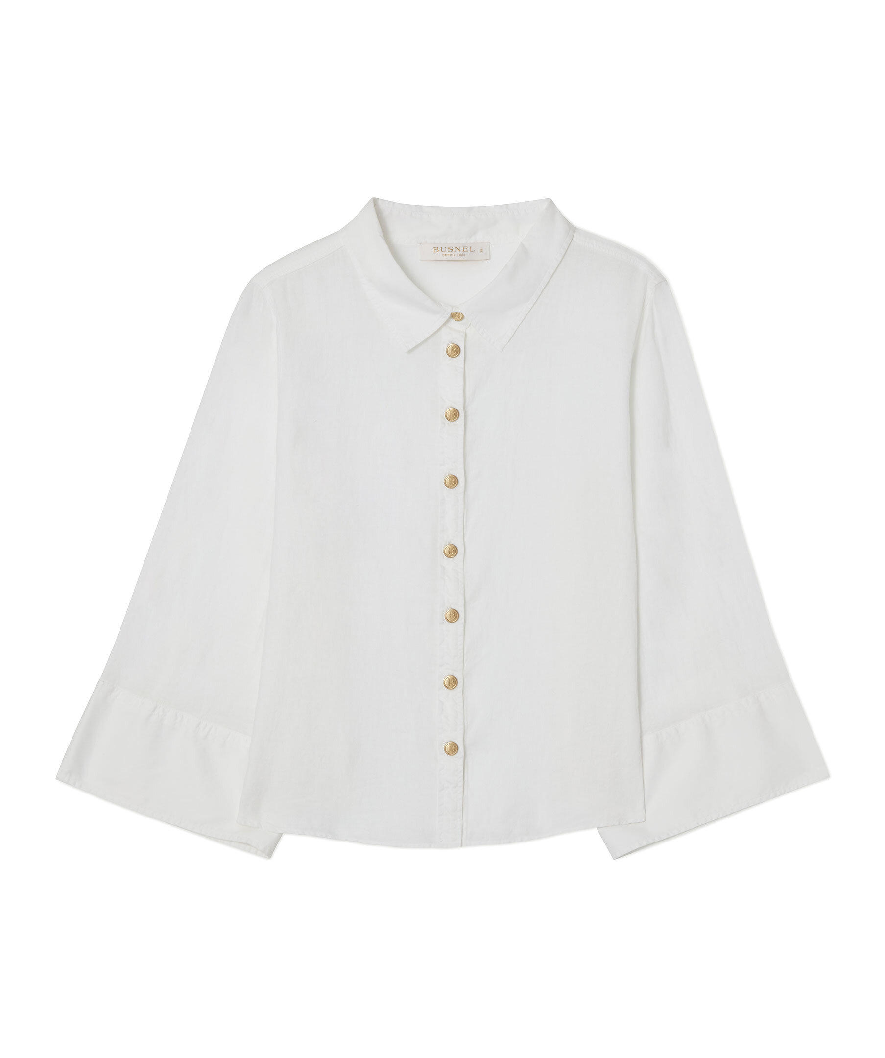 Vit linneskjorta från Busnel. Detaljerad med kortare vida ärmar och gyllene B-knappar. Tillverkad av naturligt andningsbart linne som känns flytande och lätt. Normal passform.