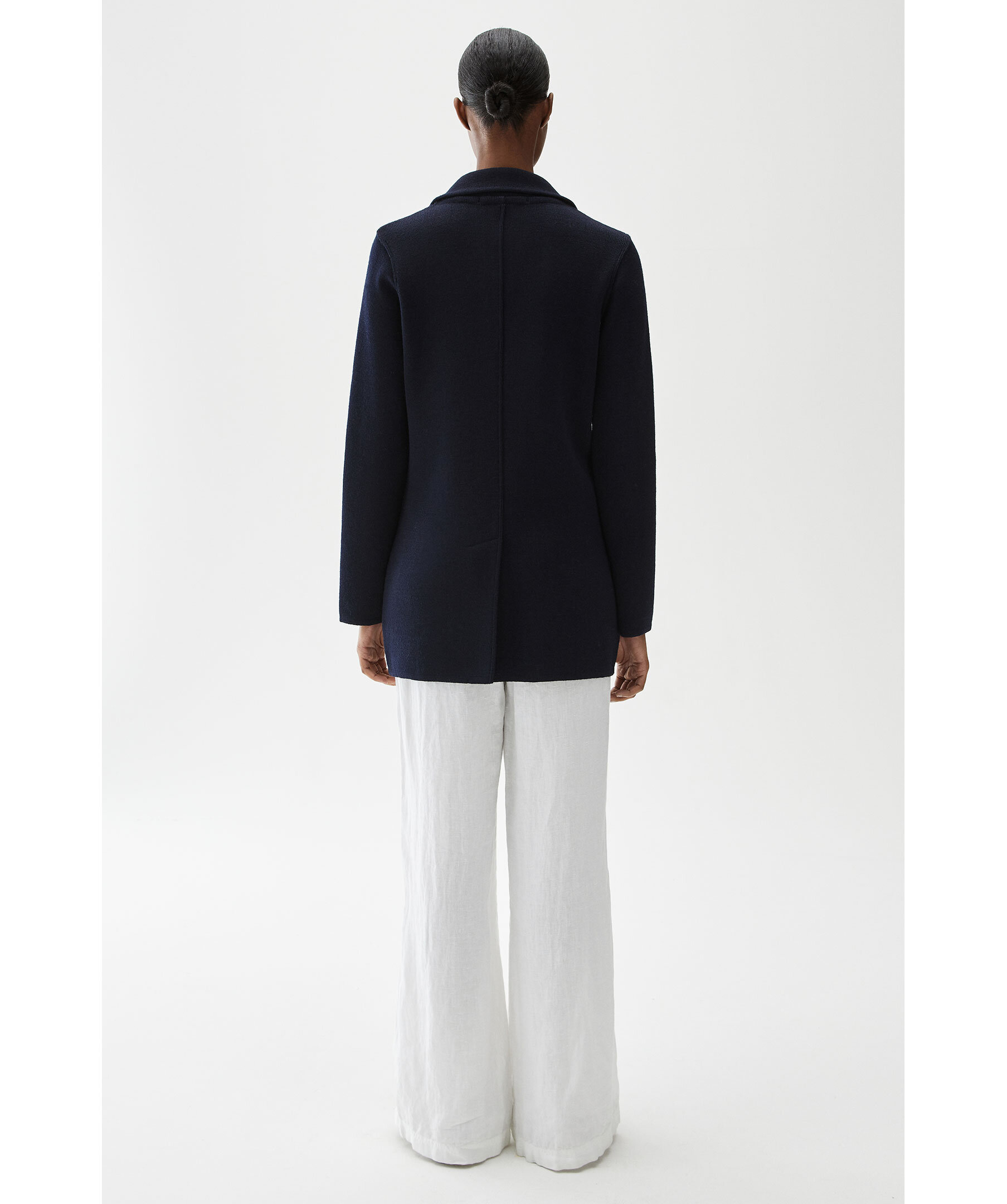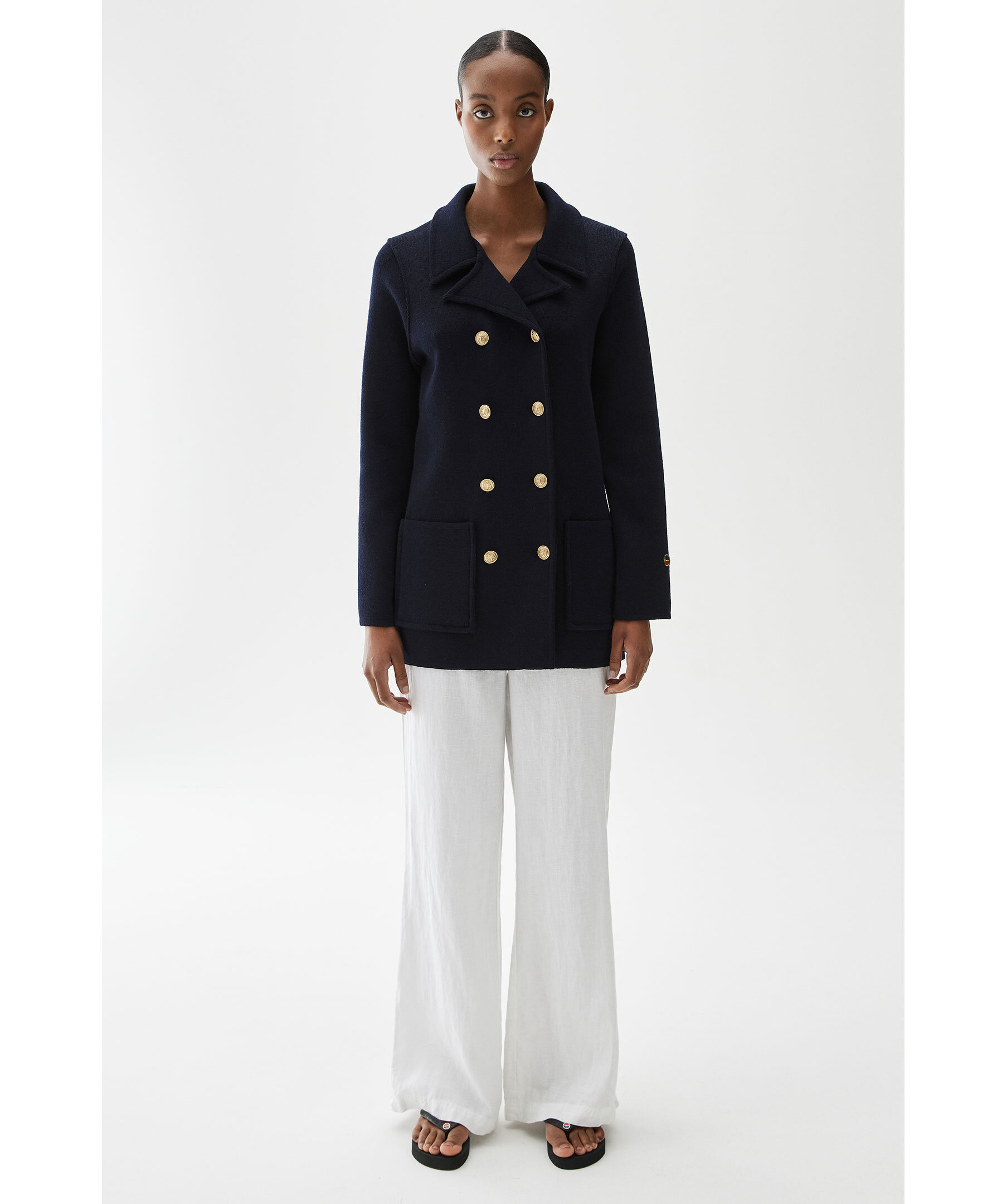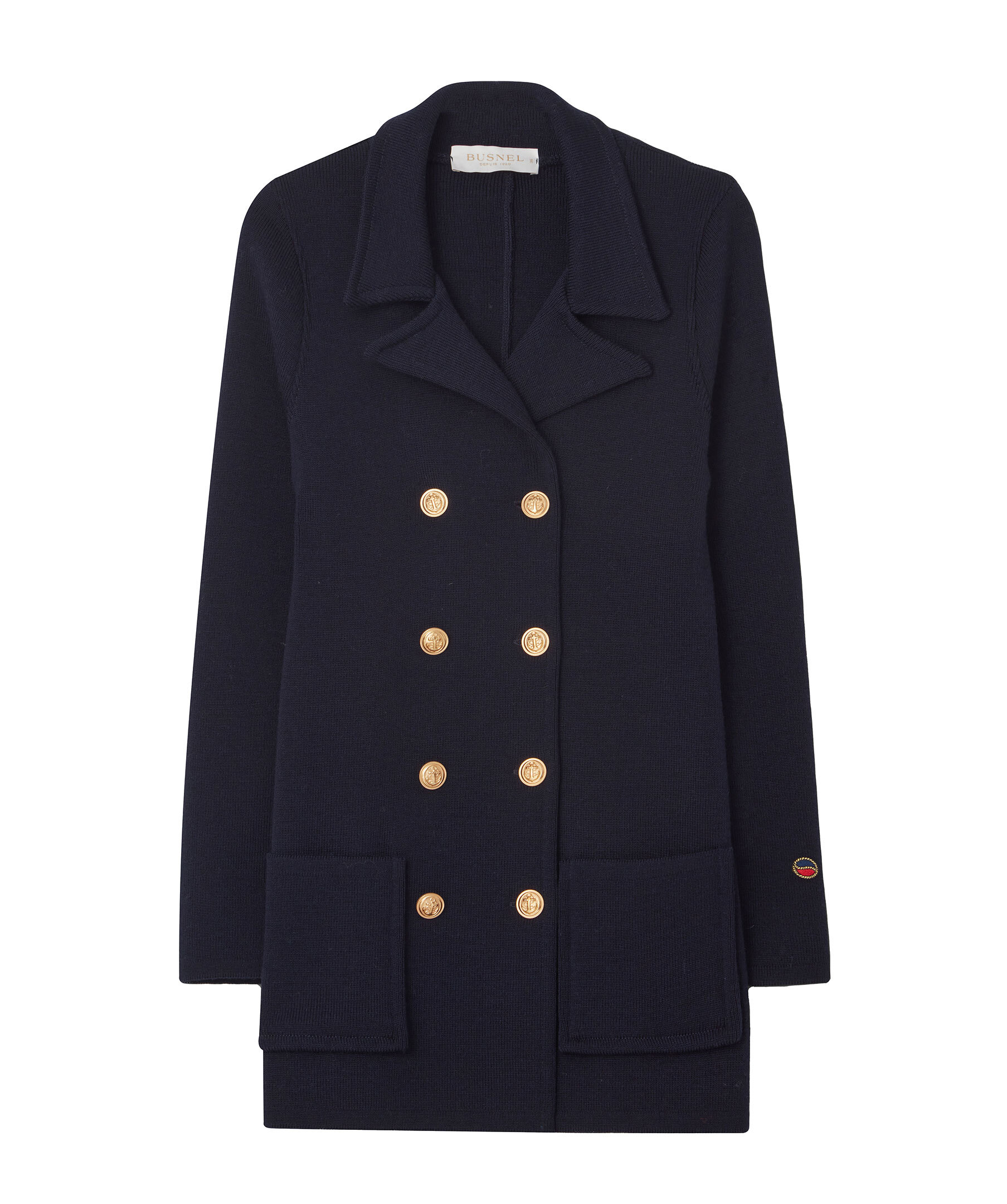 Marinblå ulljacka från Busnel. Denna klassiska och tidlösa kavaj är skuren i en smickrande feminin siluett och den är avslutad med åtta gyllene ankarknappar. Kavajen har två fickor. Styla den med allt från skräddarsydd till denim. Liten i storleken, vi rekommenderar att gå upp i storlek.