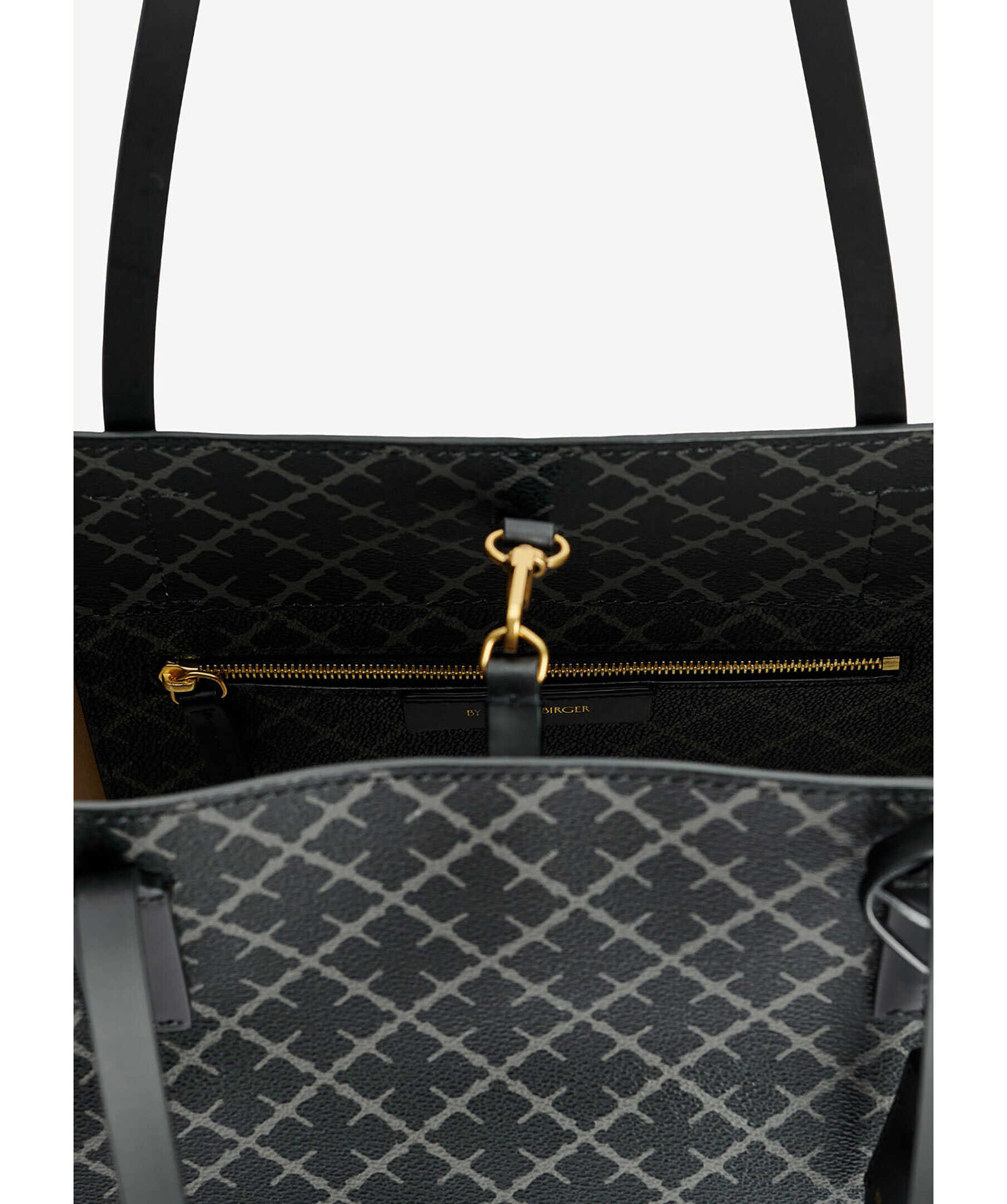 Stor svart och grå mönstrad tote väska från By Malene Birger. Signatur Flower-tryck, stängs med karbinhake och har en innerficka med dragkedja. Läderkant. Tillverkad i PVC. Mått: B: 48cm x H: 28cm x D: 12,5 cm