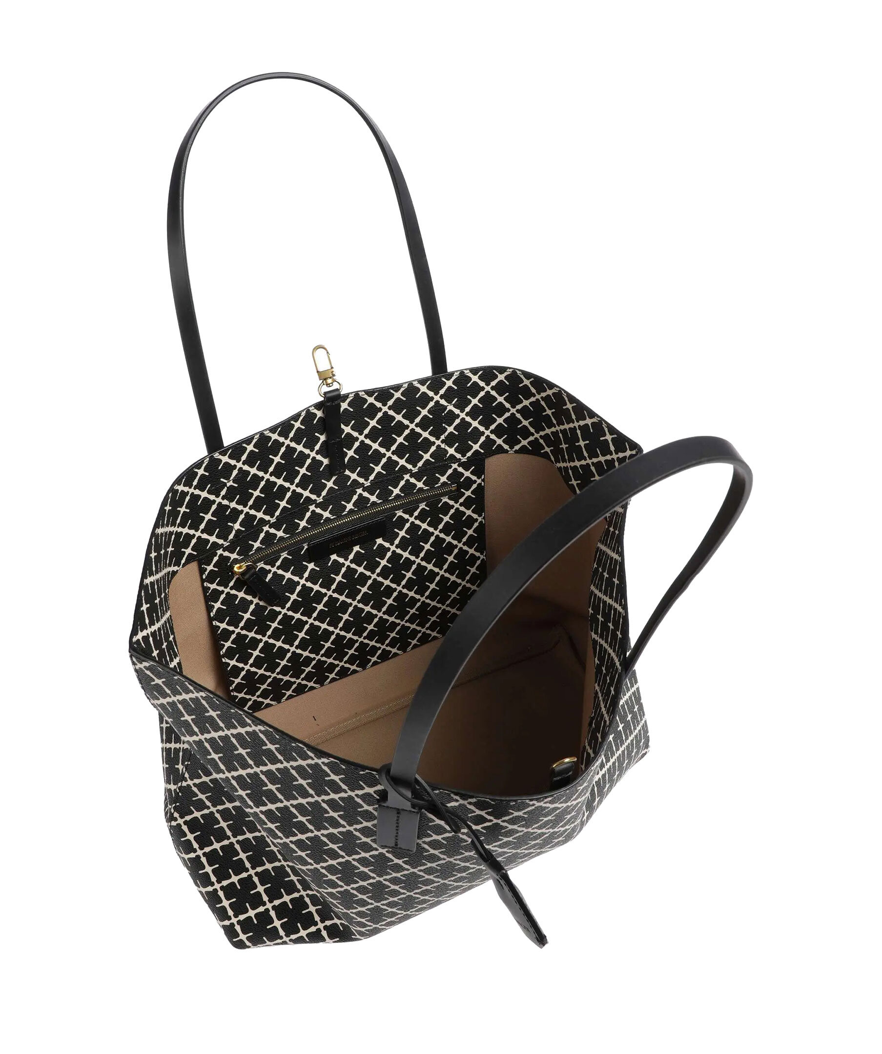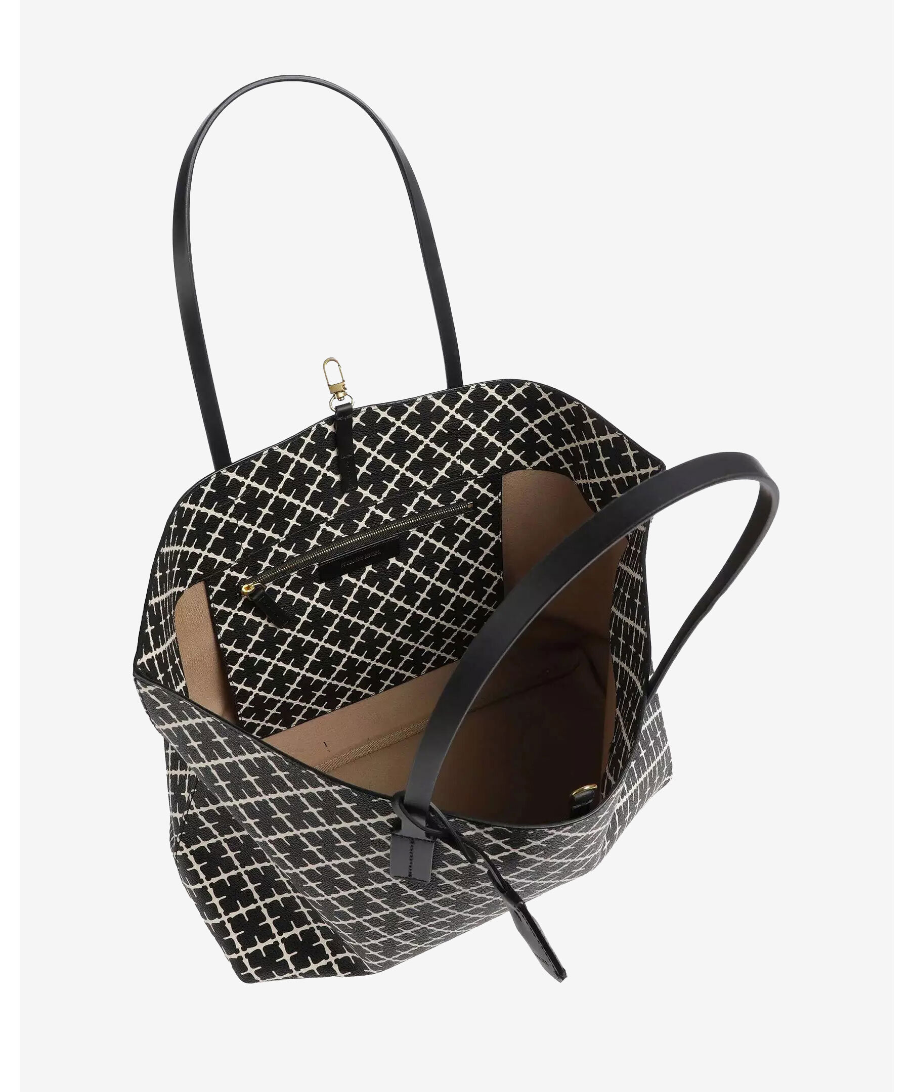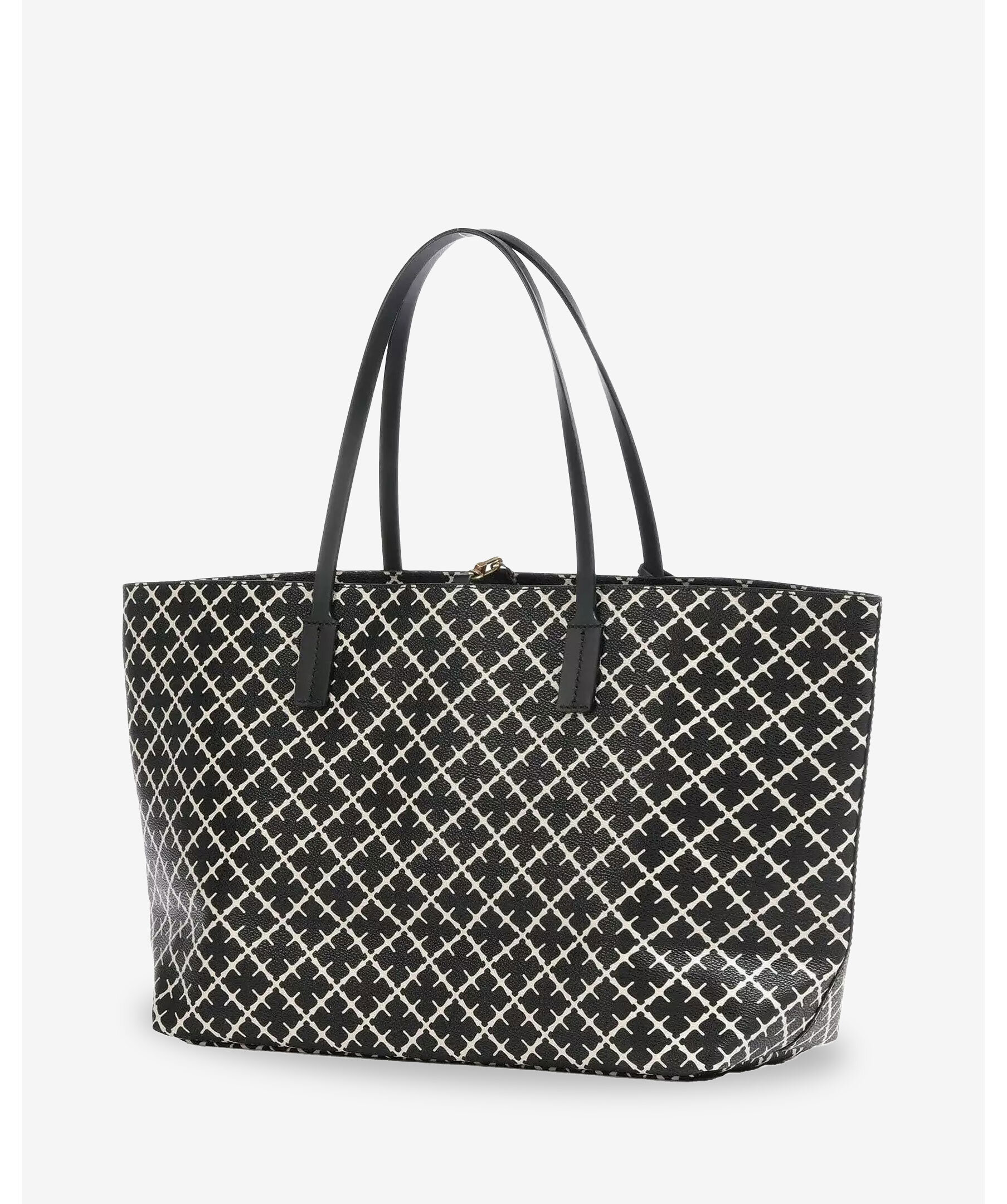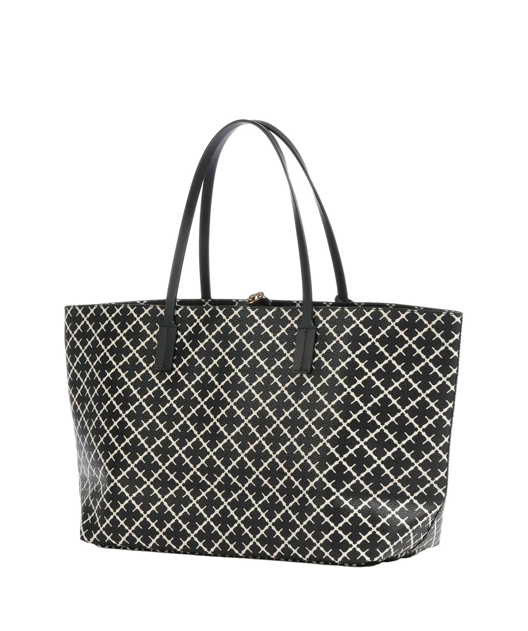 Stor svart och beige mönstrad tote väska från By Malene Birger. Signatur Flower-tryck, stängs med karbinhake och har en innerficka med dragkedja. Läderkant. Tillverkad i PVC. Mått: B: 48cm x H: 28cm x D: 12,5 cm