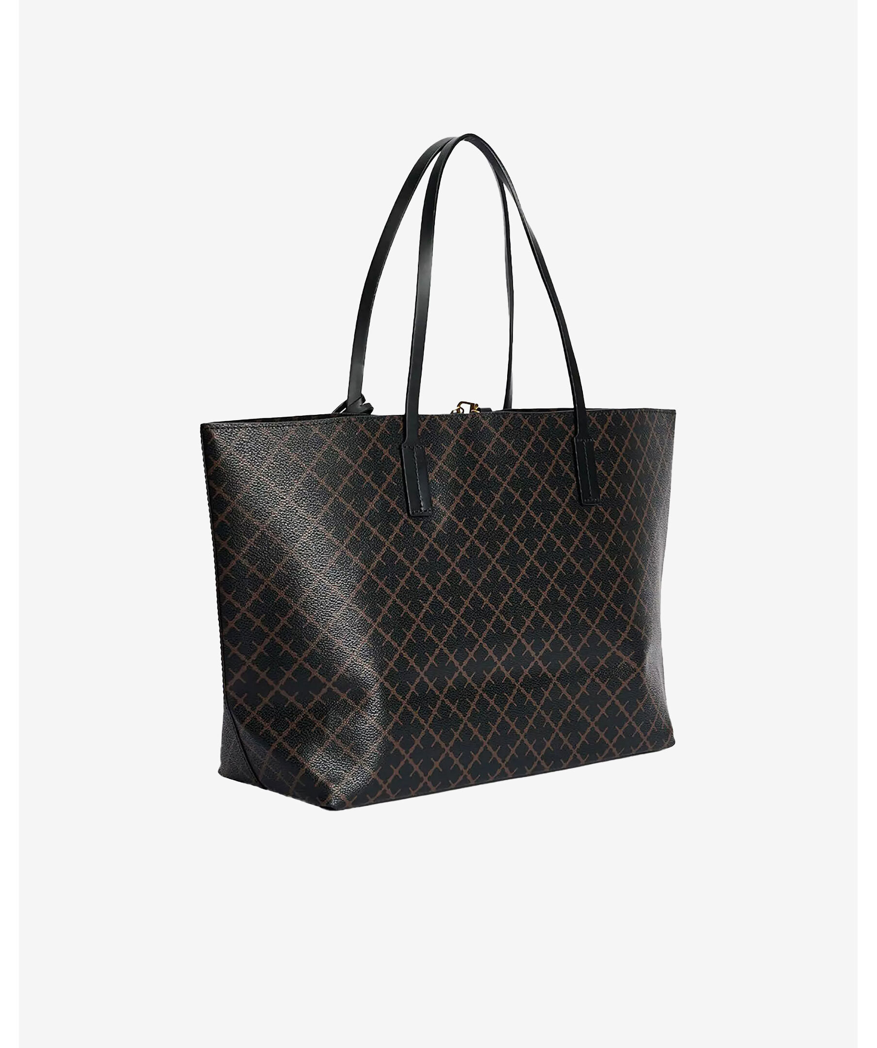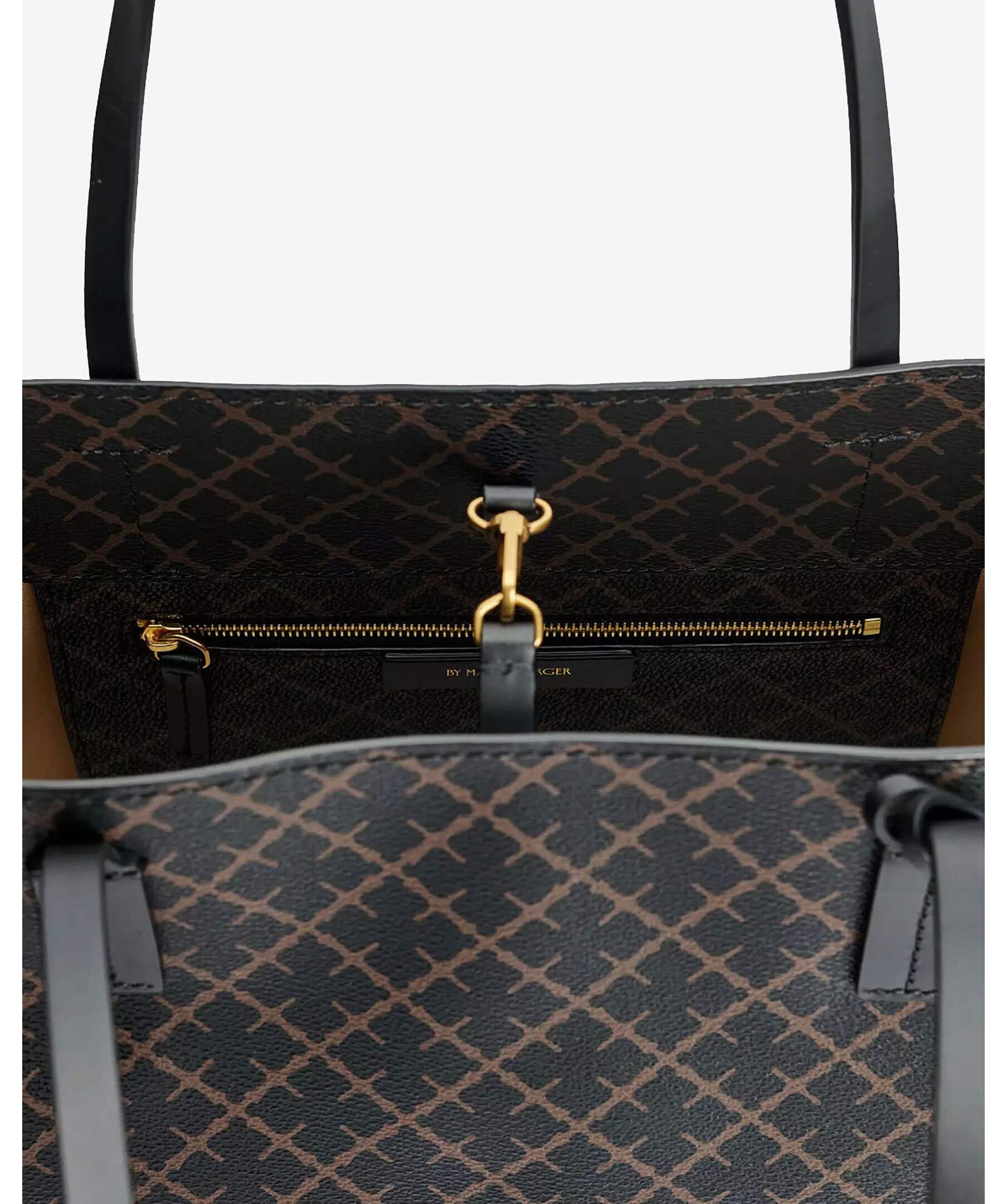Stor svart och brun mönstrad tote väska från By Malene Birger. Signatur Flower-tryck, stängs med karbinhake och har en innerficka med dragkedja. Läderkant. Tillverkad i PVC. Mått: B: 48cm x H: 28cm x D: 12,5 cm