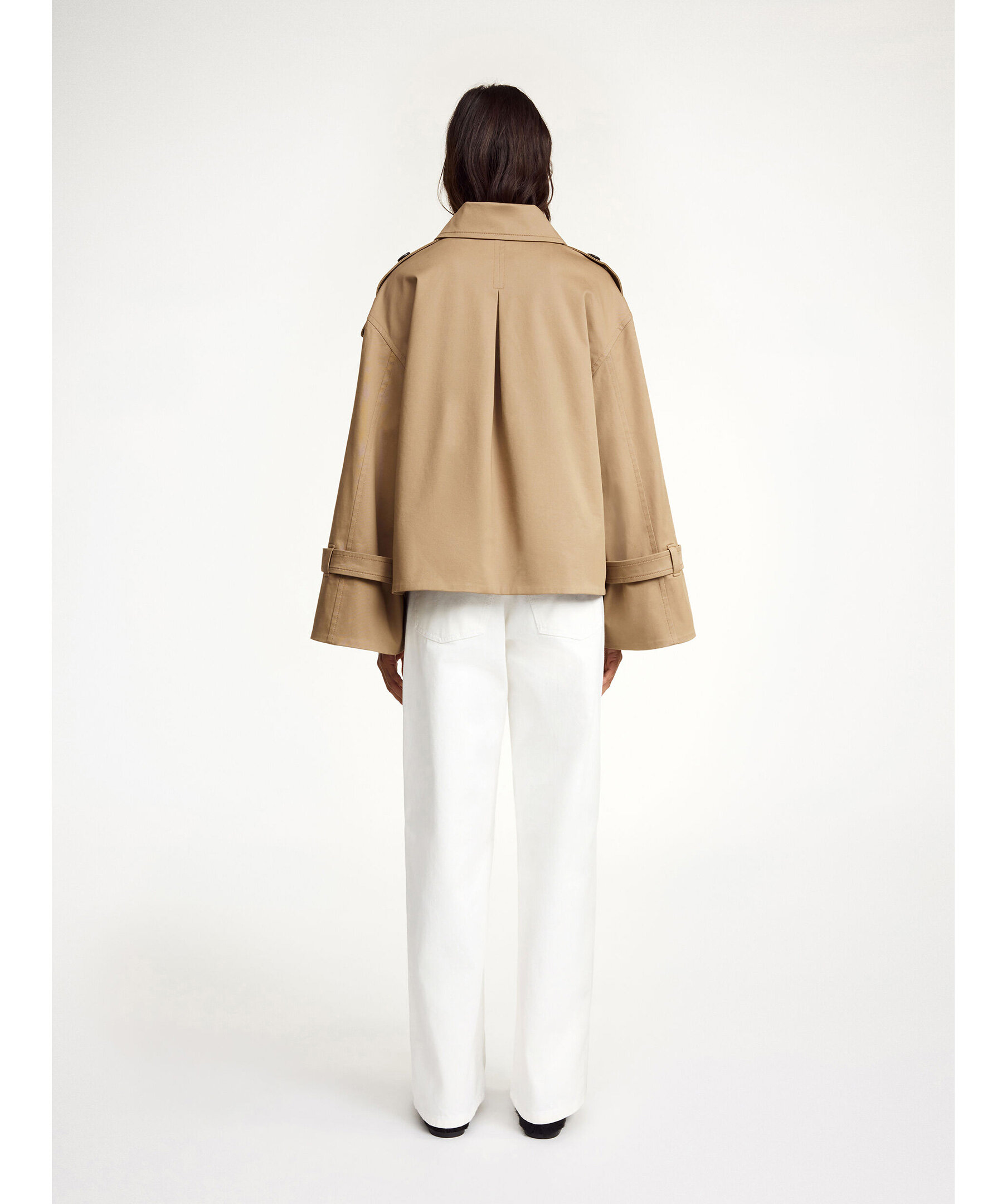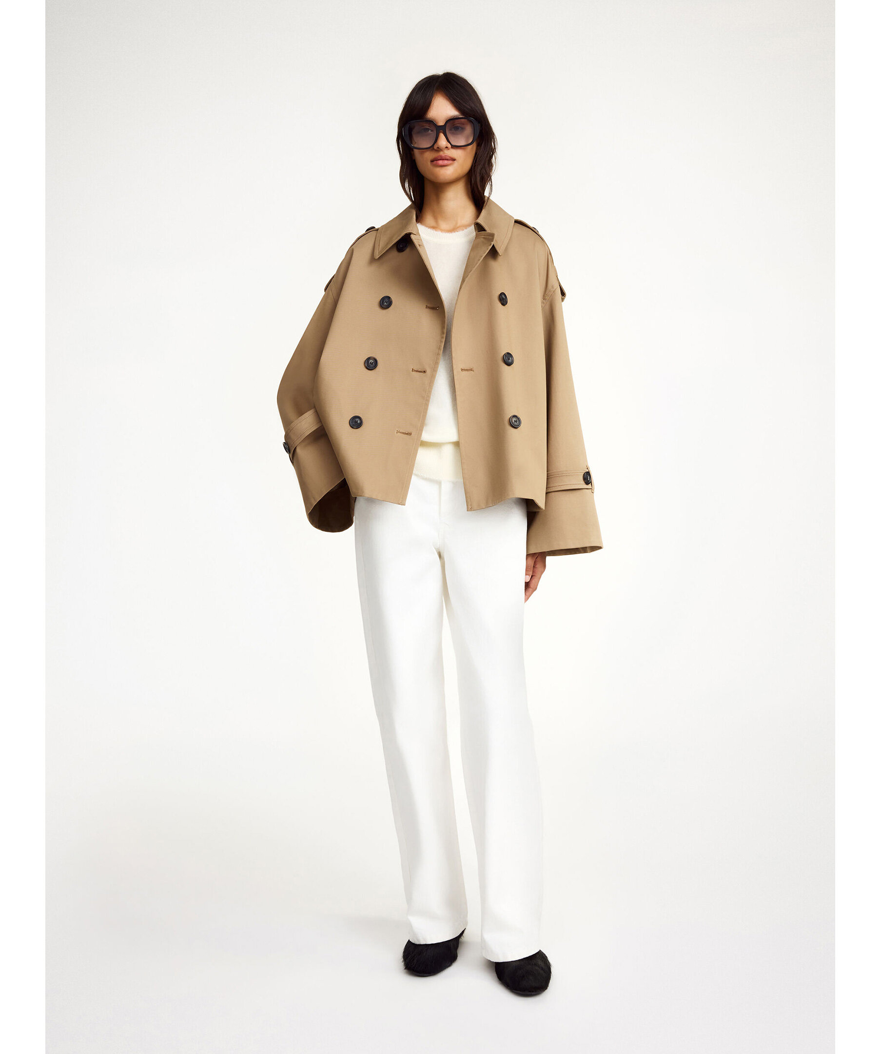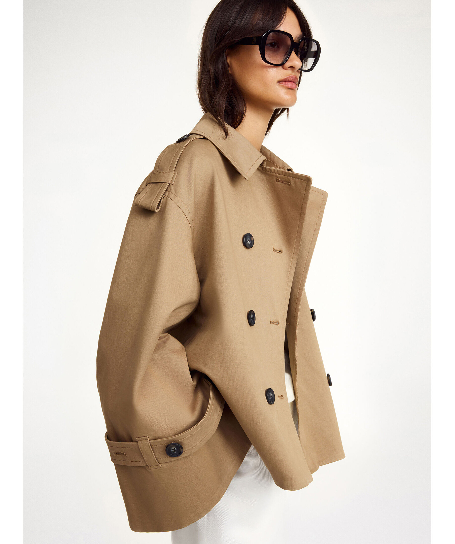 Oversized Alisandra trench jacket från By Malene Birger i en klassisk dubbelknäppt design. Trenchjackan har epåletter vid axlarna, breda ärmar och spännen vid ärmsluten, vilket ger en elegant och tidlös silhuett som fungerar lika bra i övergångsperioder som under svala vår‑ och höstdagar. Den är tillverkad i en mjuk ekologisk bomullsblandning med elastan för komfort, samtidigt som den behåller en strukturerad och chic look.