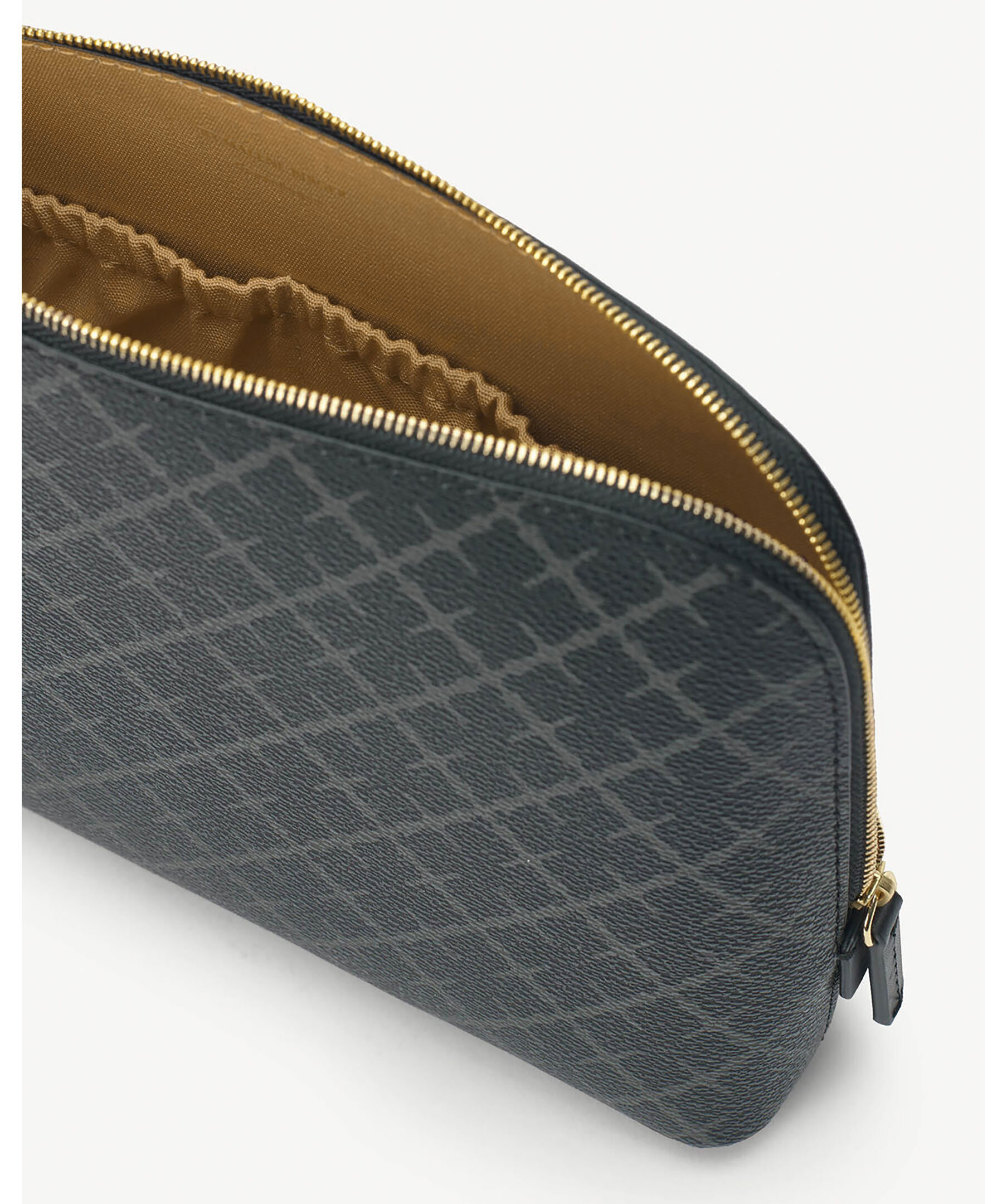 Grå necessär från By Malene Birger med deras klassiska blommönster. Stängs med guldfärgat blixtlås, har två elastiska innerfickor. Tillverkad av PVC.