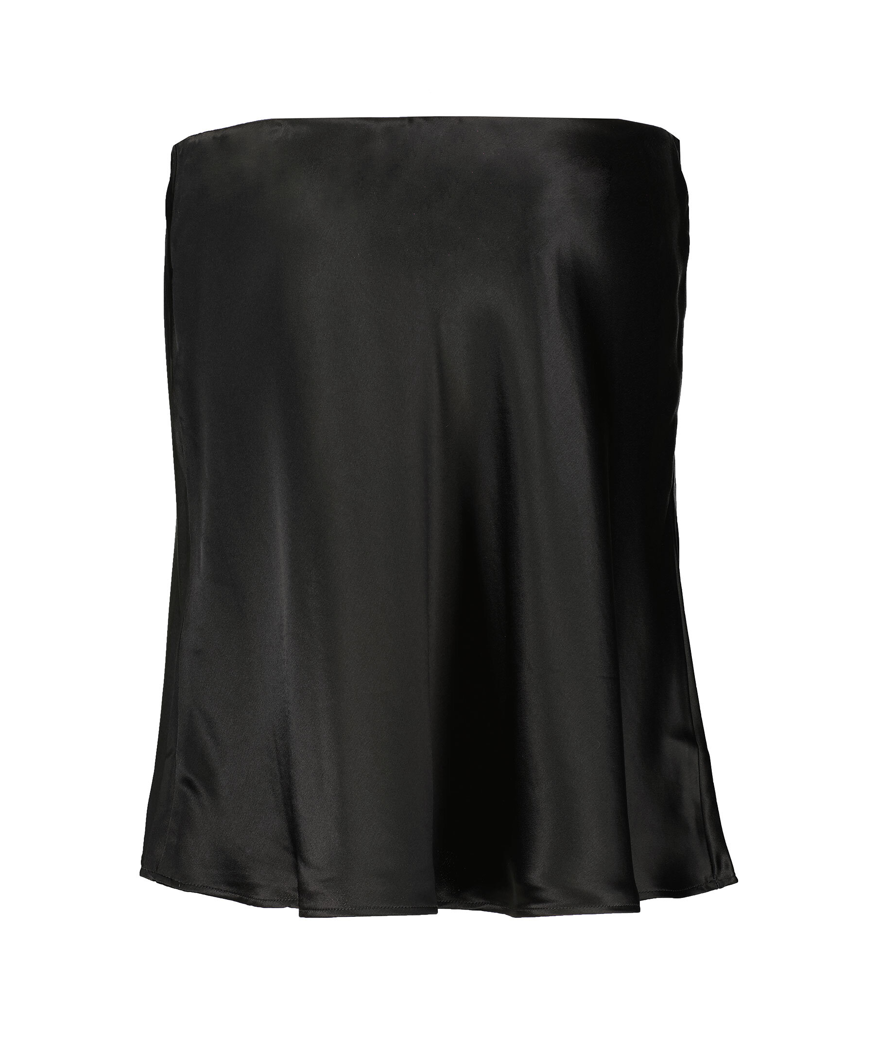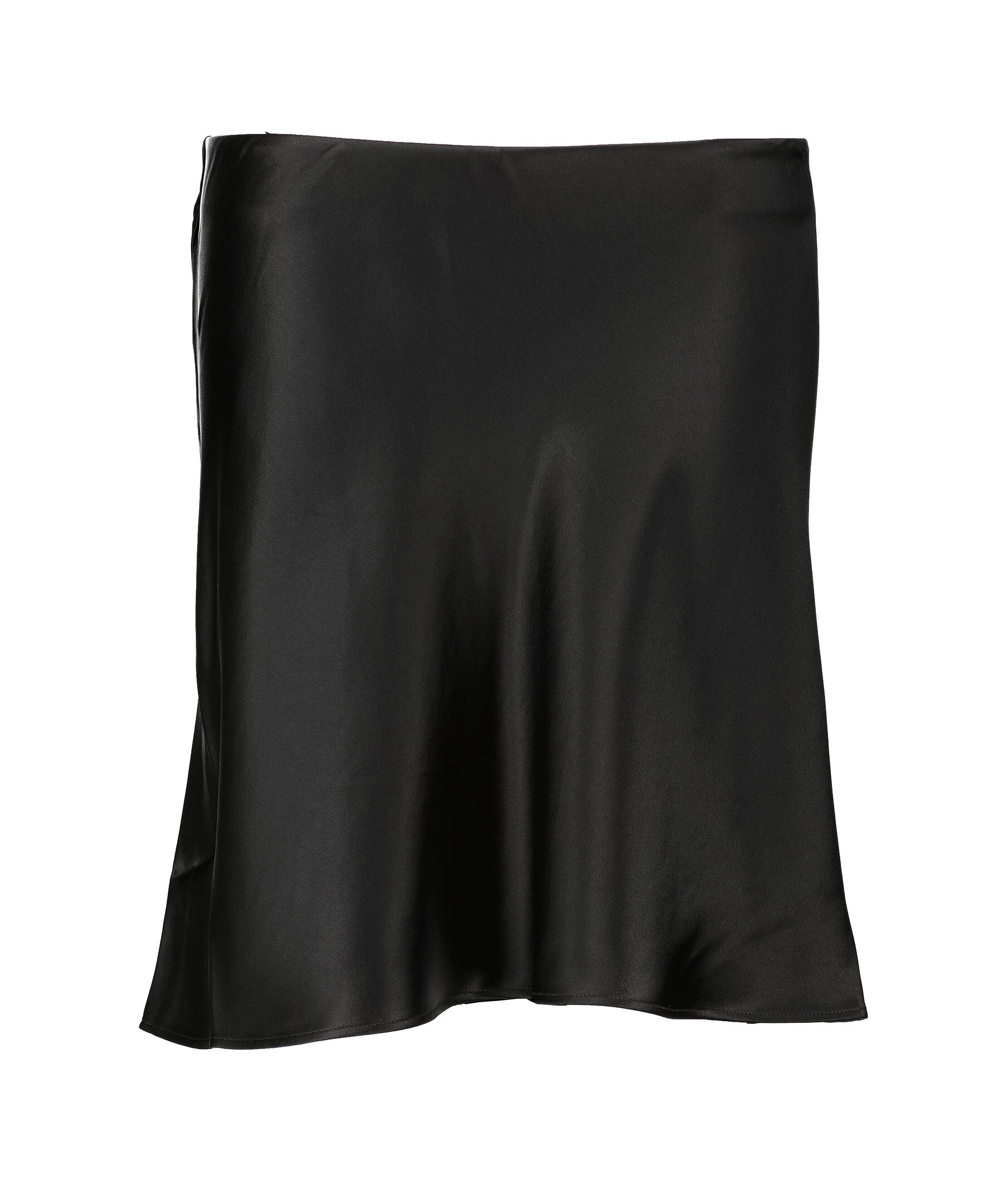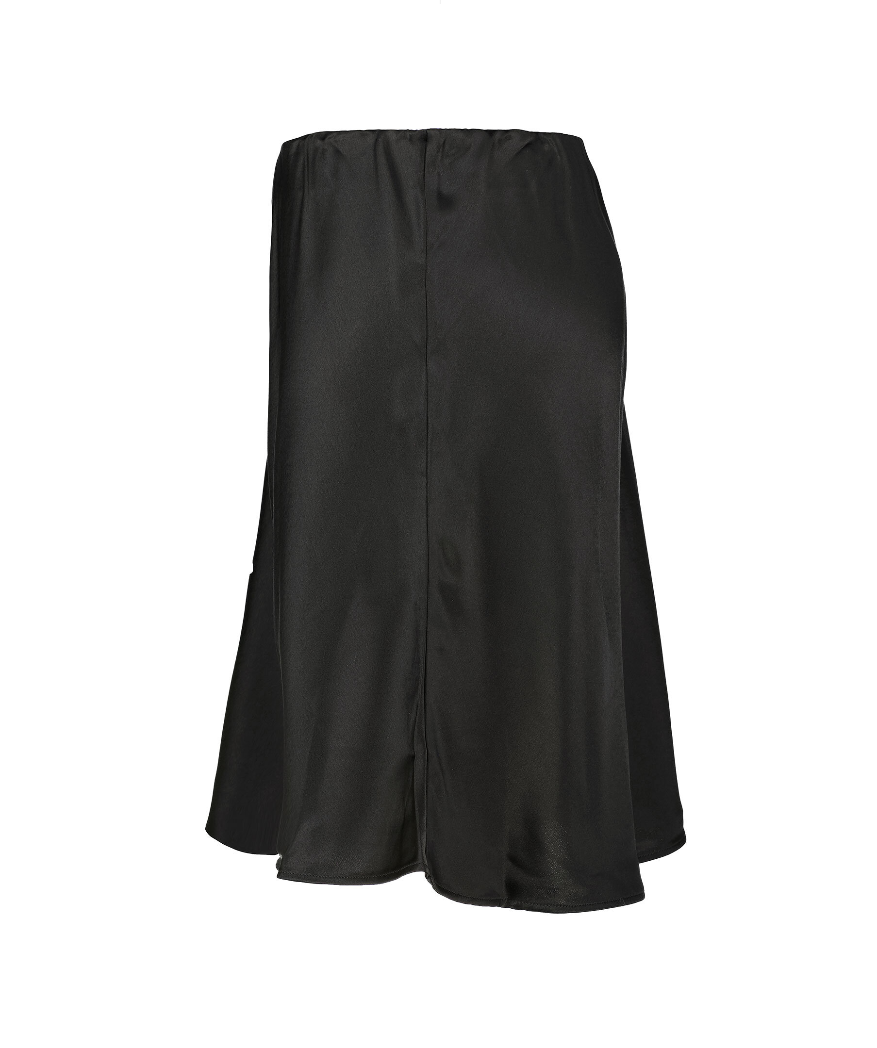 Svart kjol från By Malene Birger. Kjolen är knälång i satinliknande material. Elastisk midjeband. Tillverkad av en acetatblandning.
