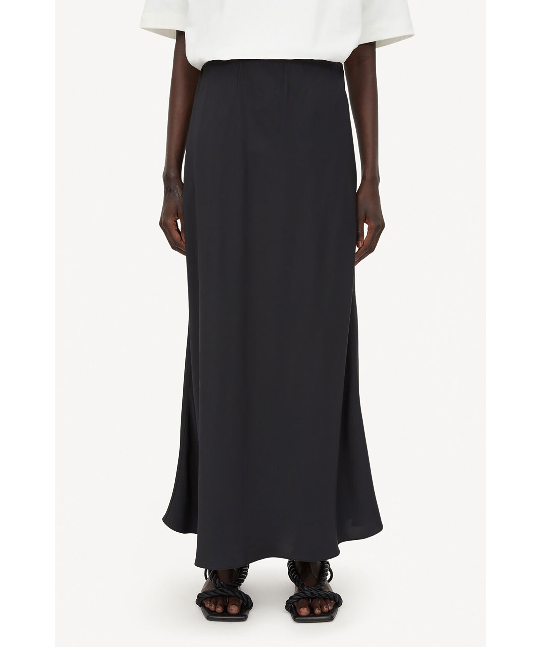 Svart Maxi kjol från By Malene Birger. Kjolen har en relaxed fit och Elastisk midja. Kjolen har ett elegant fall och slutar strax innan fotknölarna. Tillverkad i 100% acetate.