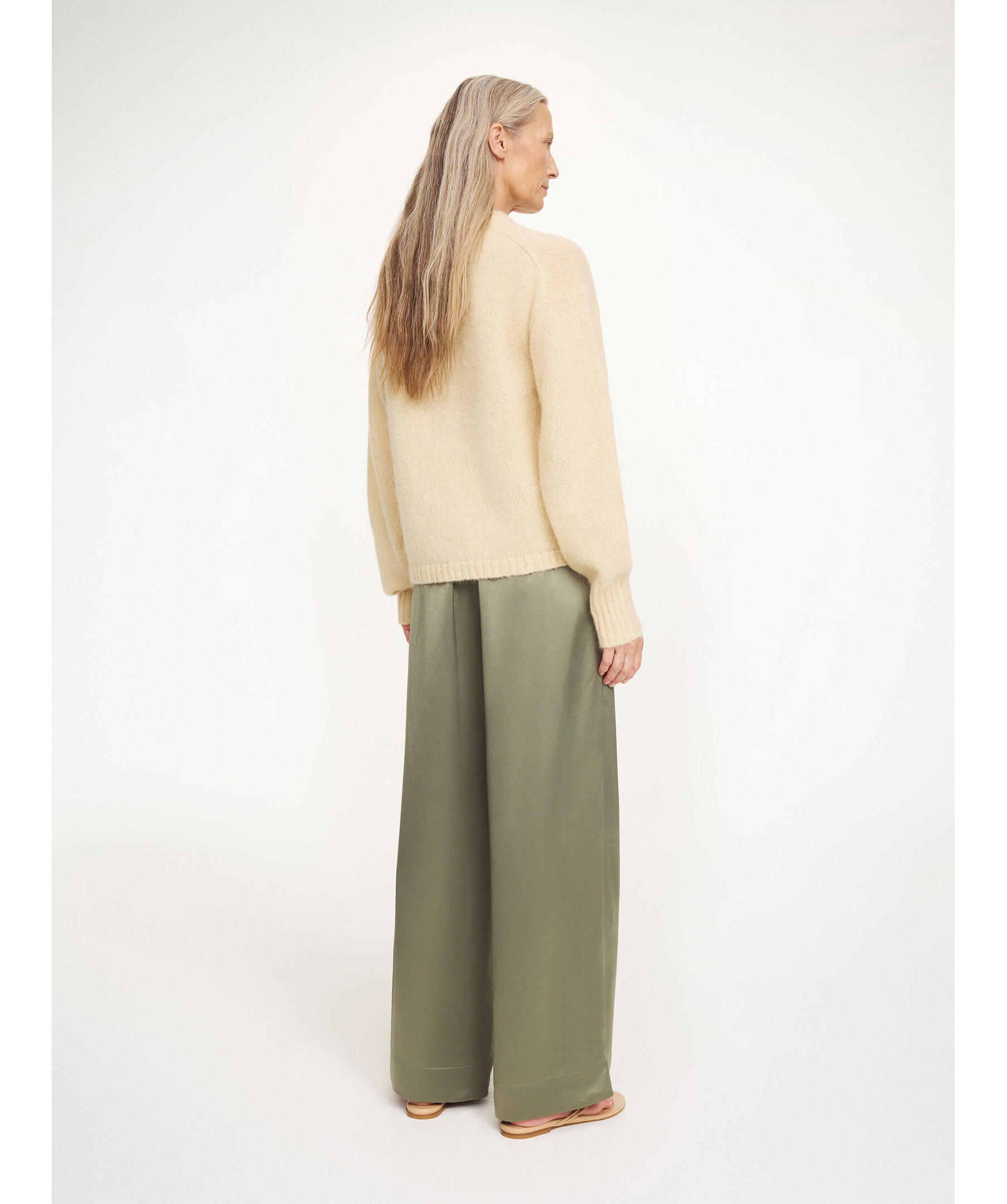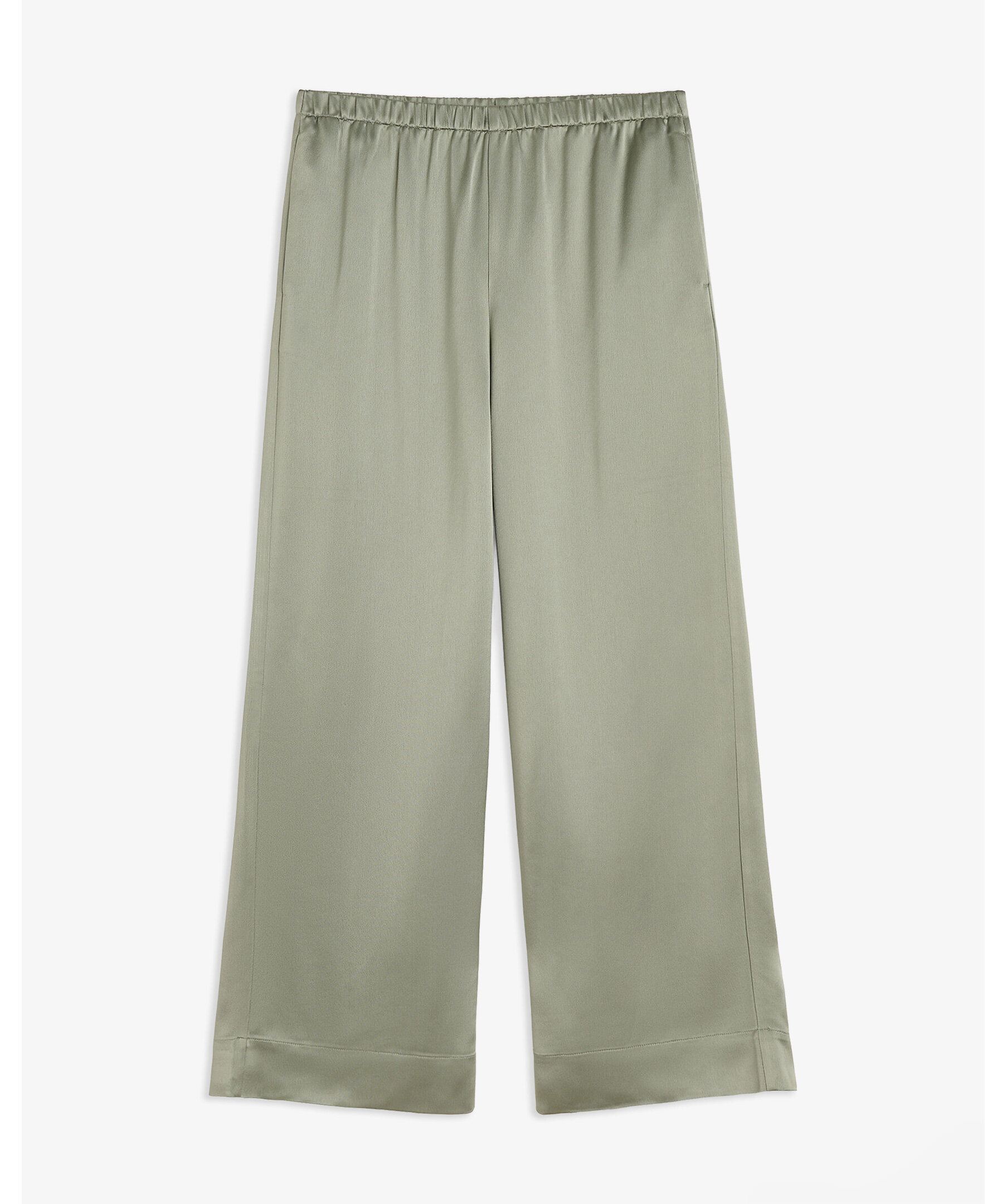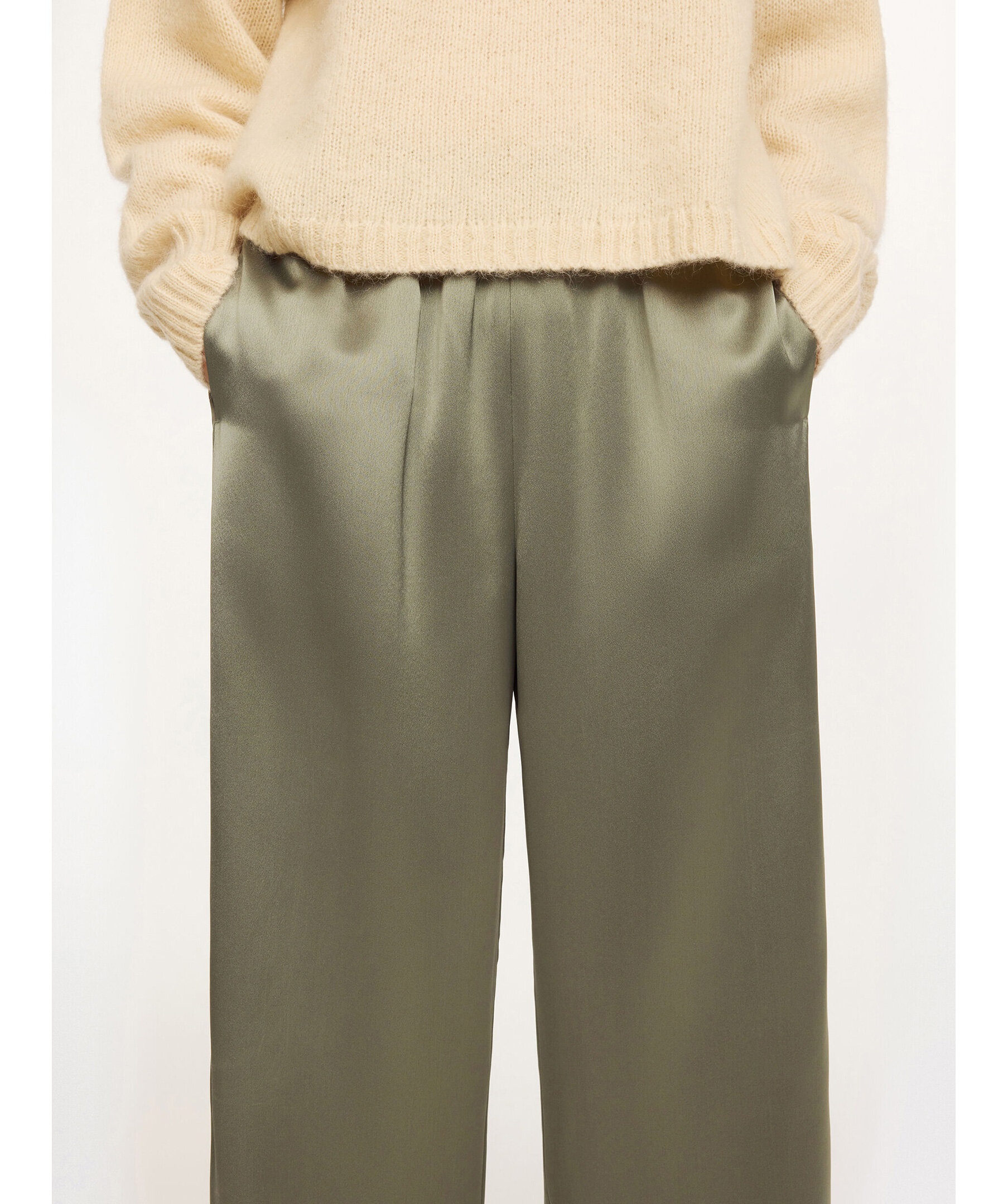 Gröna Cabello wide‑leg trousers från By Malene Birger. Byxorna har en vid benform med bekväm elastisk midja och sidofickor, designade i ett lätt flödande material som ger en avslappnad och modern silhuett – perfekt för både vardagsstil och smart casual‑looks.