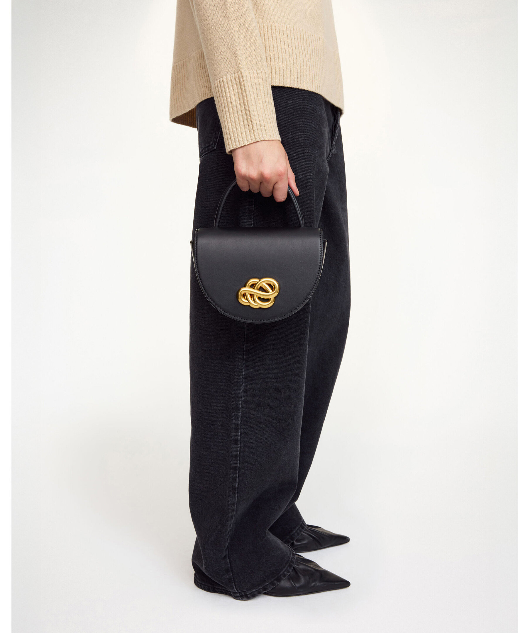 Svart läderväska Cebelli från By Malene Birger med magnetstängning, justerbar axelrem, topphandtag och ett innerfack — en elegant och kompakt väska för både vardag och kväll.