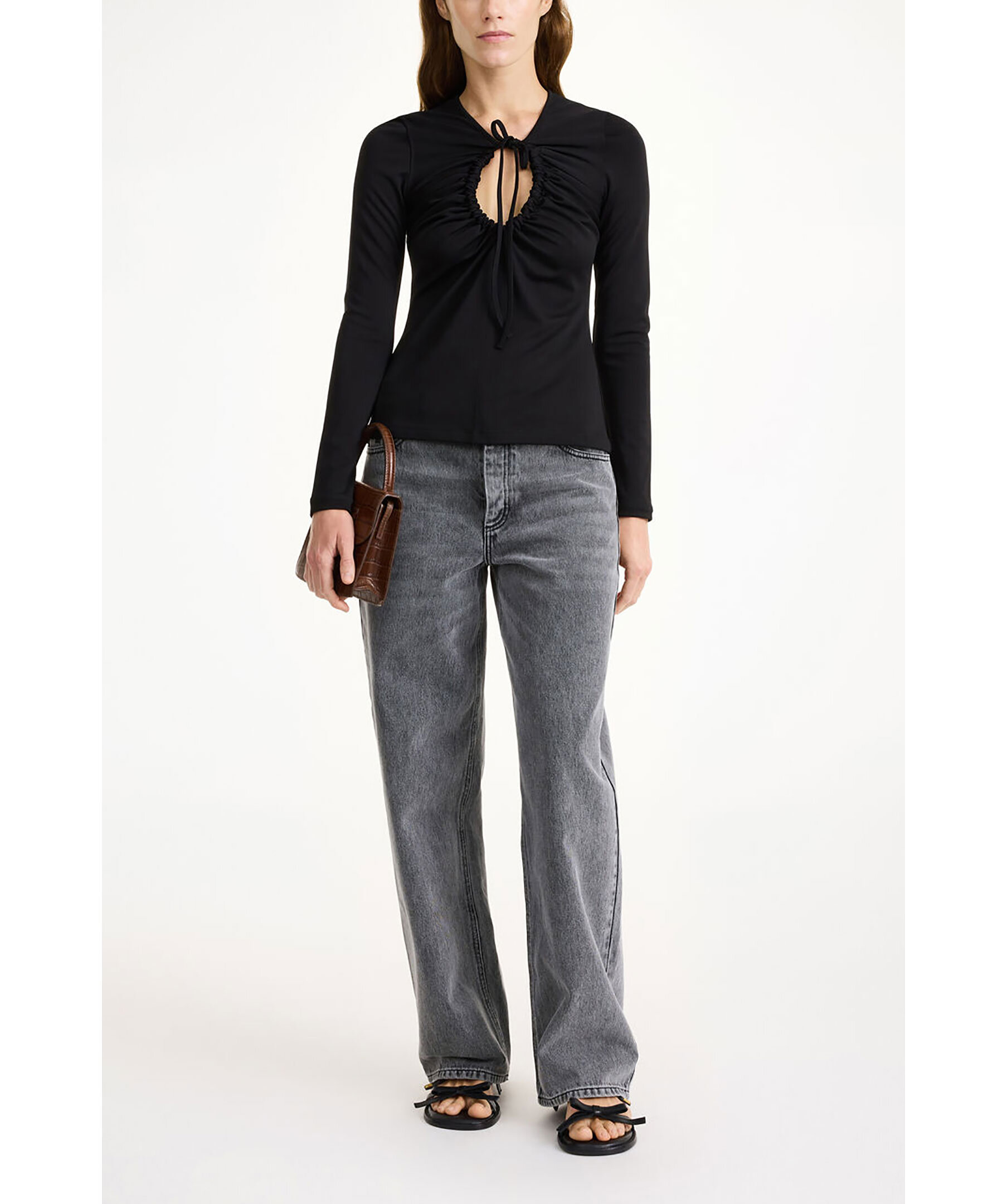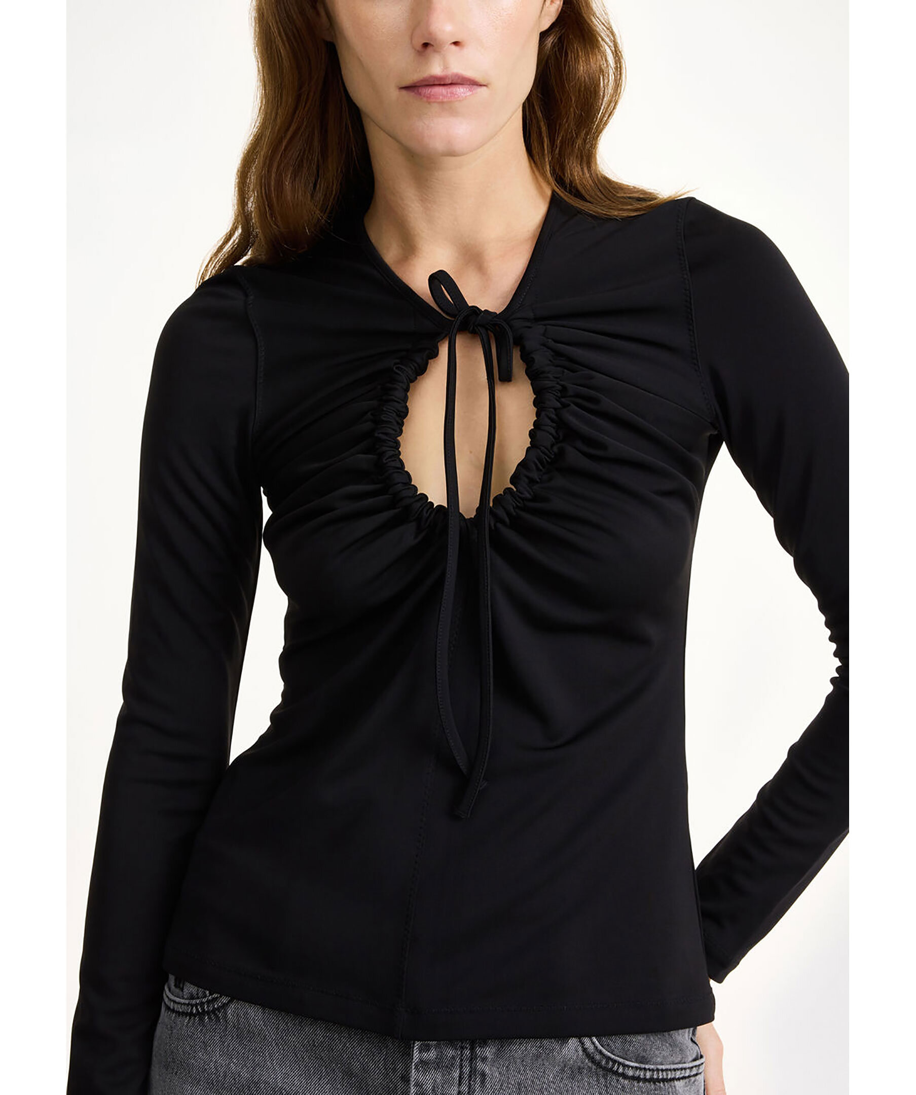 Svart topp från By Malene Birger. Toppen har justerbar nyckelhålsringning framtill och långa ärmar. Tillverkad i en viskosblandning.