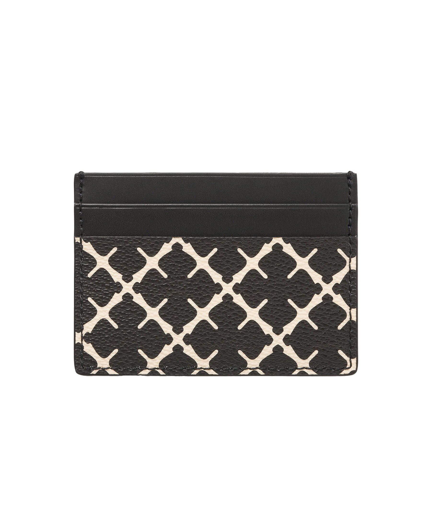 Svart och beige mönstrad korthållare från By Malene Birger. Tre fack för kort. Korthållaren mått: B 11 cm x H 7,5 cm.