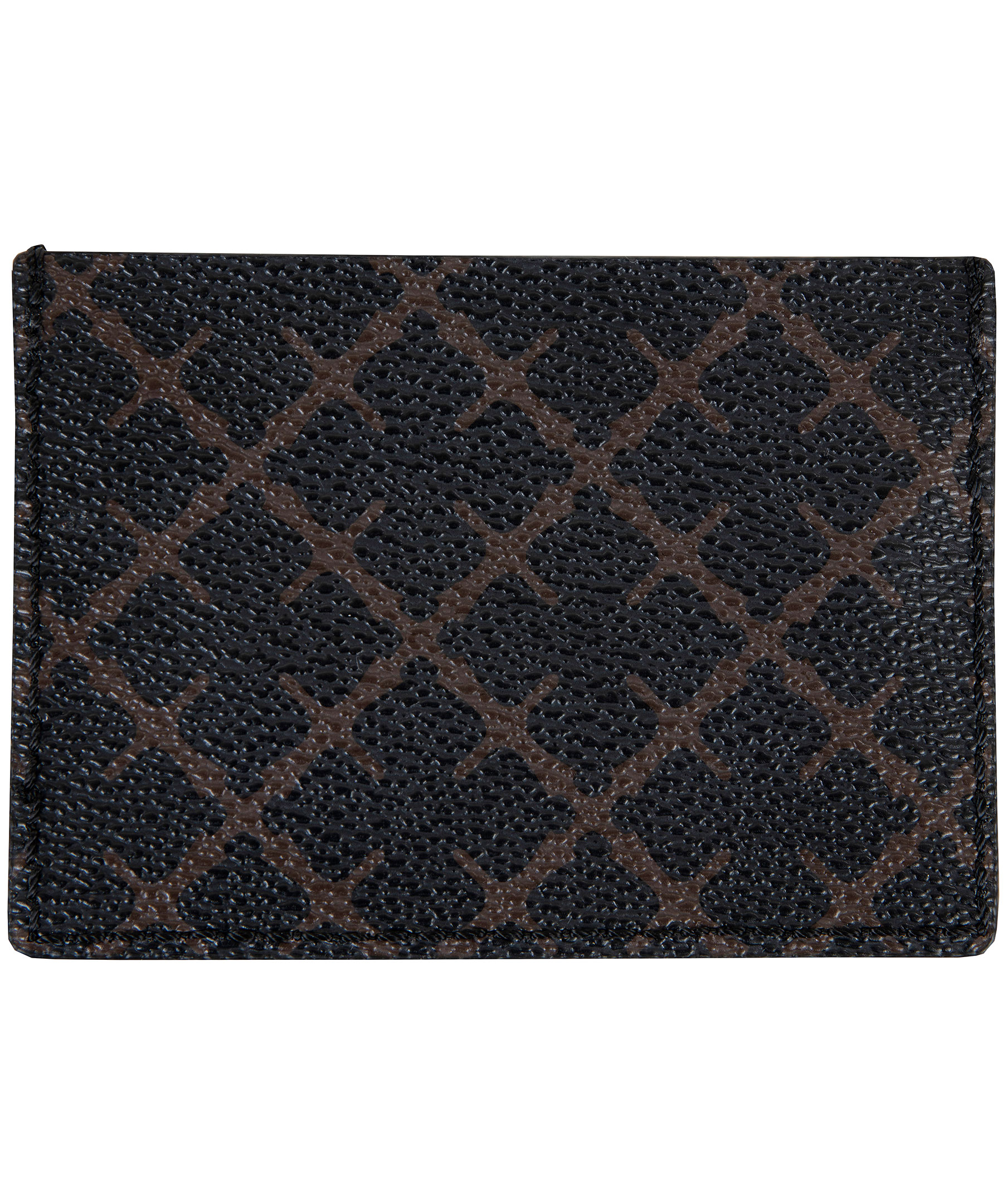Brun/svart mönstrade korthållare från By Malene Birger. Tillverkad i PVC. Två platser för kontokort samt mittenfack