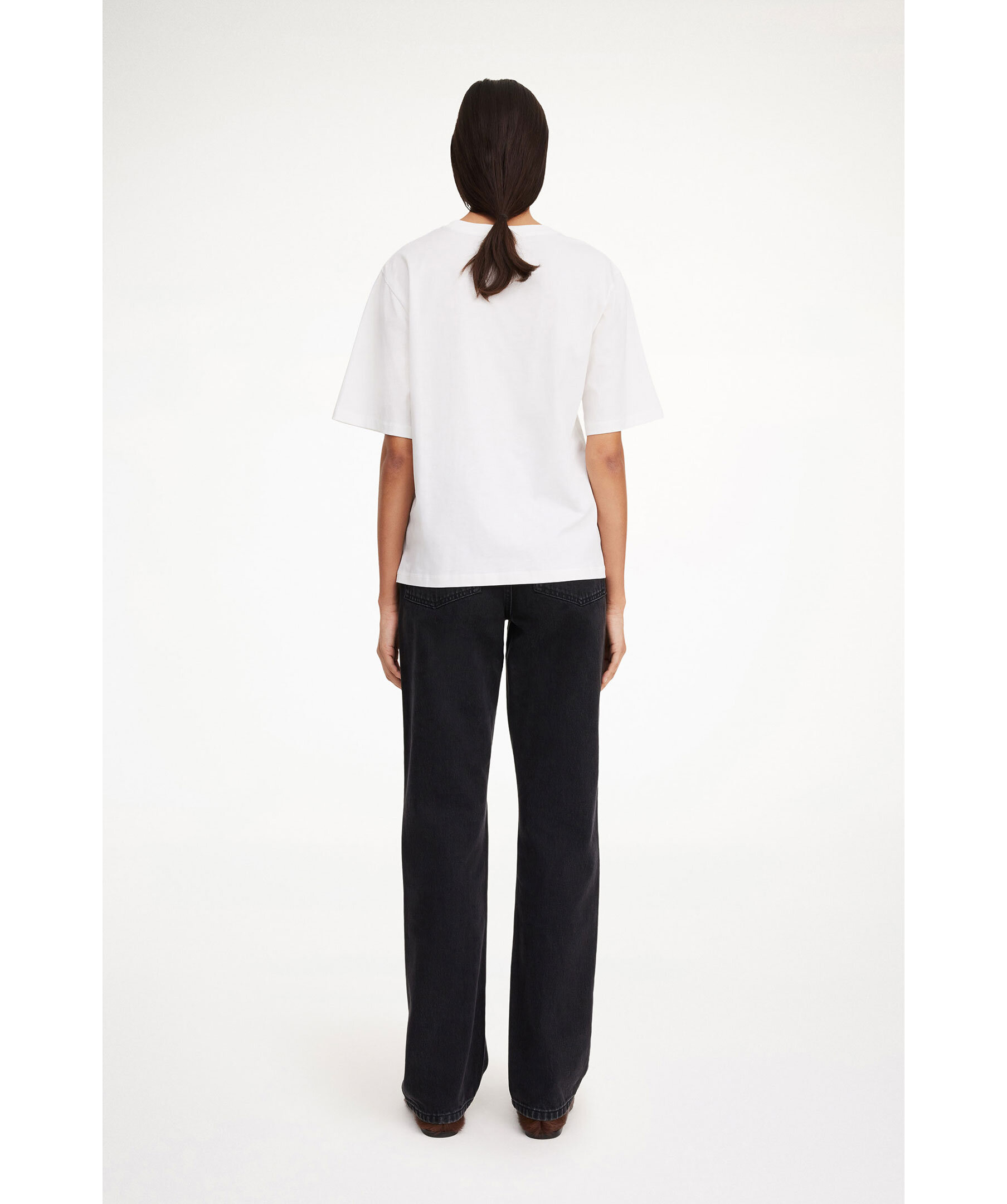 Vit t-shirt från By Malene Birger med minimalistisk design. T-shirten har en löst sittande passform med en rund halsringning, perfekt för lager på lager. Den har en diskret, ton-i-ton broderad logotyp på ena ärmen. Tillverkad i 100% ekologisk bomull.