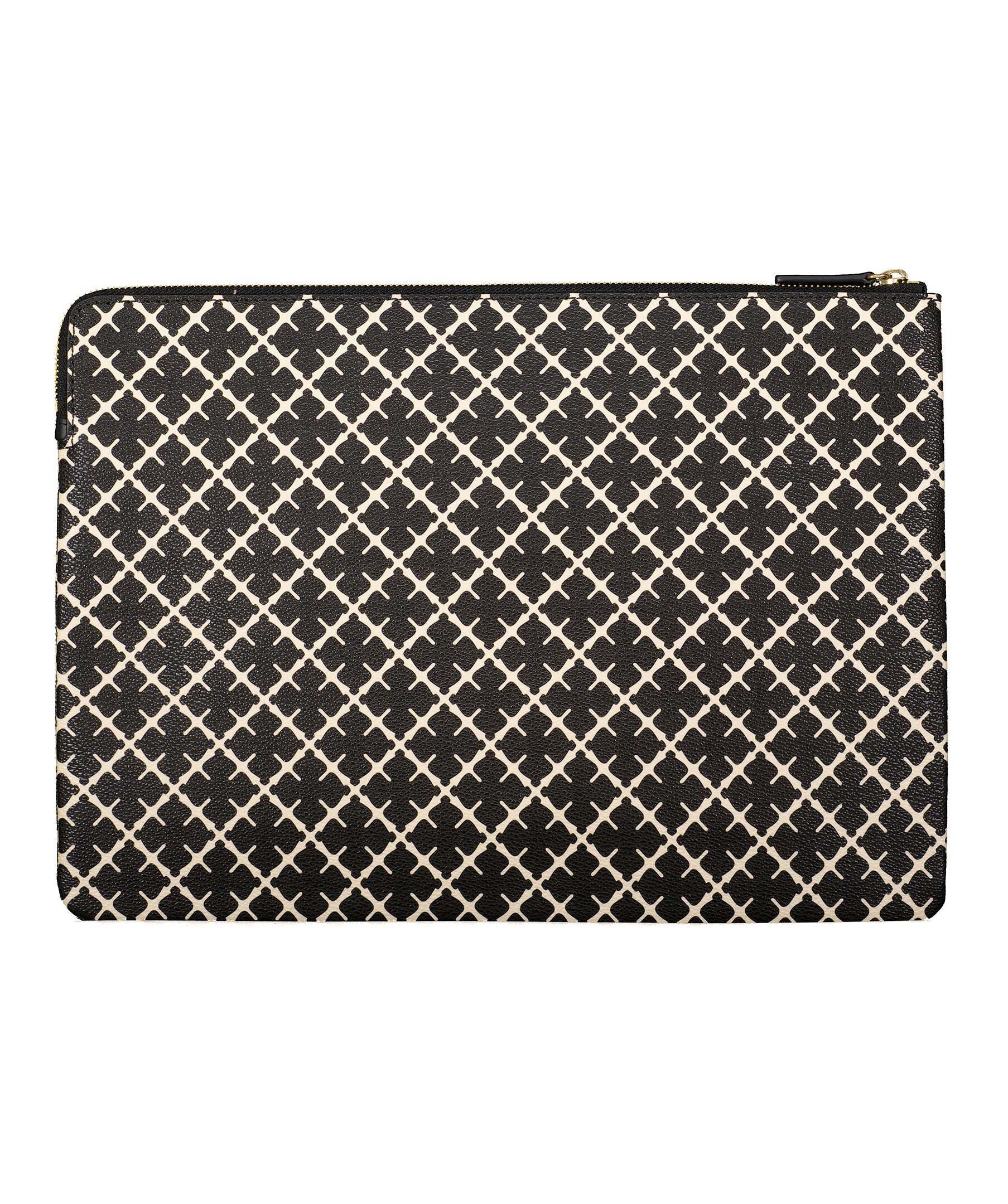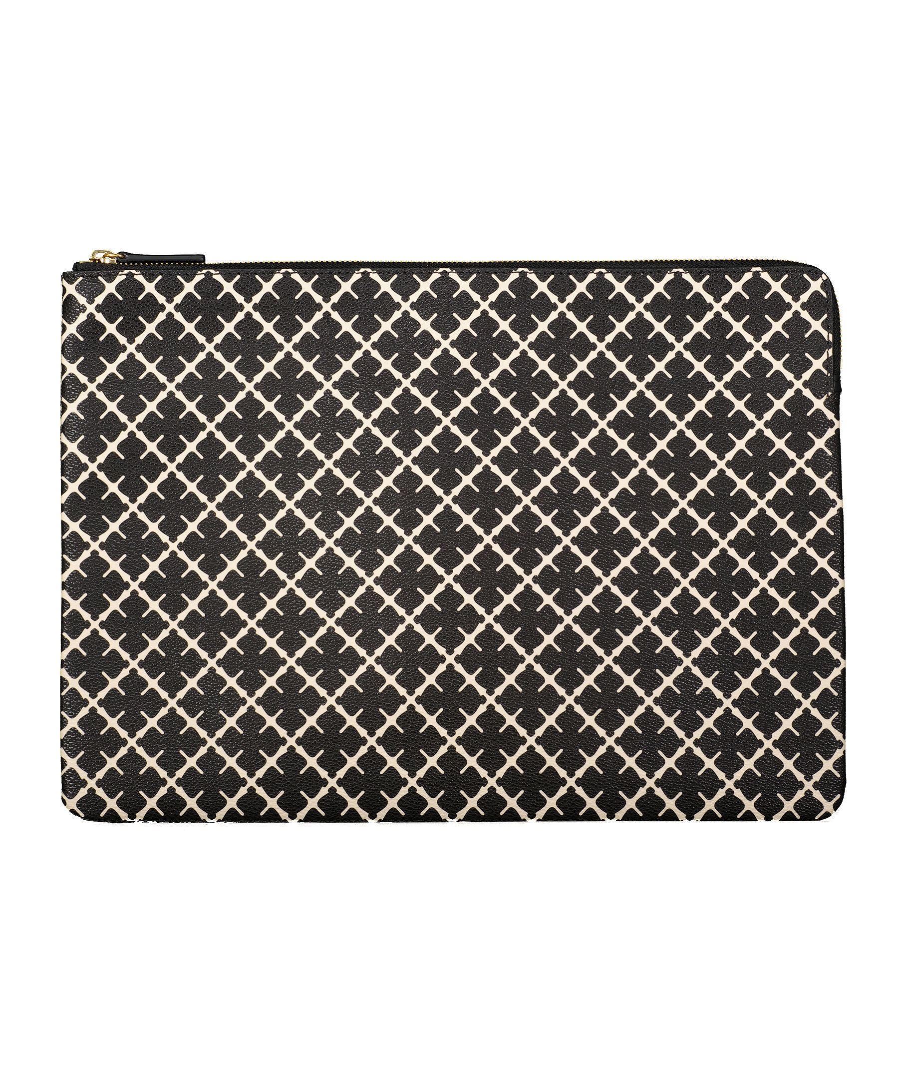 Svart och vit mönstrat datorfodral från By Malene Birger. Stängs med guldfärgad dragkedja. Insidan är klädd i bomullstyg. Fodralets mått: B 36 cm x H 26 cm.