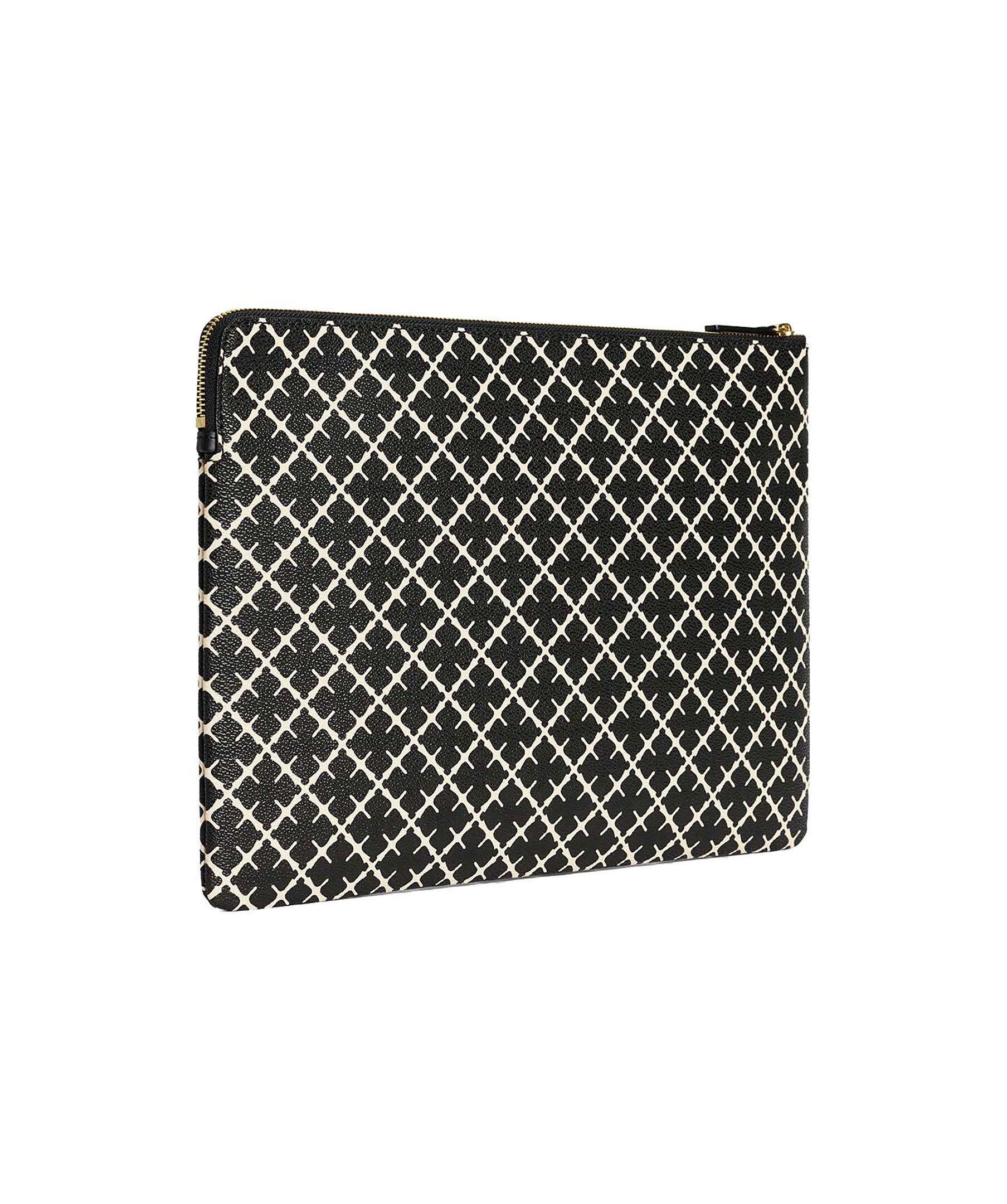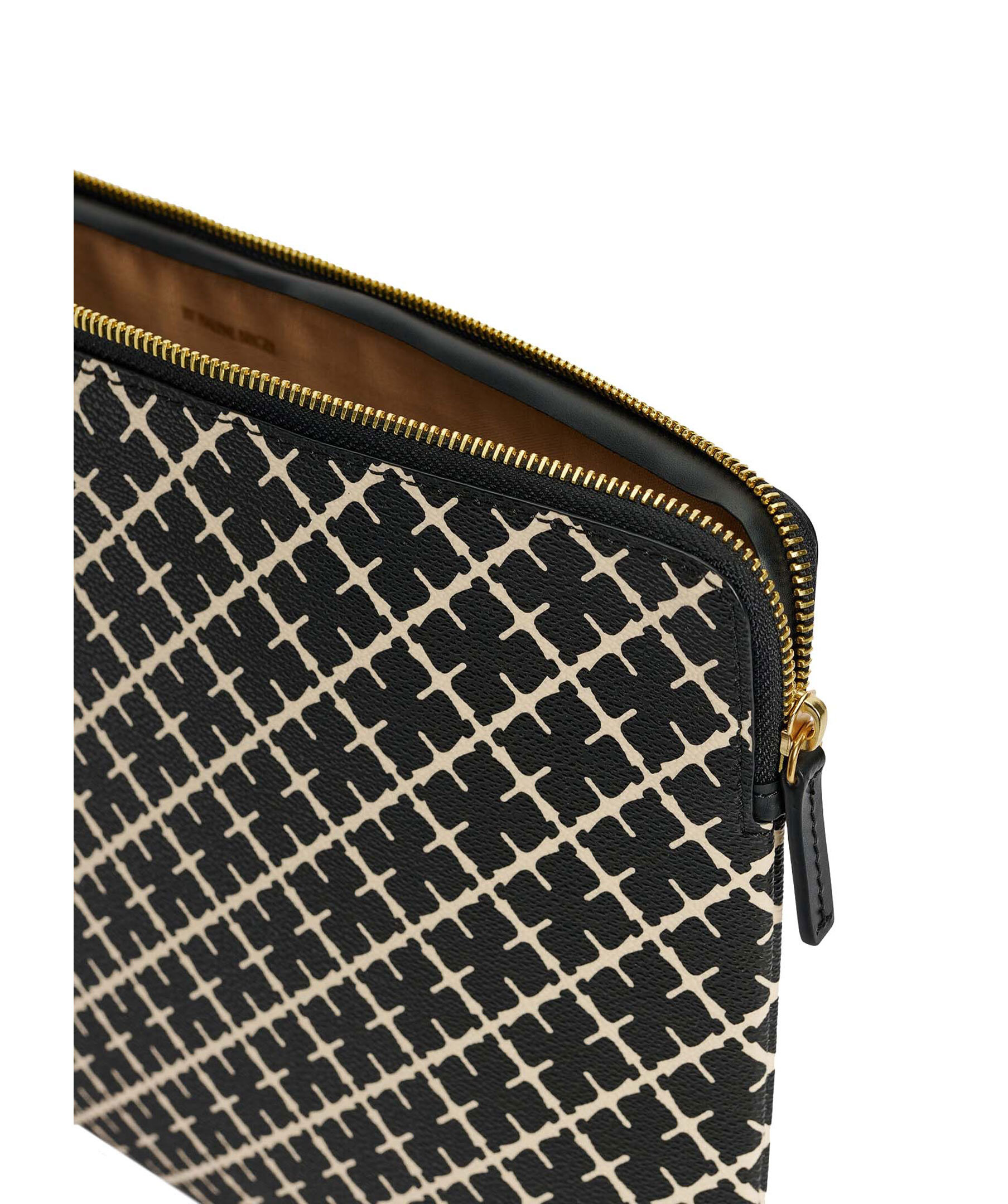 Svart laptopväska med vitt mönster från By Malene Birger i deras klassiska blommönster. Väskan stängs med blixtlås och har ett stort fack för dator, samt ett mindre fack för sådant som pennor och papper.