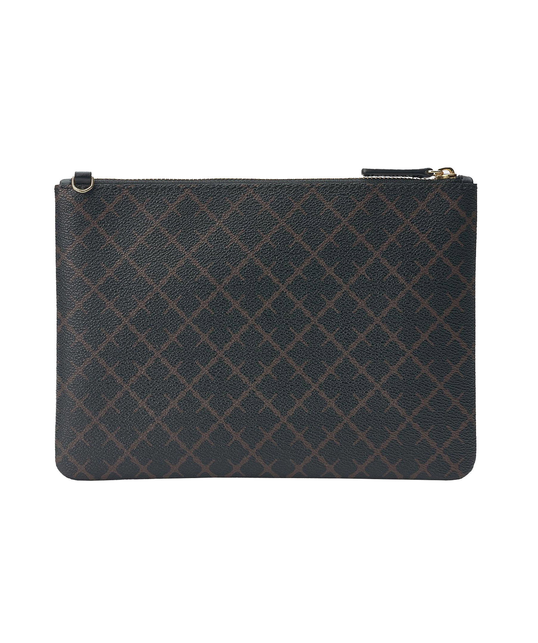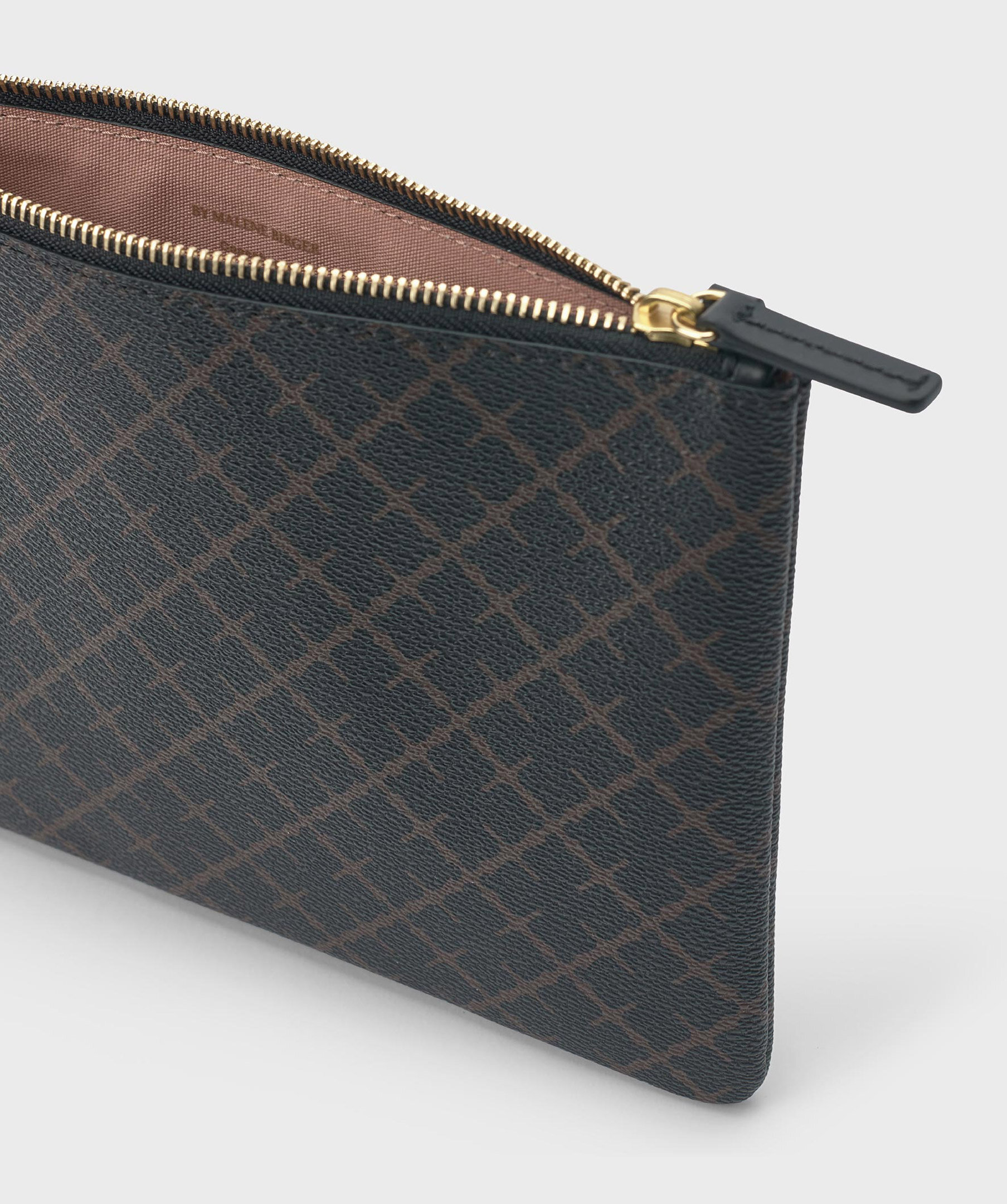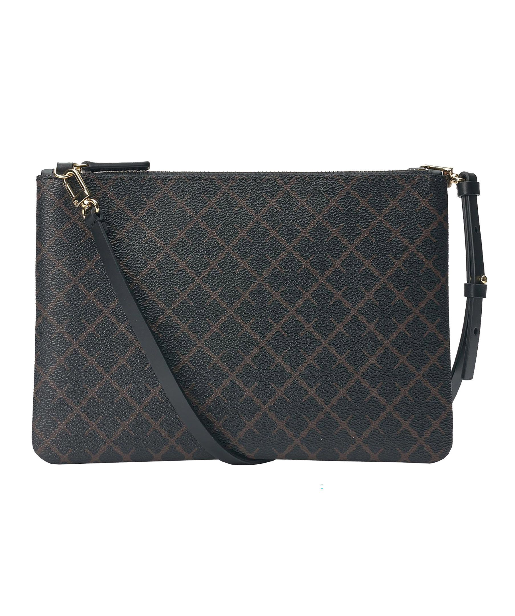 Liten, svart och brun mönstrad väska från by Malene Birger. Tillverkad av av slitstarkt material tryckt med by Malene Birgers Signatur blom-motiv, stämplad med logotyp och kantad med läder. Den har en justerbar, avtagbar rem för att säkerställa perfekt passform. Mått: 25,5 x 18 cm.