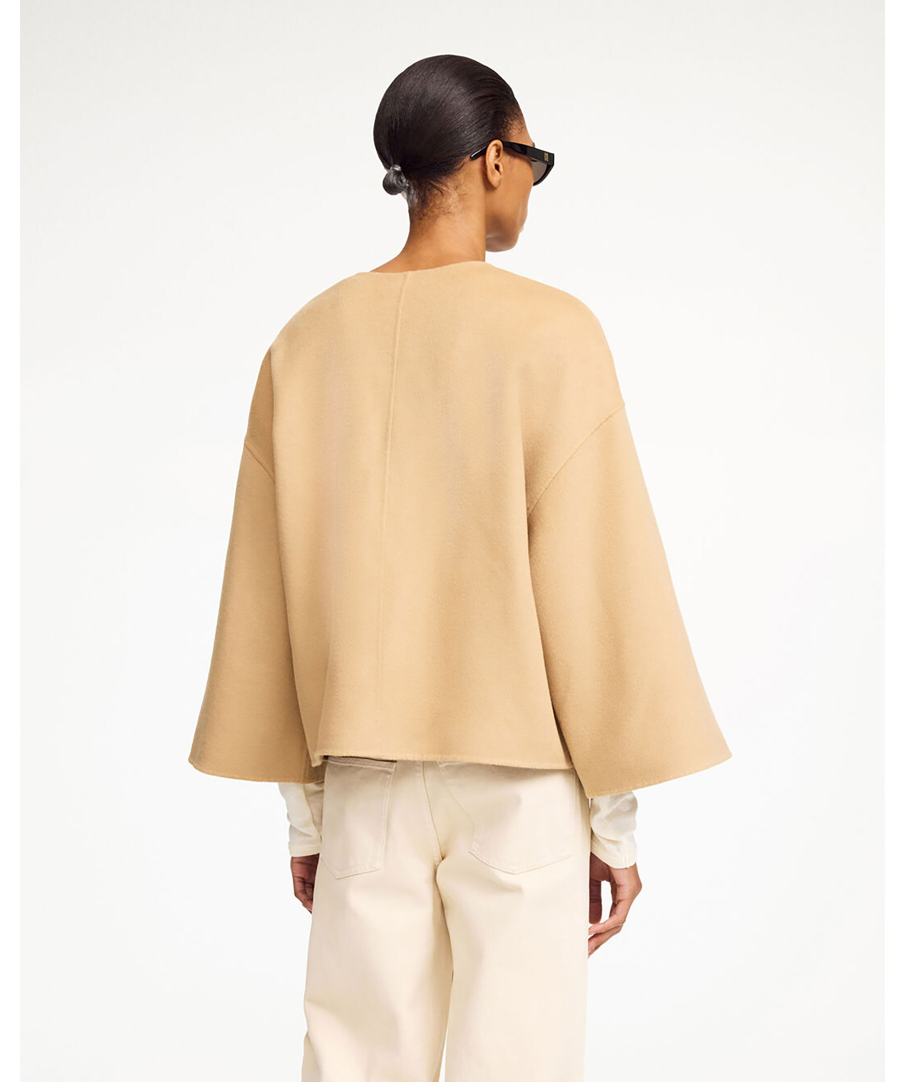 Beige ulljacka från By Malene Birger. Jackan är ofodrad och har två stora, påsydda framfickor samt nedsänkta axlar och vida ärmar. Tillverkad i 100% ull.