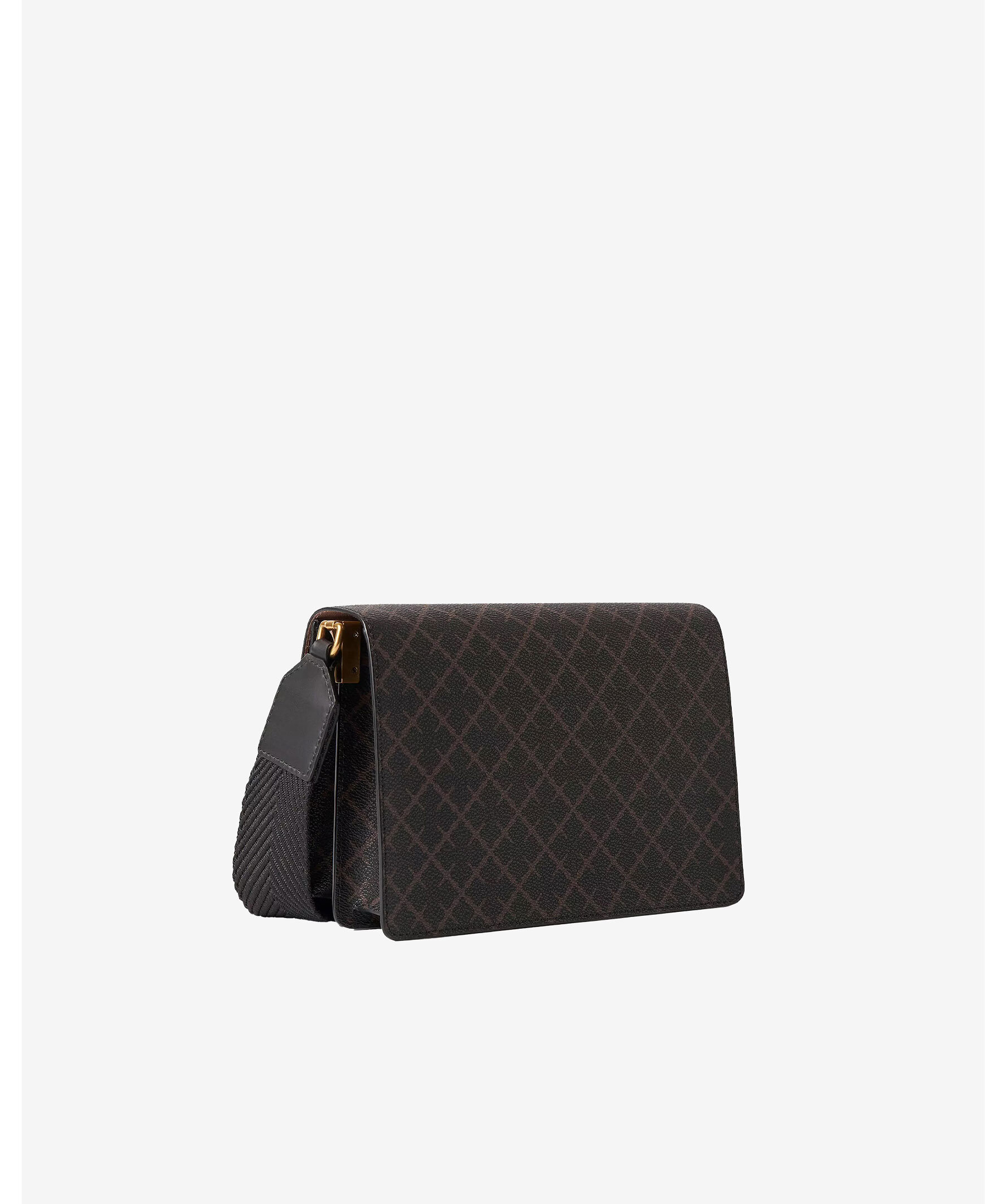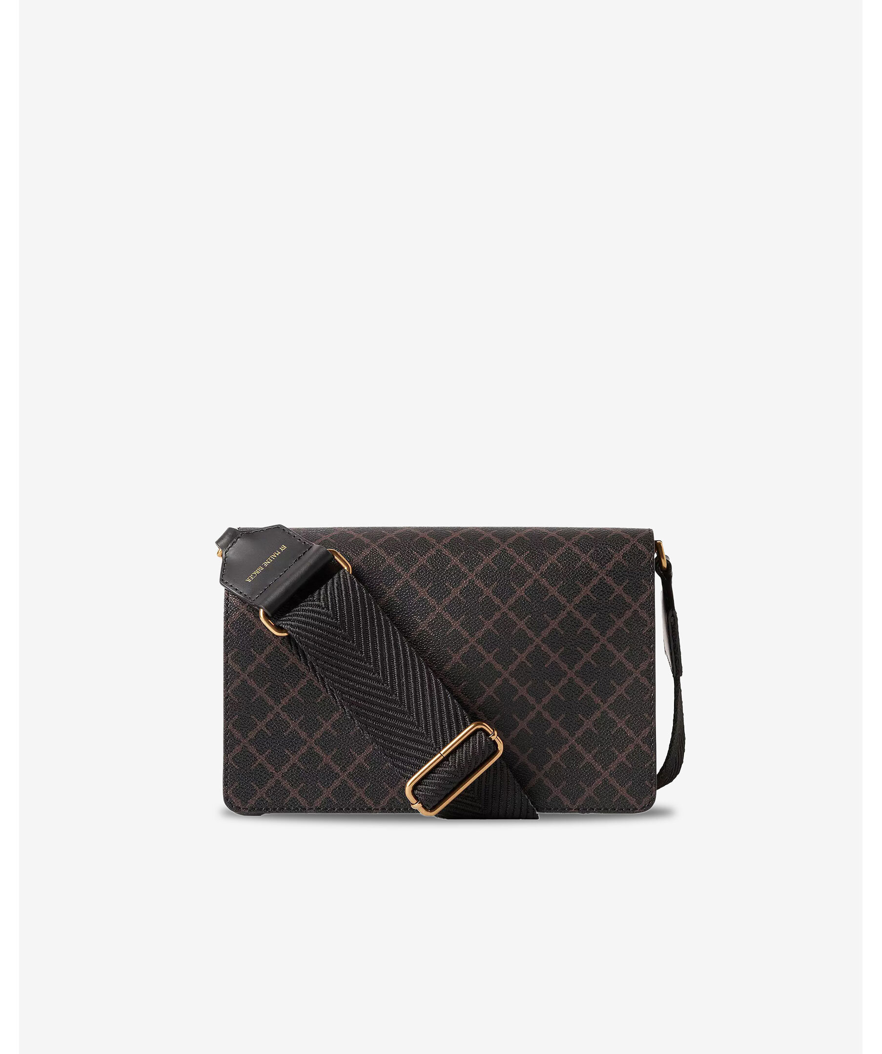 Svart och brun mönstrad väska från By Malene Birger. Locket stängs med magnetlås. Justerbar axelrem med detaljer i läder. Guldfärgade detaljer i metall. Väskan har två fack. Väskans mått: L 24cm x H 17 cm x 8.5 cm. Axelremmen är 109 cm lång.