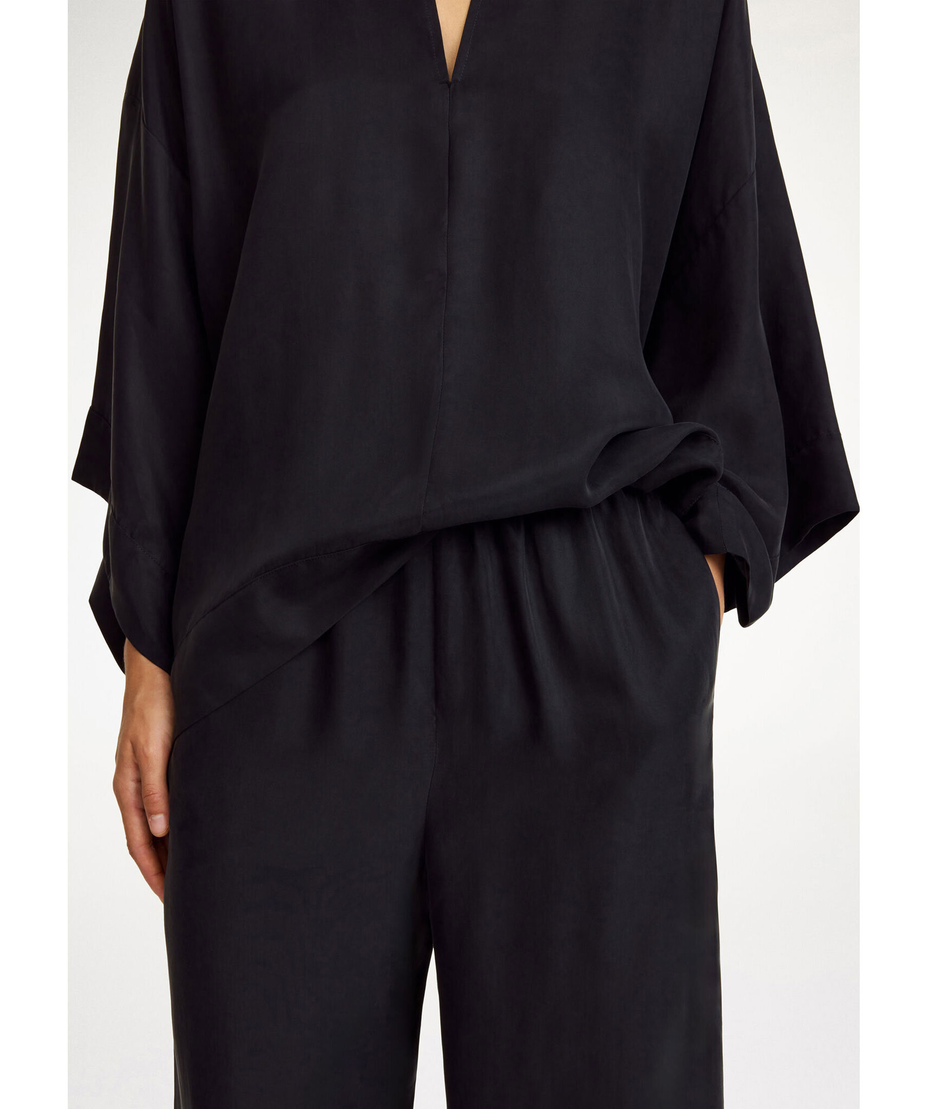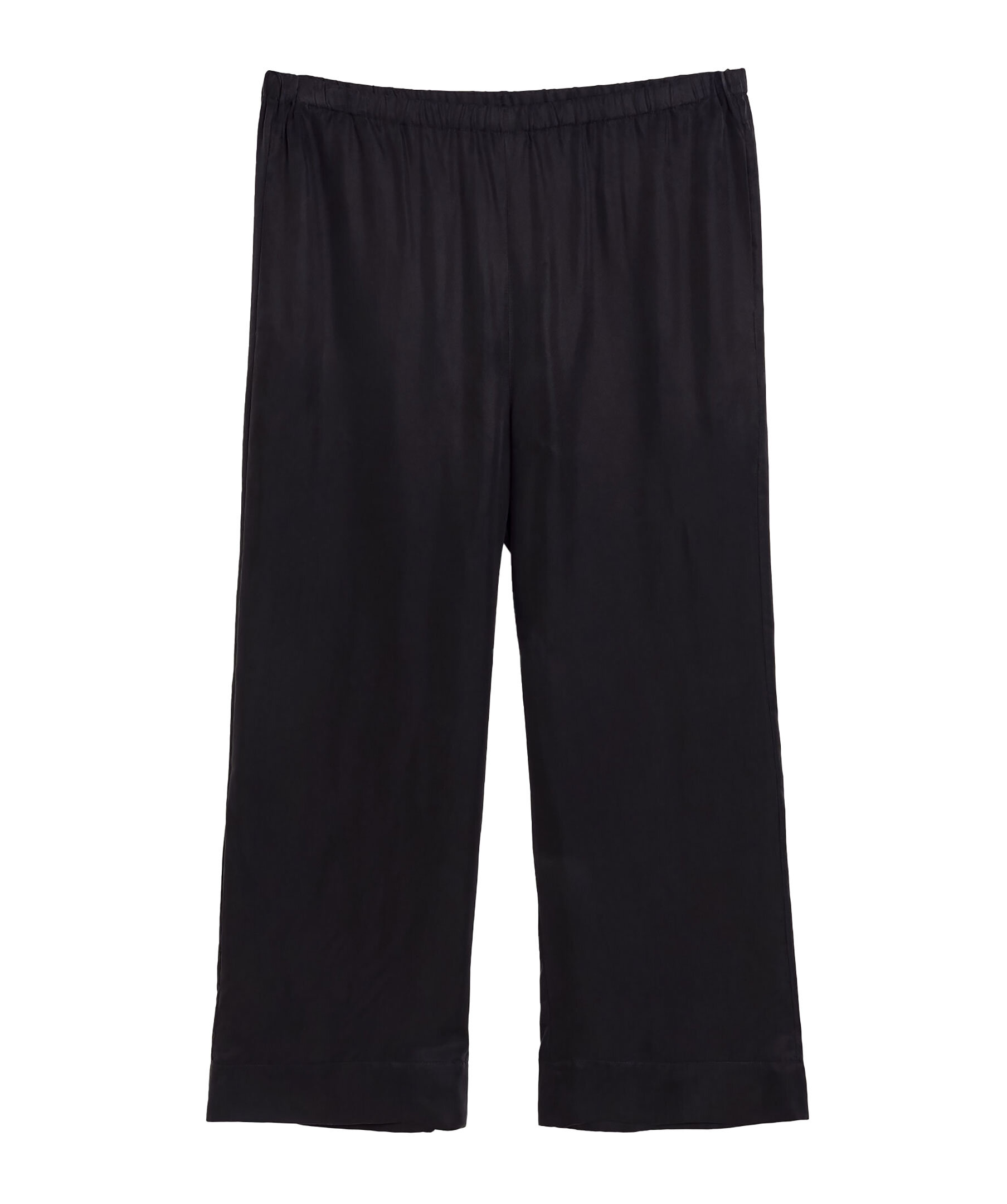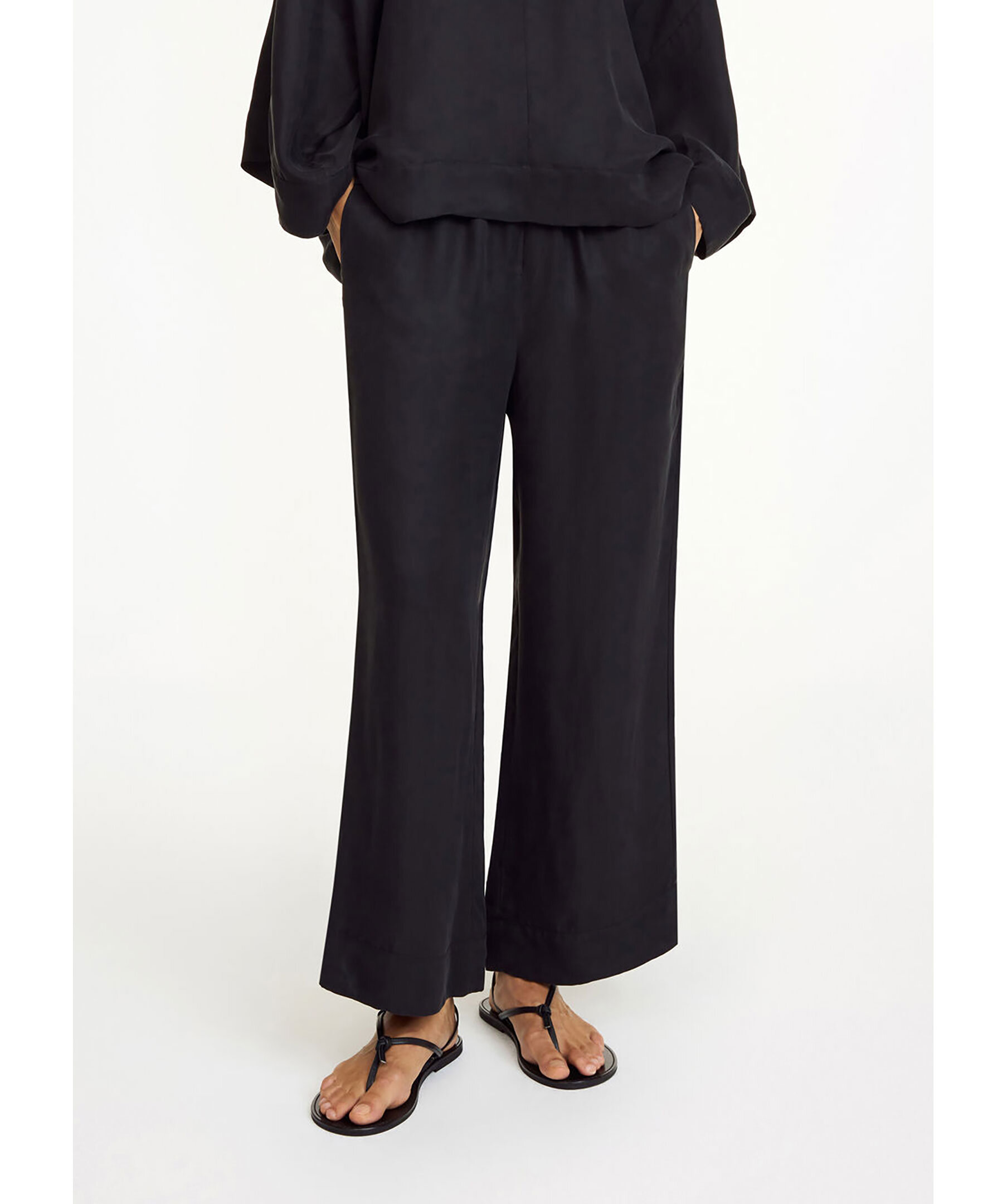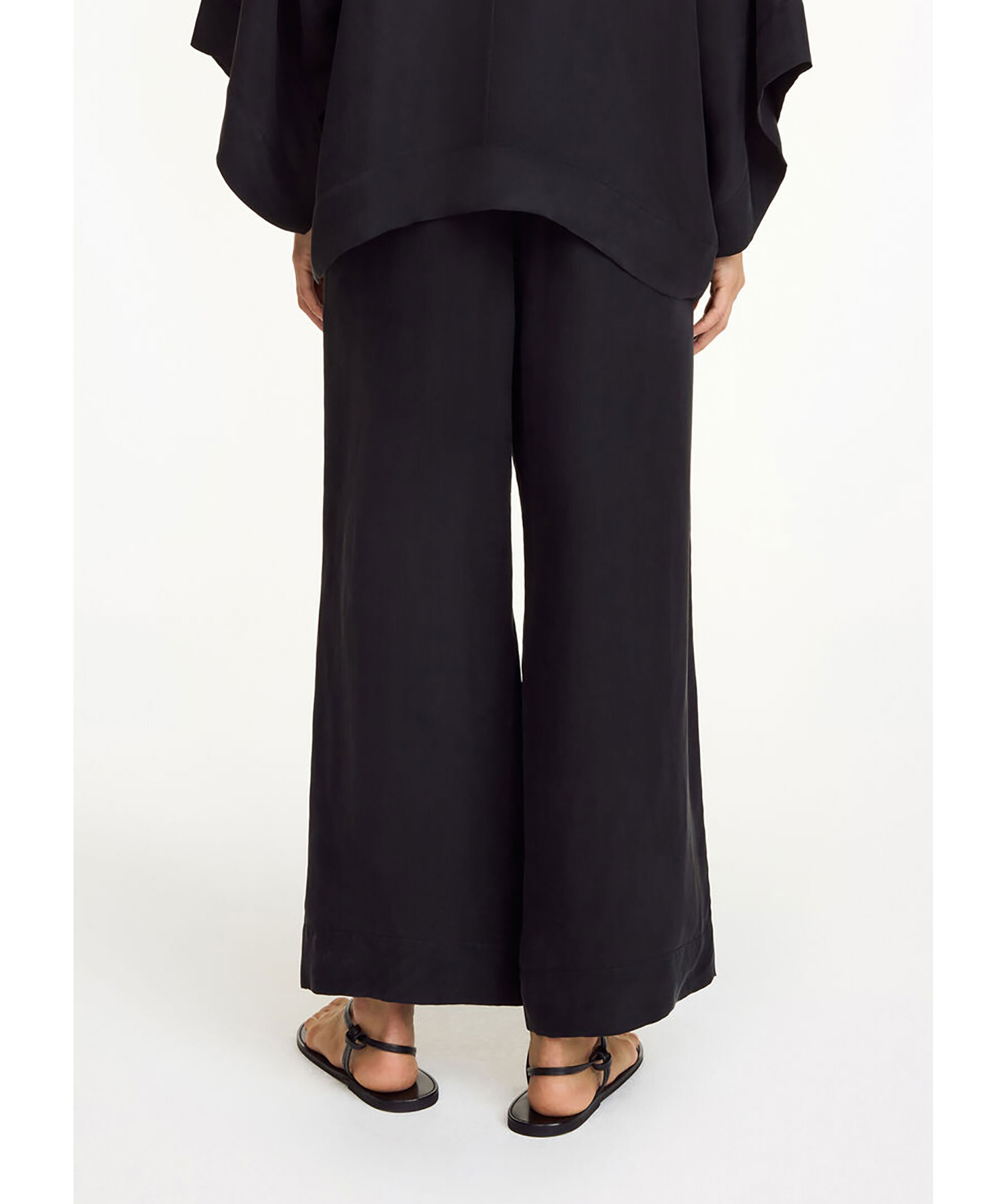 Svarta, eleganta och luftiga byxor från By Malene Birger som utstrålar bohemisk glamour. Byxorna har en elastisk midja, sidfickor och breda ben. Tillverkade i en cuproblandning.