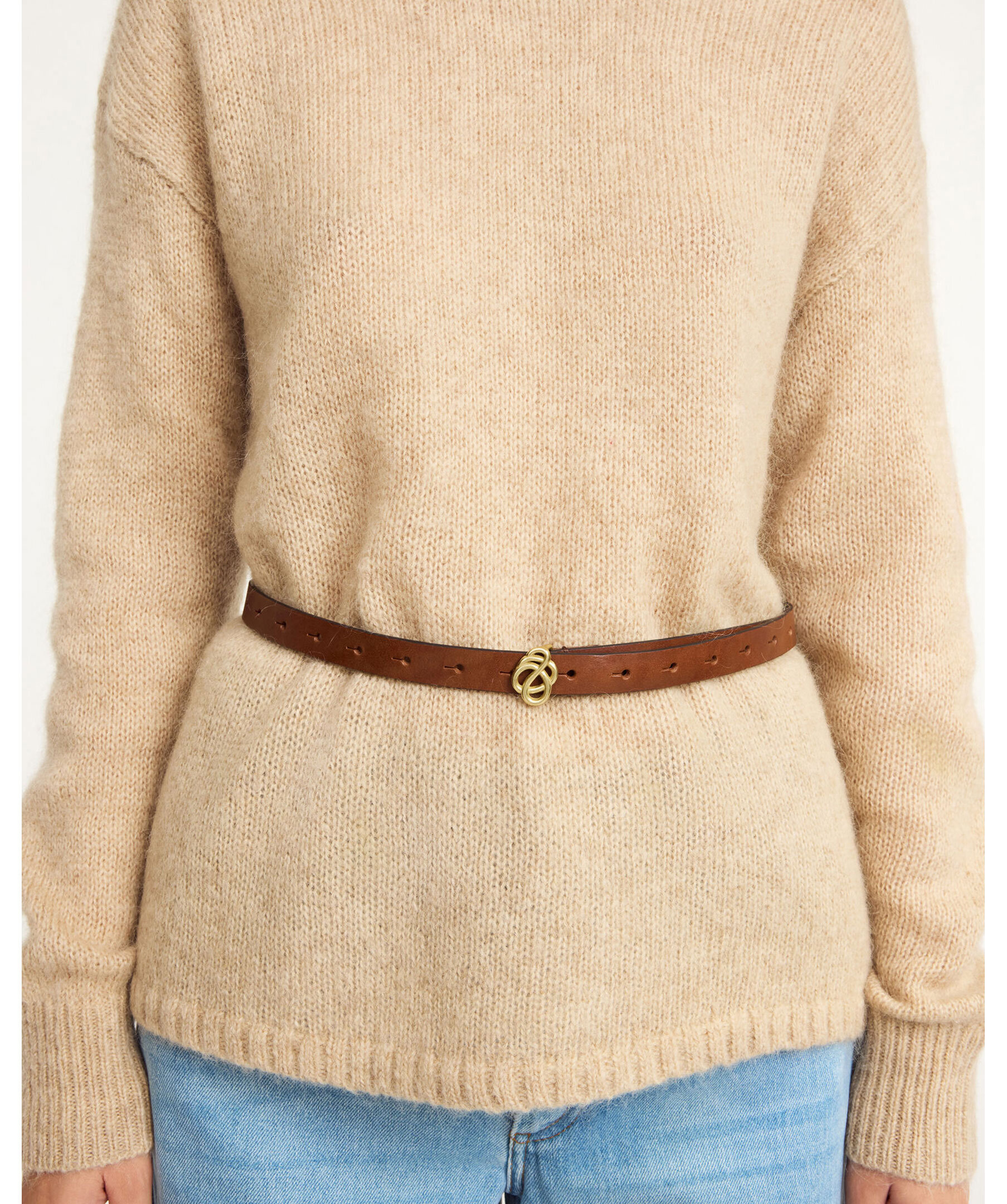 Brunt läderbälte med guldfärgat spänne från By Malene Birger. Mått: B 1,8 cm x L 110 cm