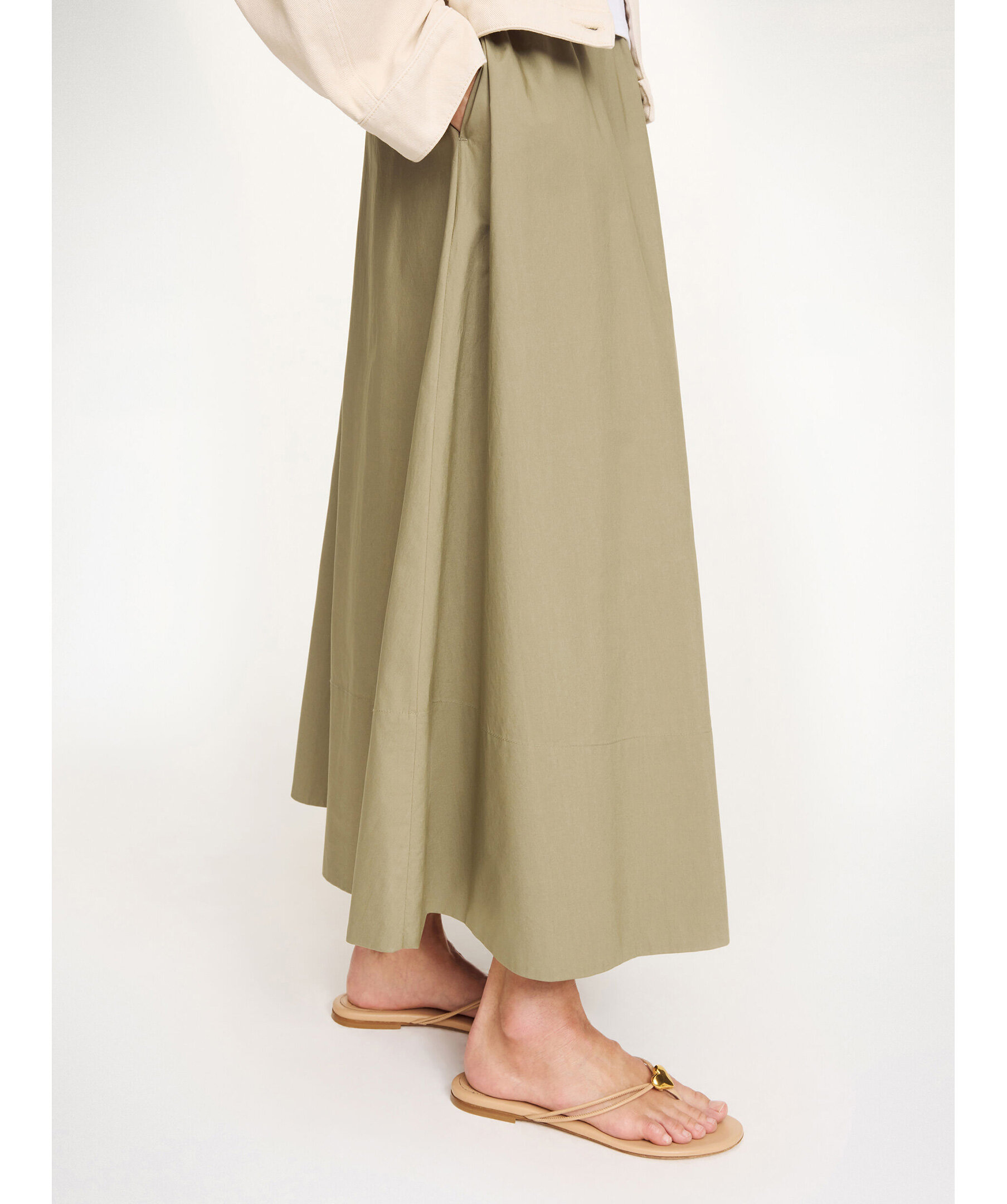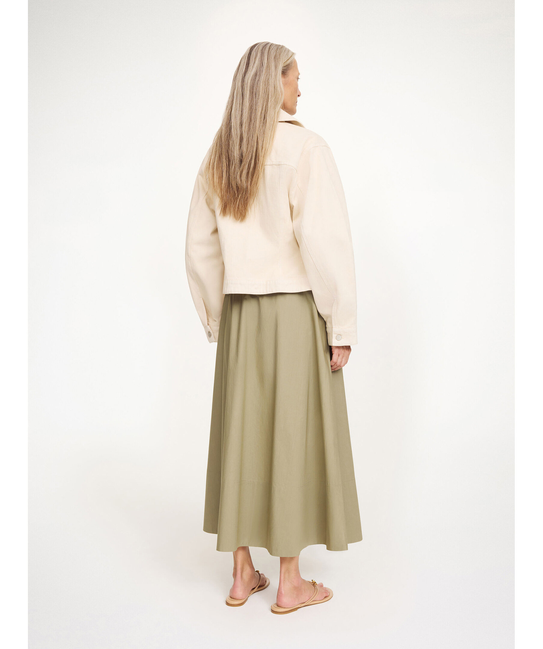 Lång Pheobes Organic Cotton Skirt från By Malene Birger. Kjolen har en hög elastisk midja och en luftig A‑linje‑silhuett med ett mjukt fall som ger en ledig och elegant look perfekt för vårens och sommarens outfits. Tillverkad i 100 % ekologisk bomull som är lätt och bekväm – bär den med en enkel topp eller skjorta för en avslappnad men stilfull känsla.
