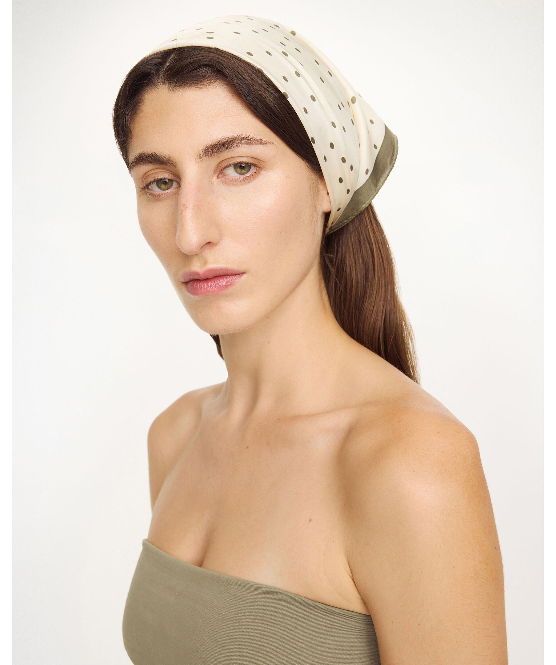 Elegant Poula Silk Scarf från By Malene Birger i 100 % lyxig siden med lekfulla polkadots och kontrastkant. Den kvadratiska scarfen (55 × 55 cm) kan stylas runt halsen, handleden eller på väskan för att ge outfiten en grafisk och chic detalj.
