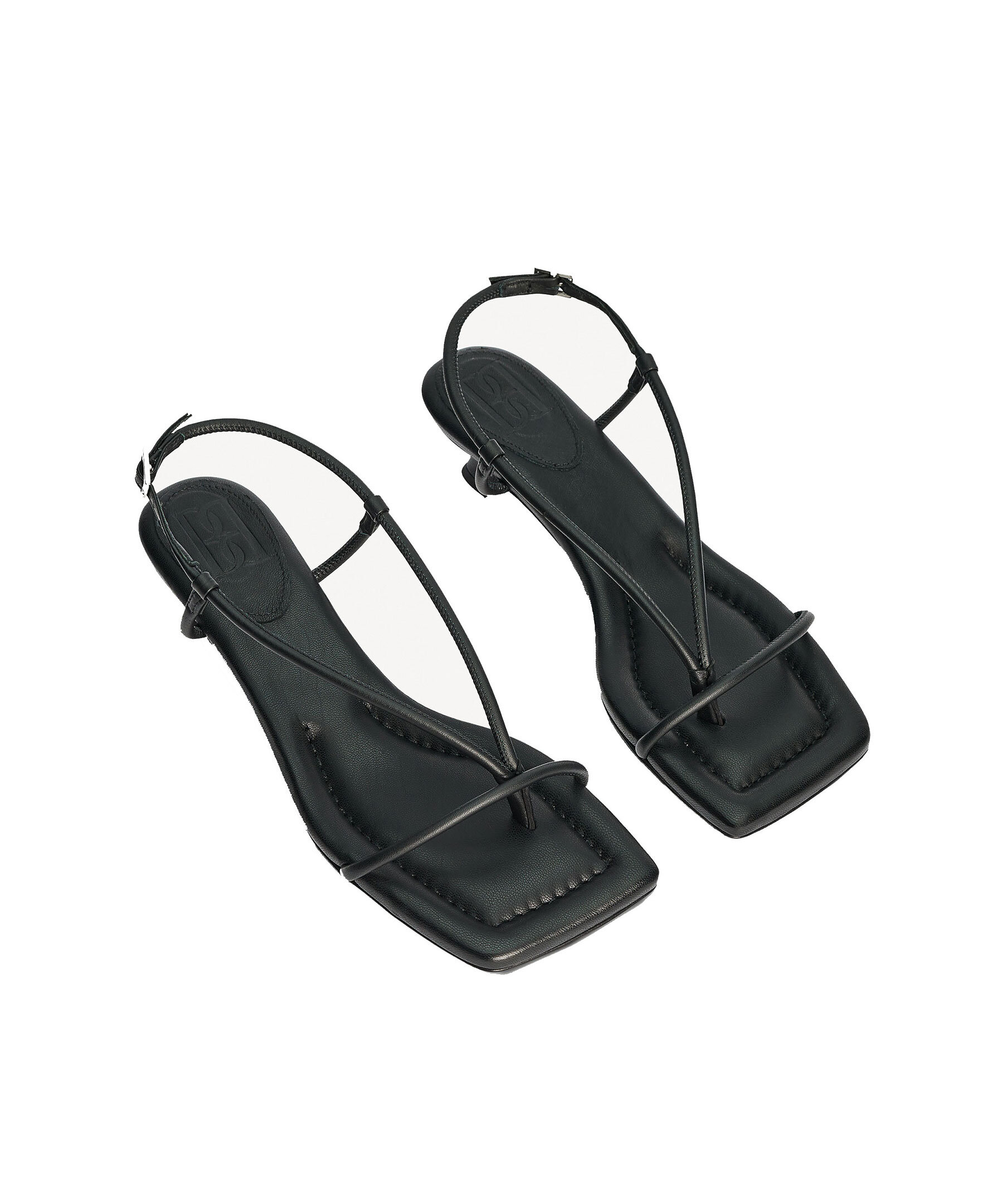 Svarta slingback-sandaler från By Malene Birger. Klack på 45 mm och är tillverkade av svart kalvskinn. Öppen, fyrkantig tå med multifunktionella remmar och en logotyppräglad sula. Slingback-rem med spänne och en kubansk klack som ger en elegant touch. Perfekta för att lägga till en sofistikerad detalj till vilken outfit som helst.