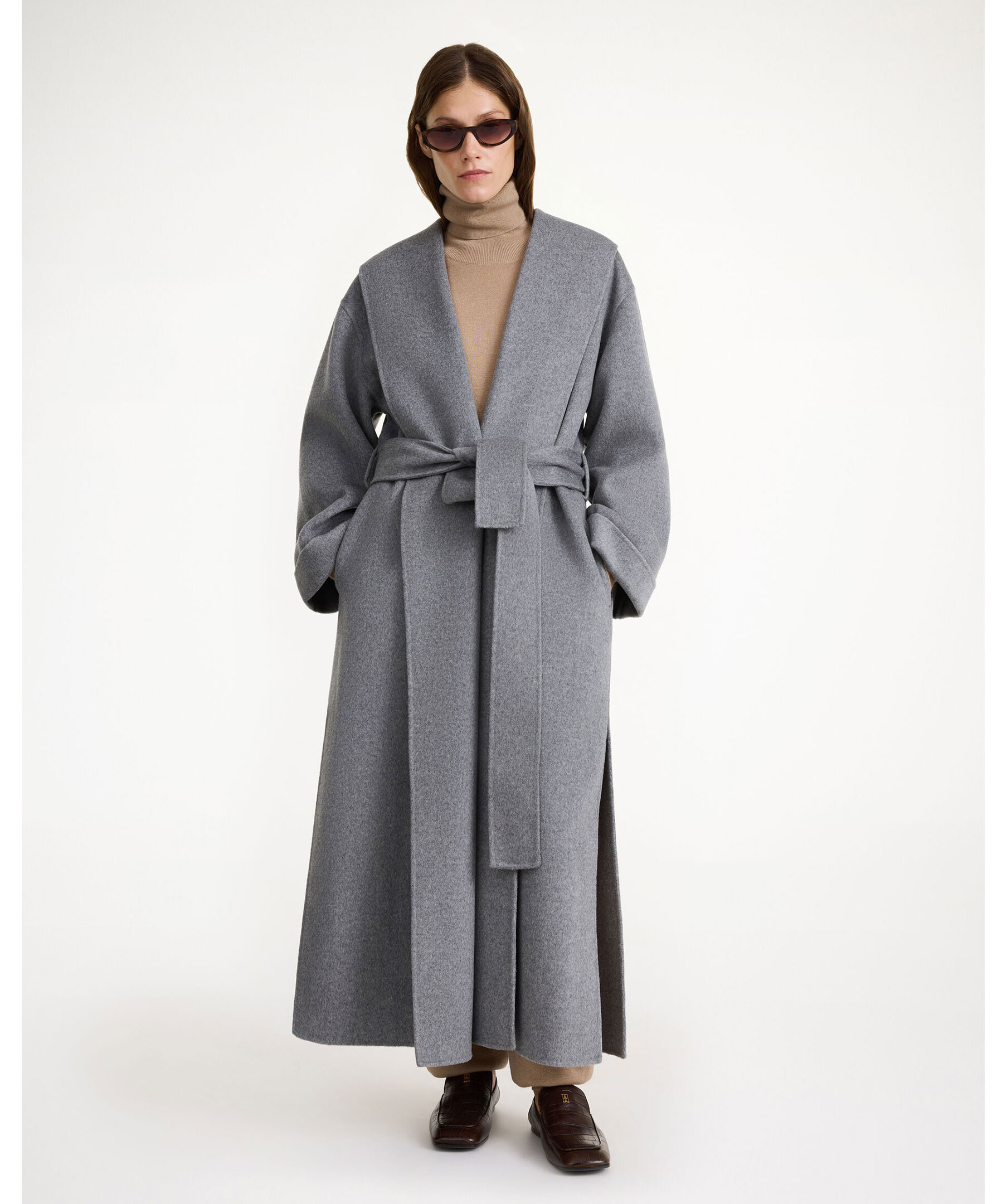 Klassisk kappa gjord i 100% ull från By Malene Birger. Kappan har en lös passform som gör det enkelt att bära lager under det långa snittet. Den diskreta sjalkragen tillför en mjuk detalj till det annars stilrena uttrycket. Bär den gärna med ton-i-ton-lager för en elegant helhet.
