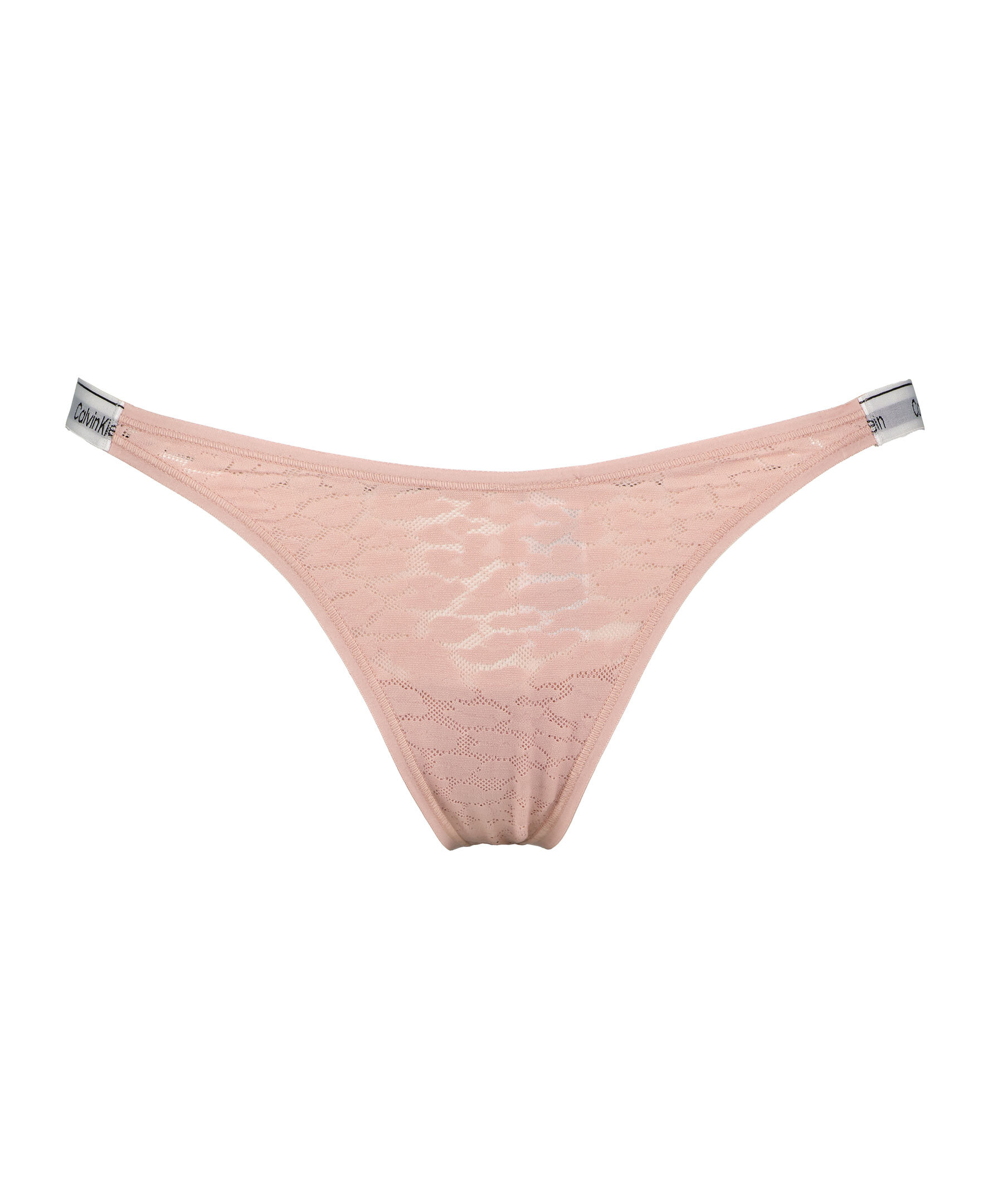 Rosa stringtrosor från Calvin Klein Underwear. Semi genomskinlig leopardspets. Calvin Kleins signatur elastiska detaljer vid höfterna. Medelhög midja. Tillverkad i en nylonblandning. Normal passform.