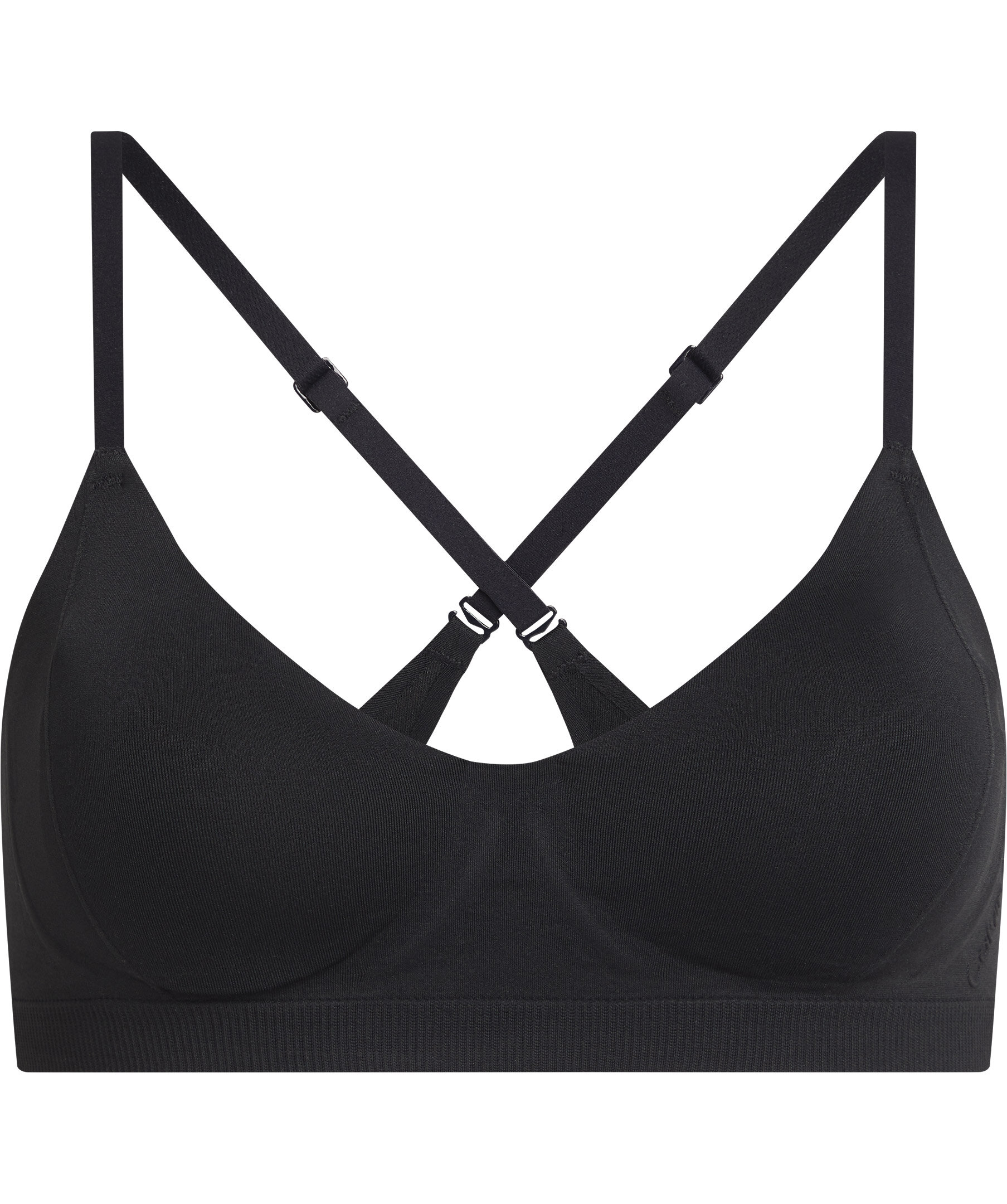 Svart bralett som kombinerar stödet från en skräddarsydd bh med den mjuka känslan av en bralette från Calvin Klein. Jersey i mikrofiber, mjuka kupor och avtagbar stoppning. Justerbara axelband som kan justeras till crossback. Pull-on design och Calvin Klein präglad logotyp på sidan.