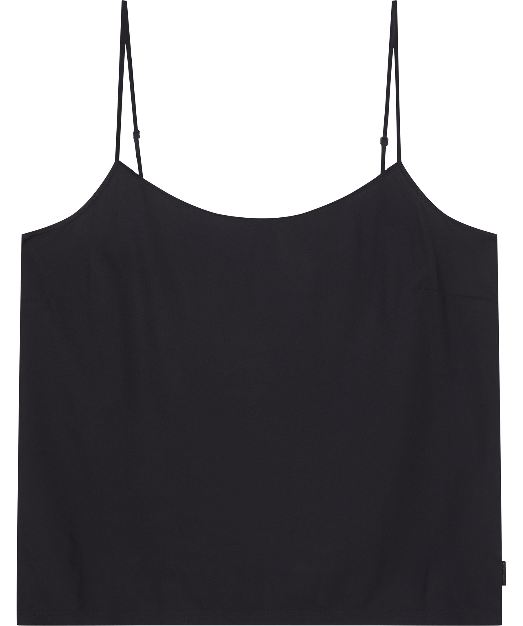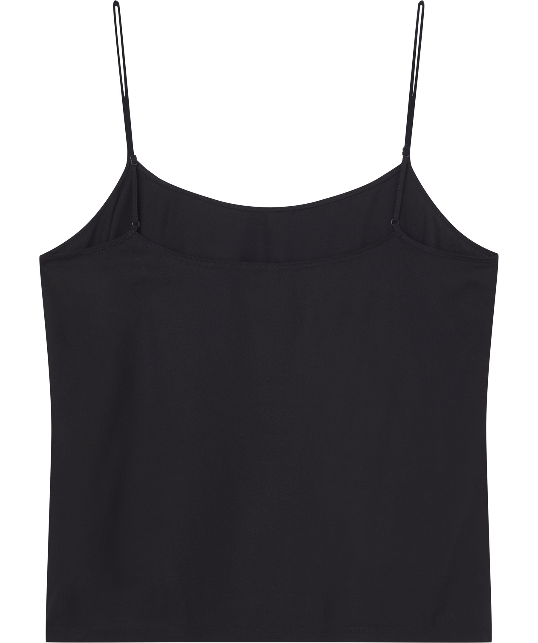 Svart linne att sova i tillverkad i mjuk viskos från Calvin Klein. Normal passform, justerbara tunna axelband, logotypflik vid fållen.