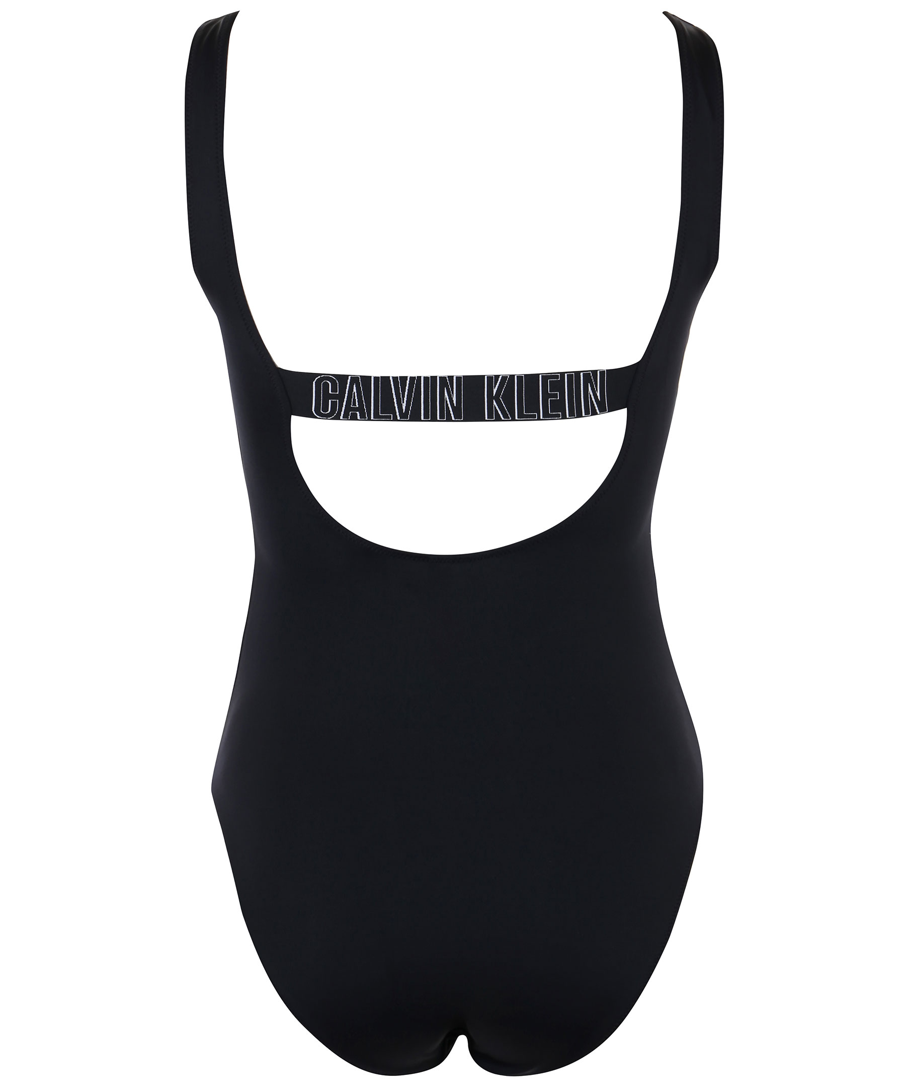 Svart baddräkt från Calvin Klein. Vadderade kupor, logotyp i ryggen, breda axelband.