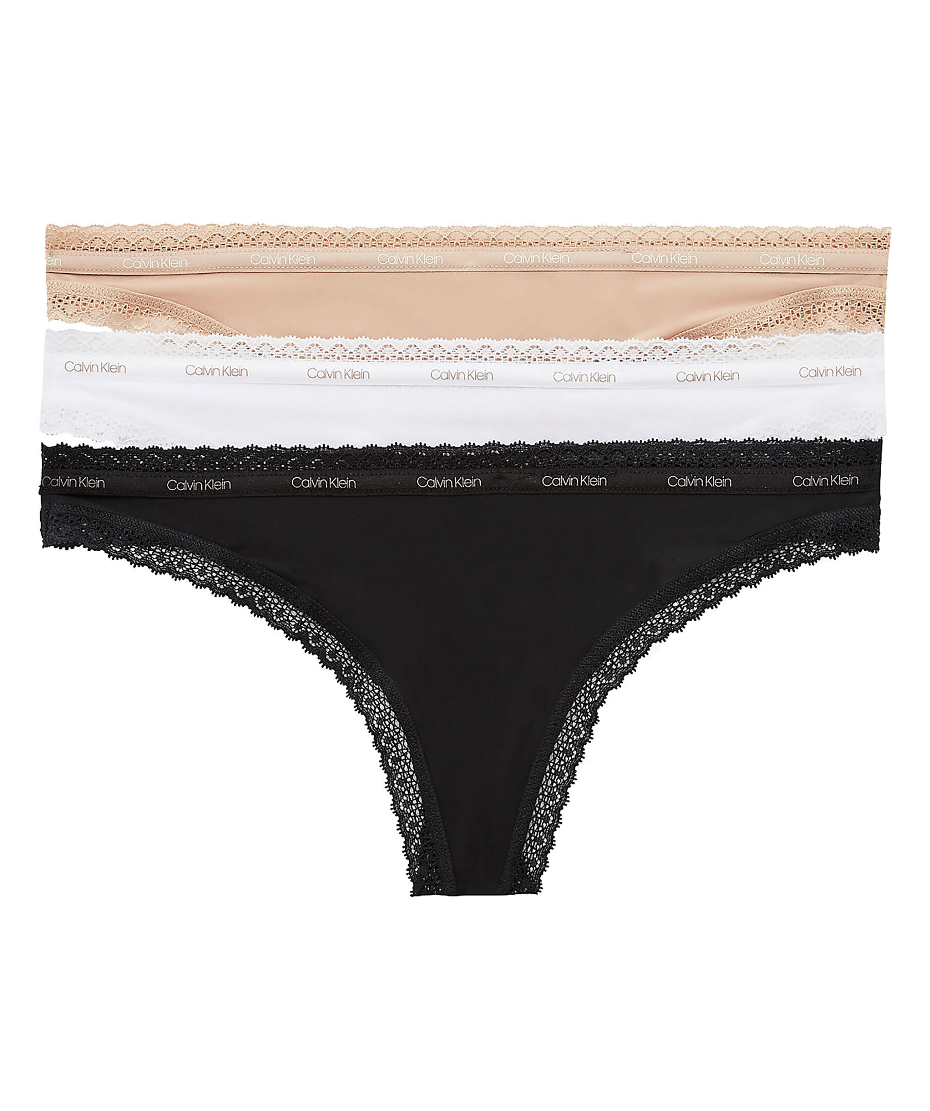 3-pack semitransparenta stringtrosor från Calvin Klein i svart, vit och beige.