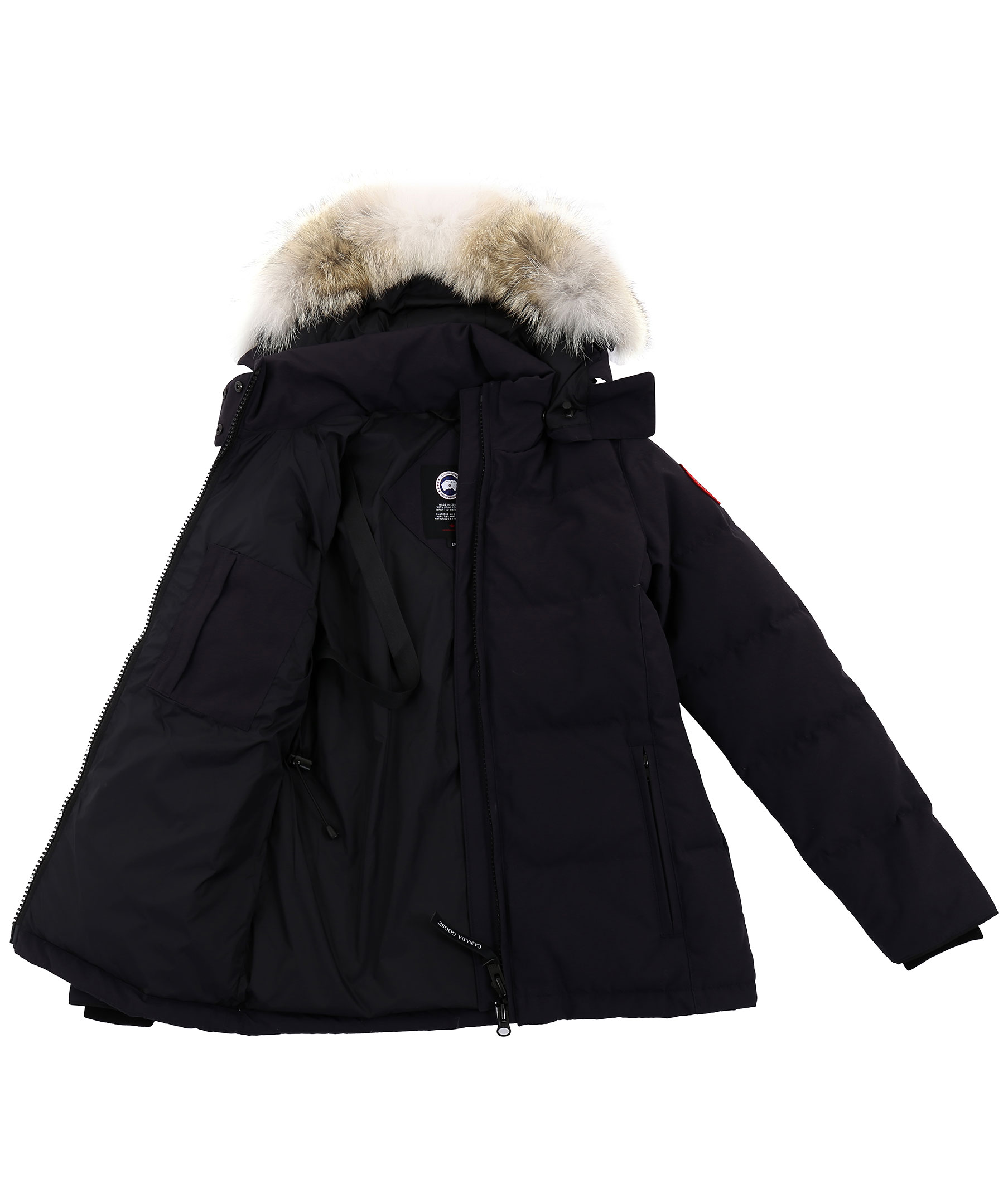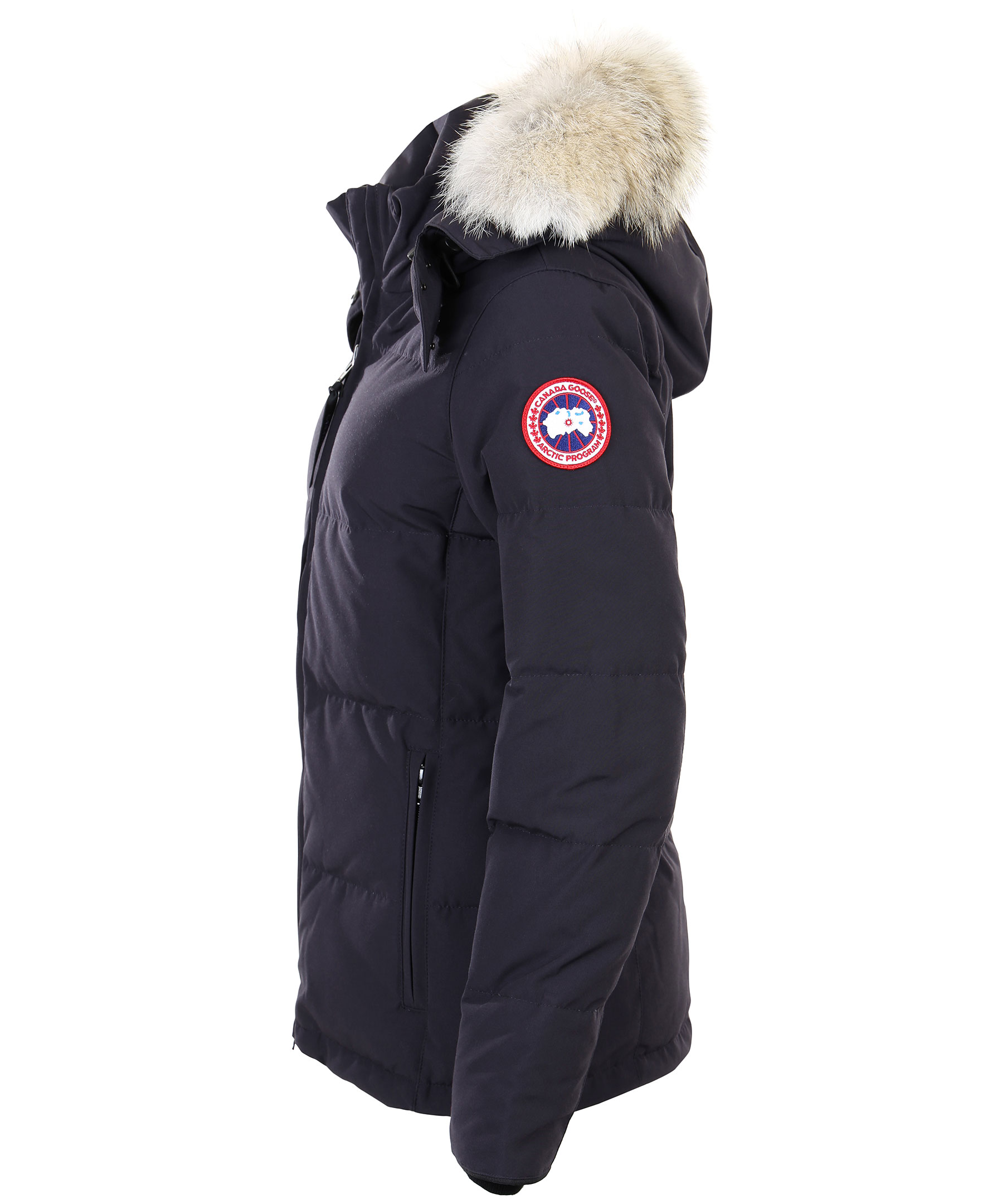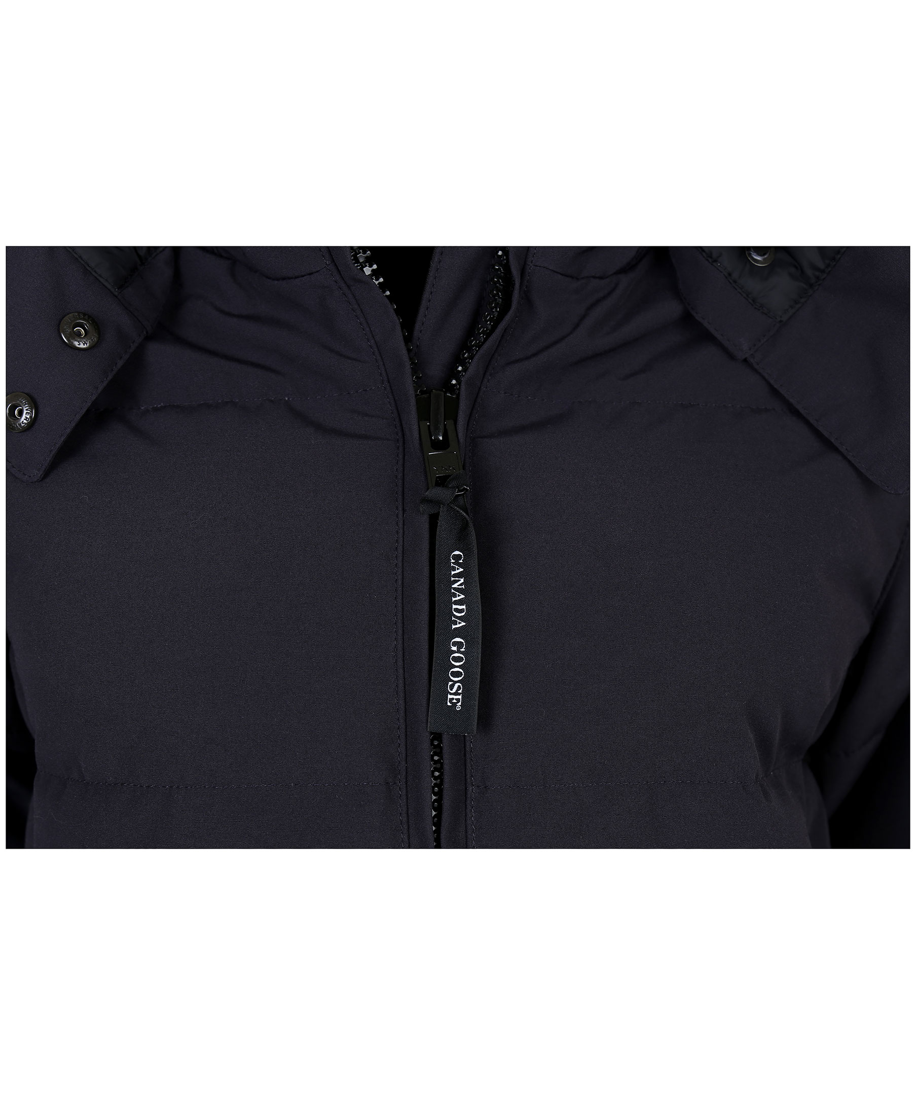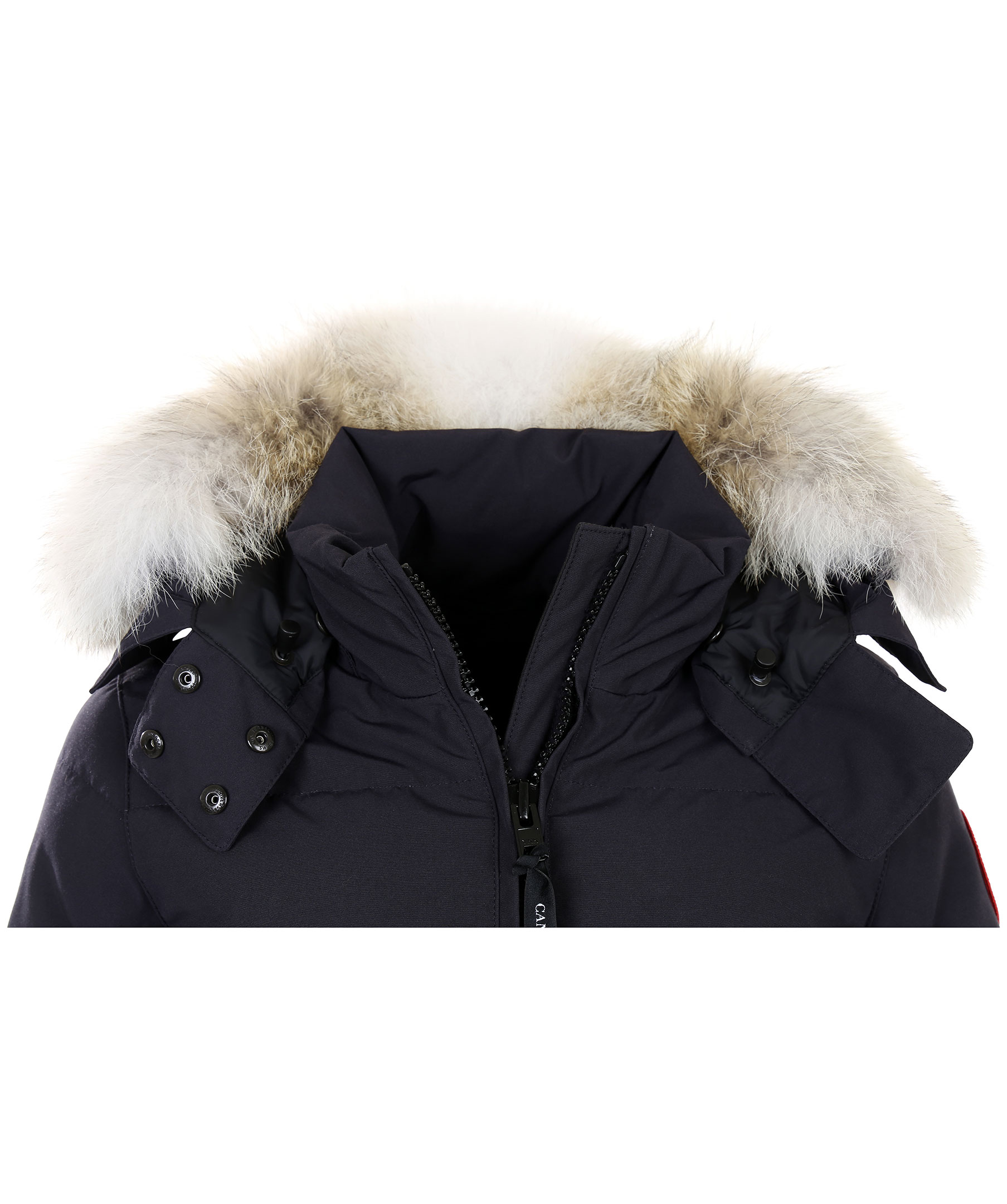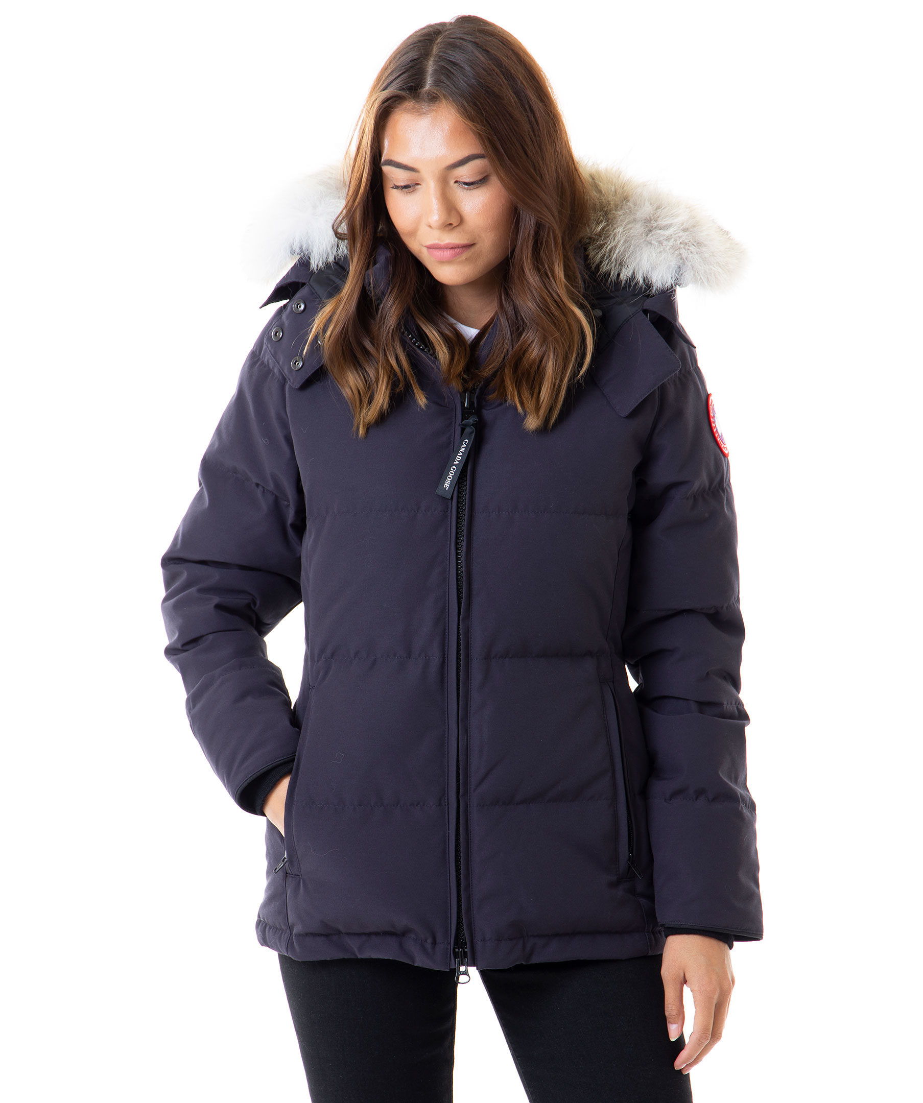 Mörkblå dunjacka från Canada Goose med löstagbar äkta päls på luvan. Två framfickor med skönt fleecefoder samt två praktiska innerfickor. Broderad logotyp på vänstra ärmen. Modellen är 174 cm lång och bär storlek S. TIPS! Ånga pälsen för att få den stor och fluffig. OBS! Naturpälsar är unika och kan skilja sig från bilden.