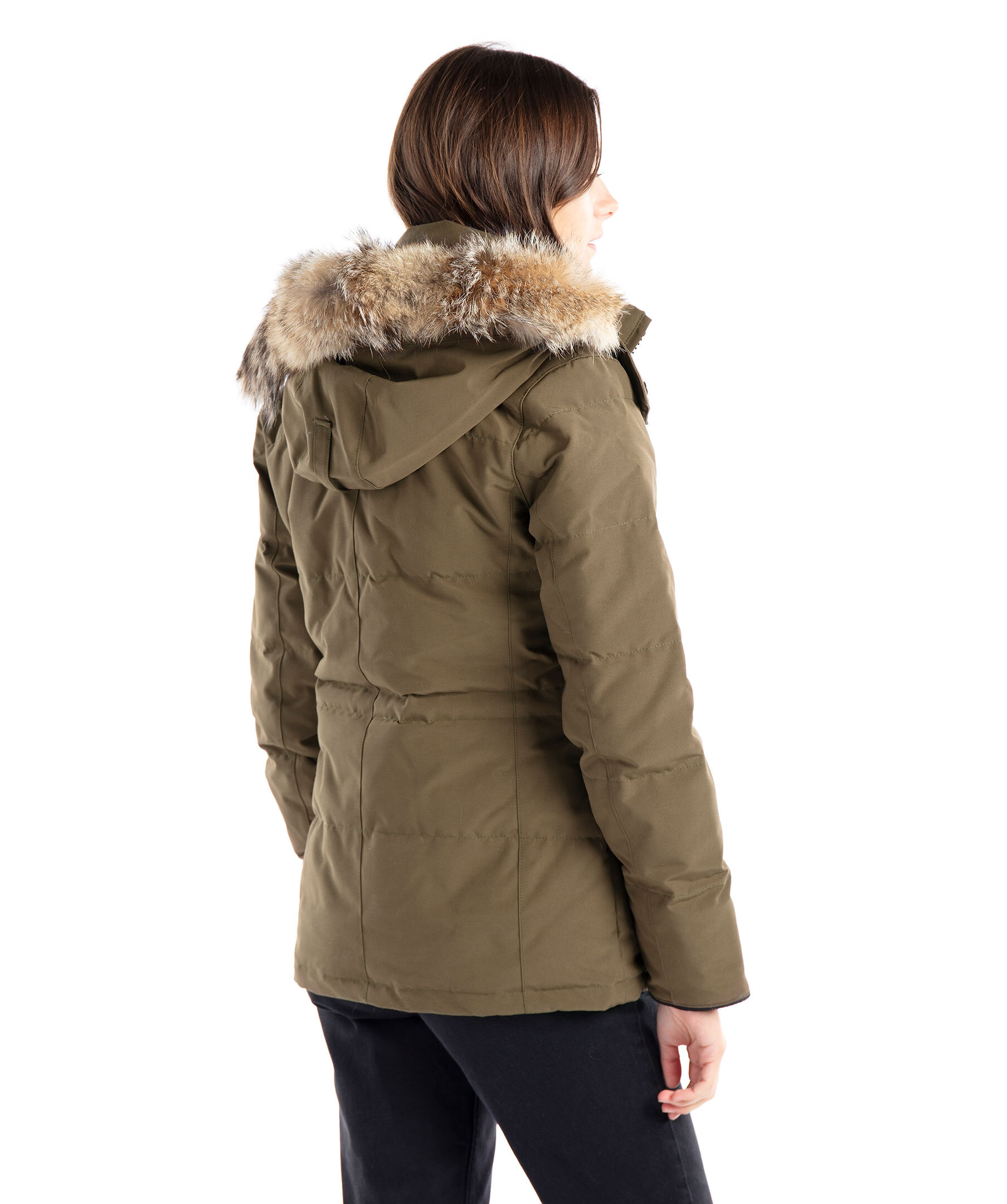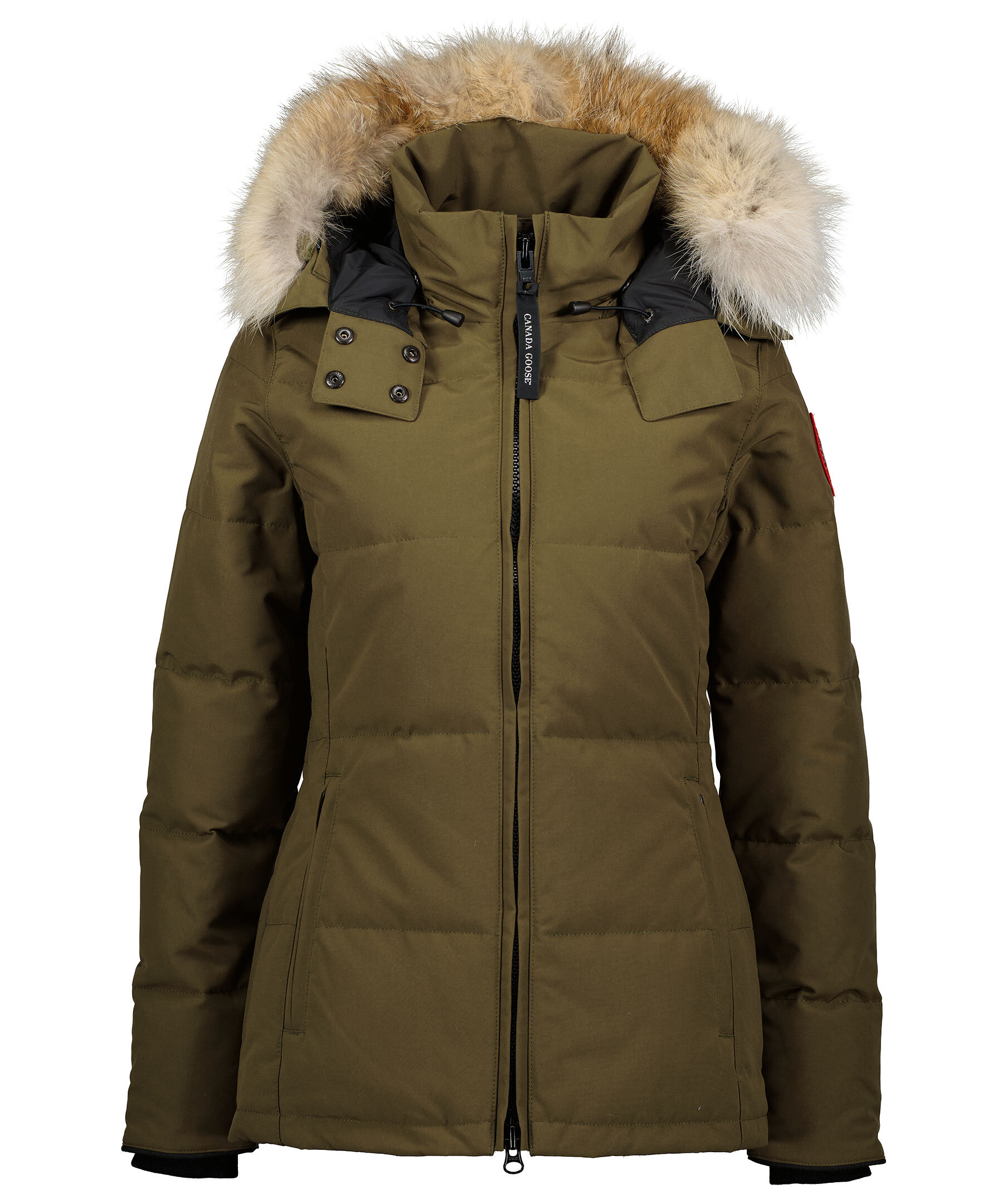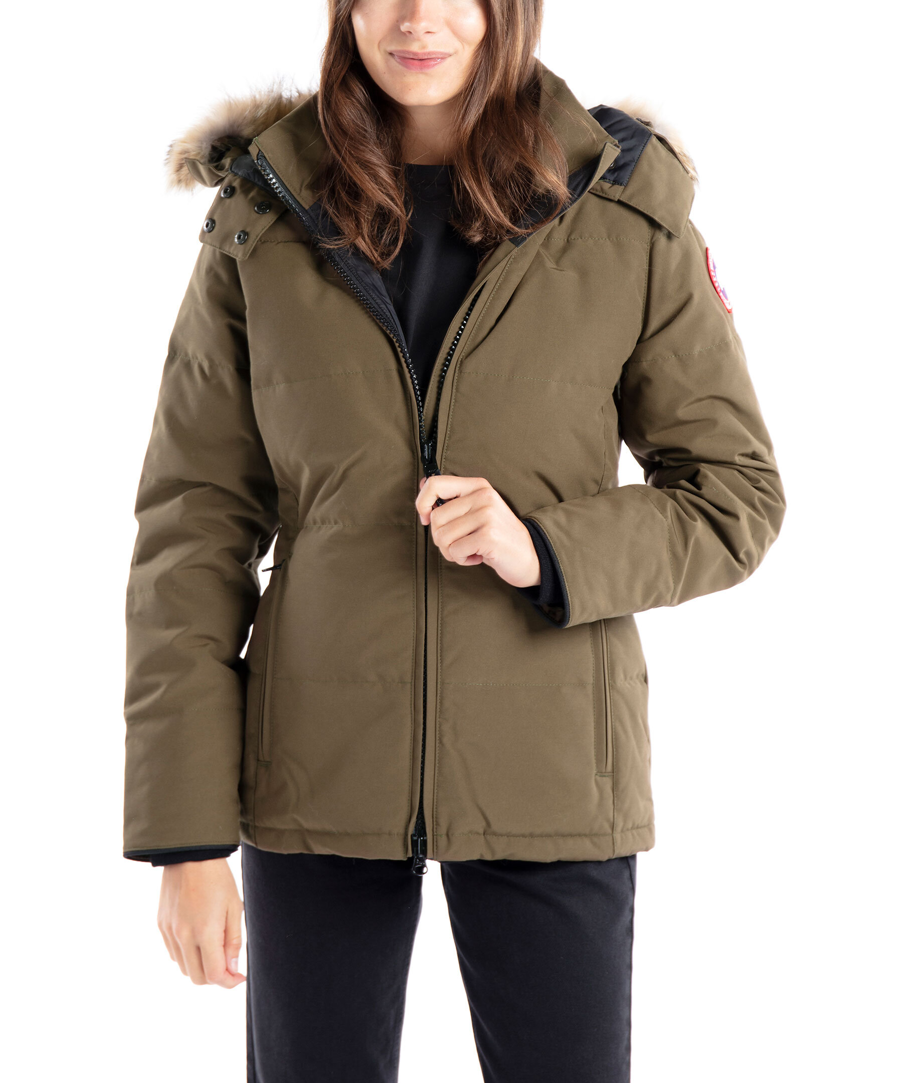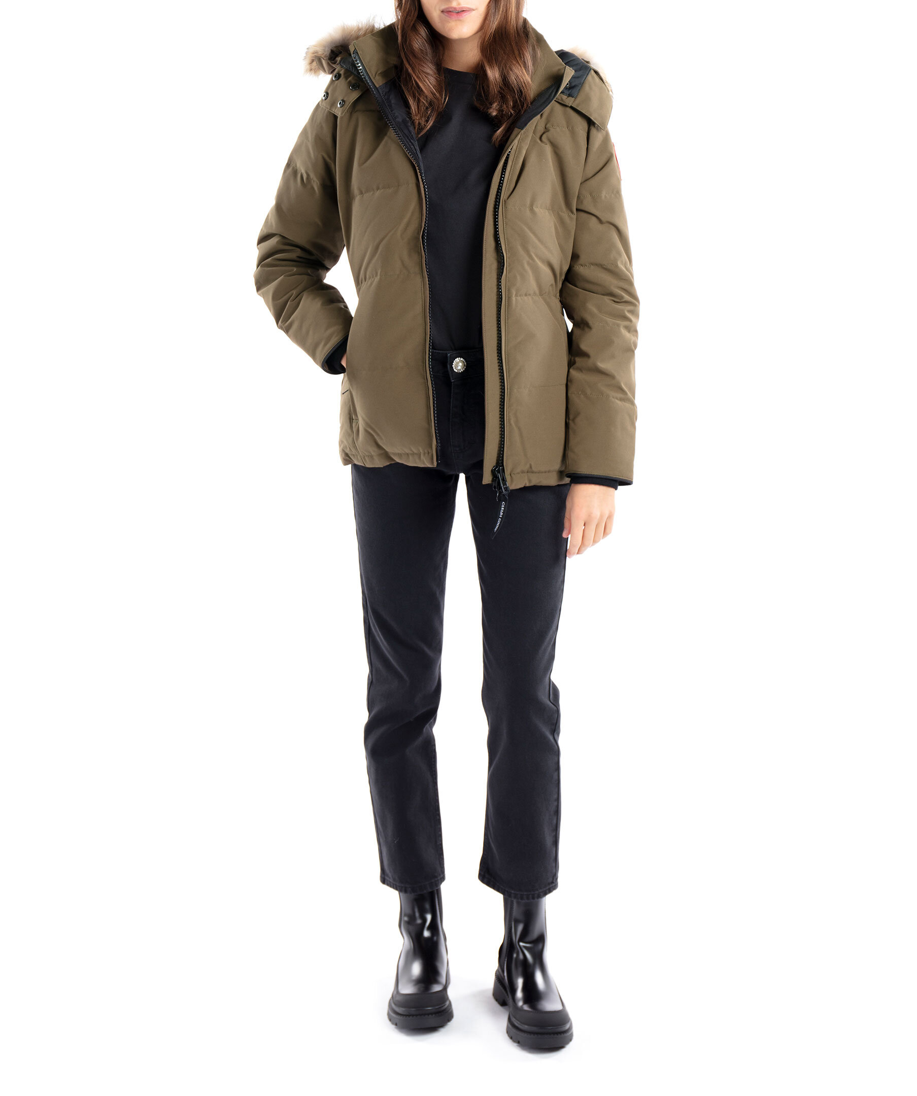 Figursydd dunjacka i kort modell med löstagbar, fin äkta päls på luvan. Två snedställda framfickor fodrade med skönt fleecefoder och en praktisk innerficka med dragkedja. Varma muddar i ärmslut och Canada Goose brodyrmärke på vänster ärm. TIPS! Ånga pälsen för att få den stor och fluffig. OBS! Naturpälsar är unika och kan skilja sig från bilden. Modellen är 178cm lång och har på sig storlek S.