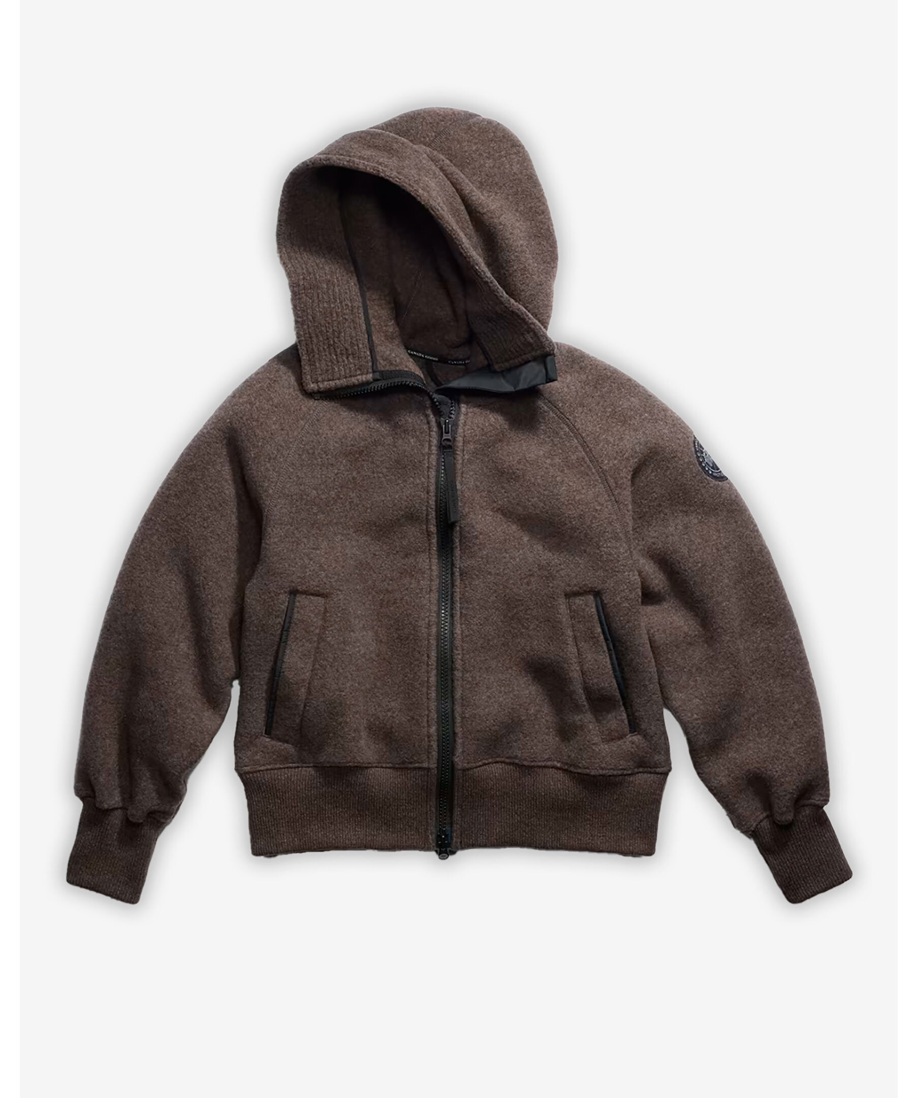 Mörkbrun Fleece Bomberjacka från Canada Goose. Jackan stängs med tvåvägsdragkedja och har fast huva med med justerbar dragsko och hög krage, ribbstickade ärmslut och fåll, två sidfickor samt slitstarka områden är förstärkta med CORDURA®-tyg för ökad hållbarhet. Tillverkad i en ullblandning.